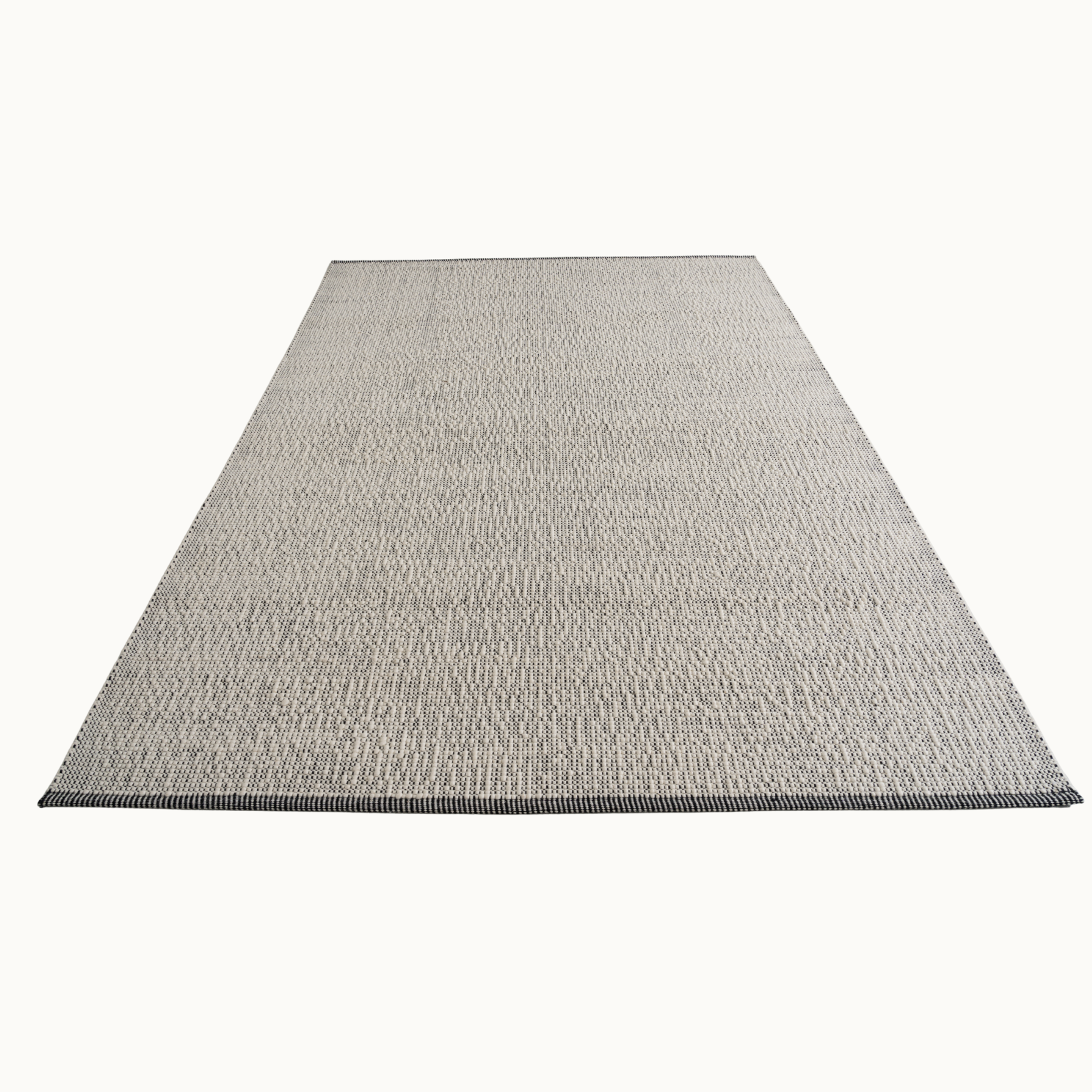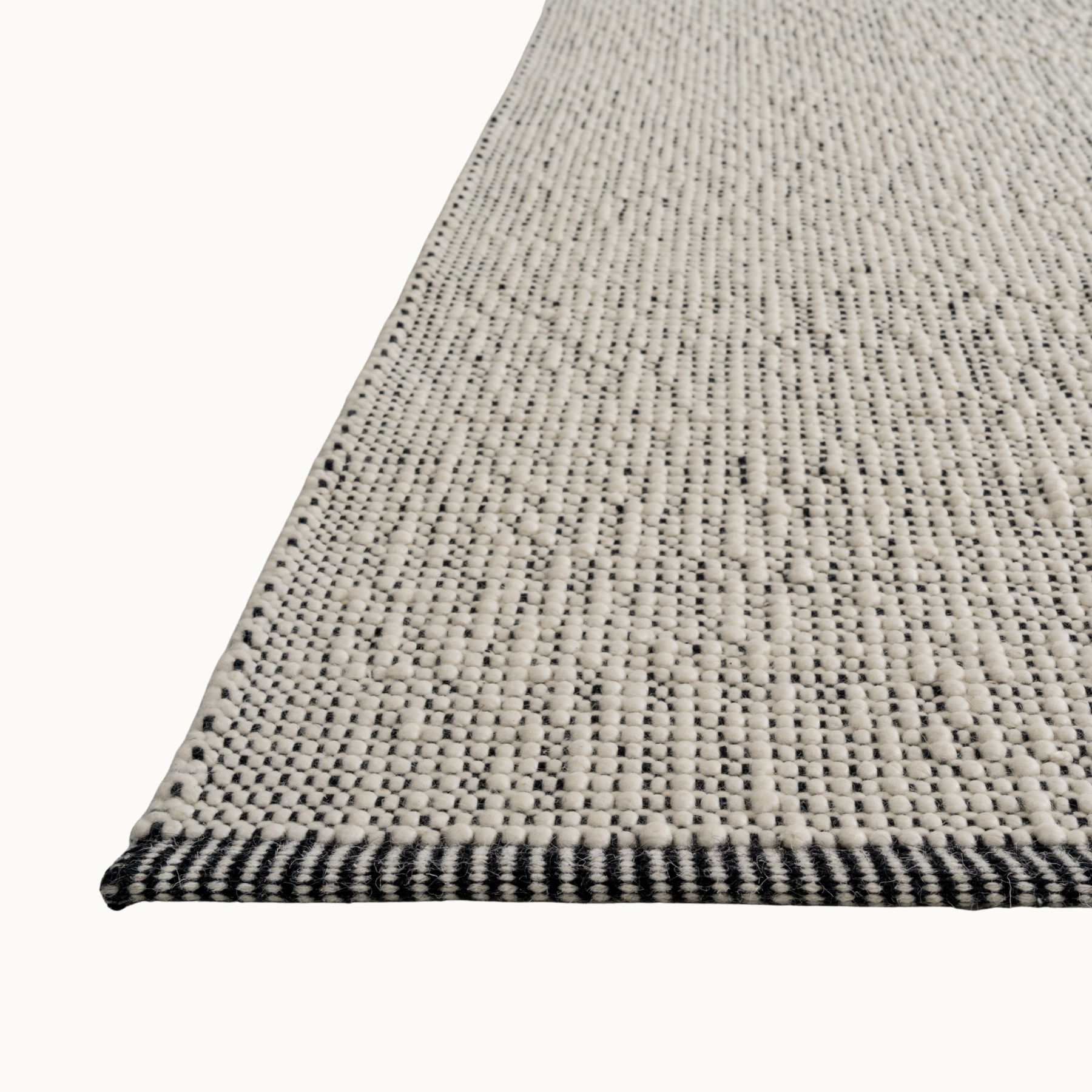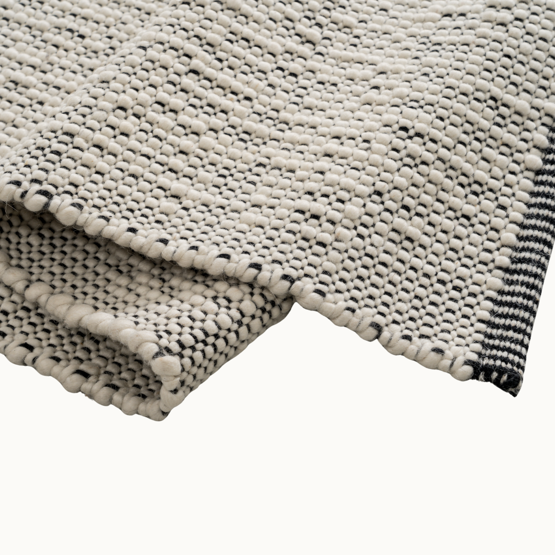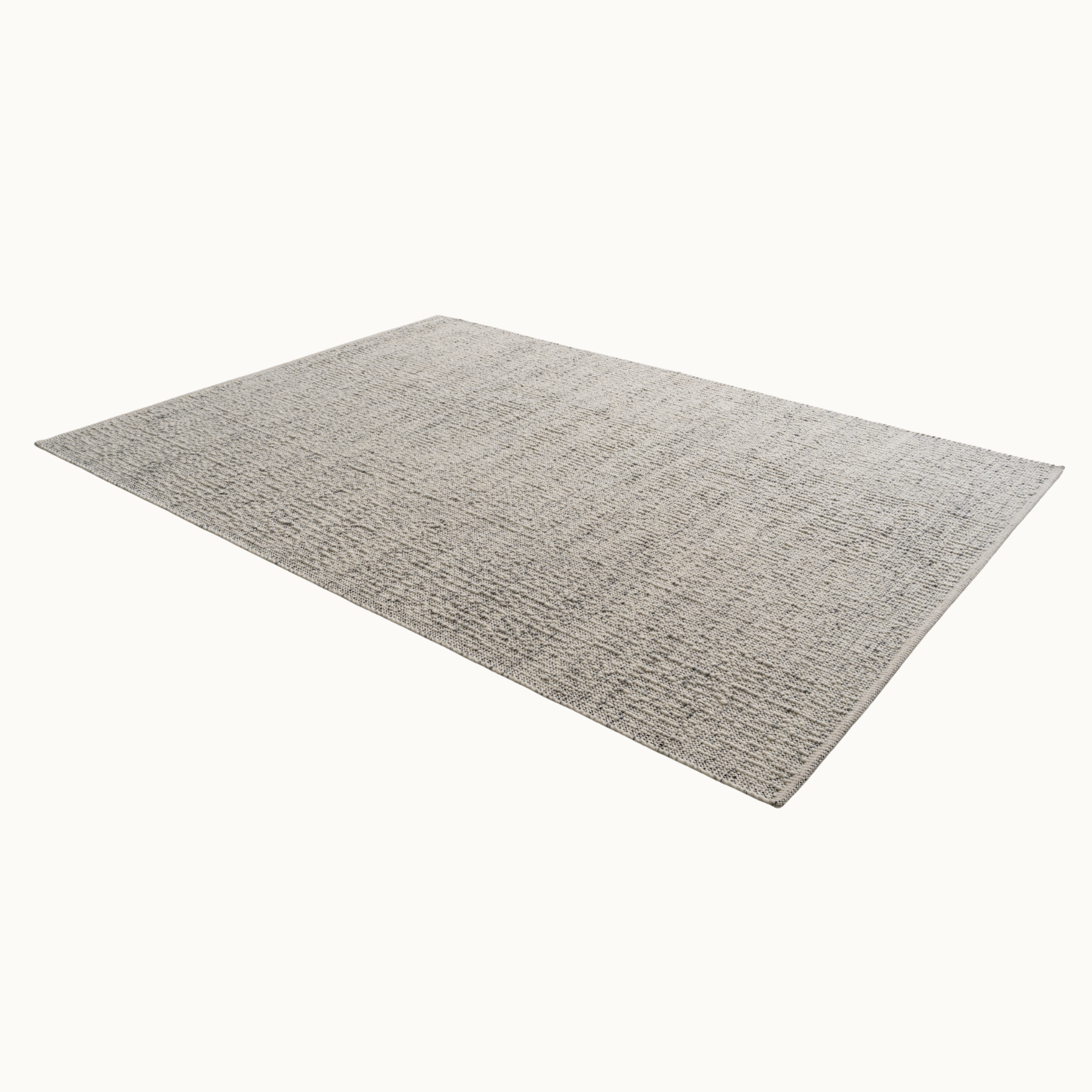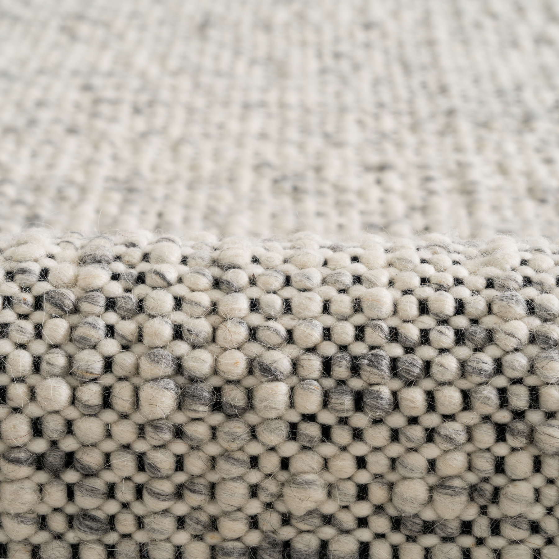 丸みを帯びた織りのリズムが心地よく、シンプルなモノトーンながら豊かな表情で、空間をやわらかく引き締めます。