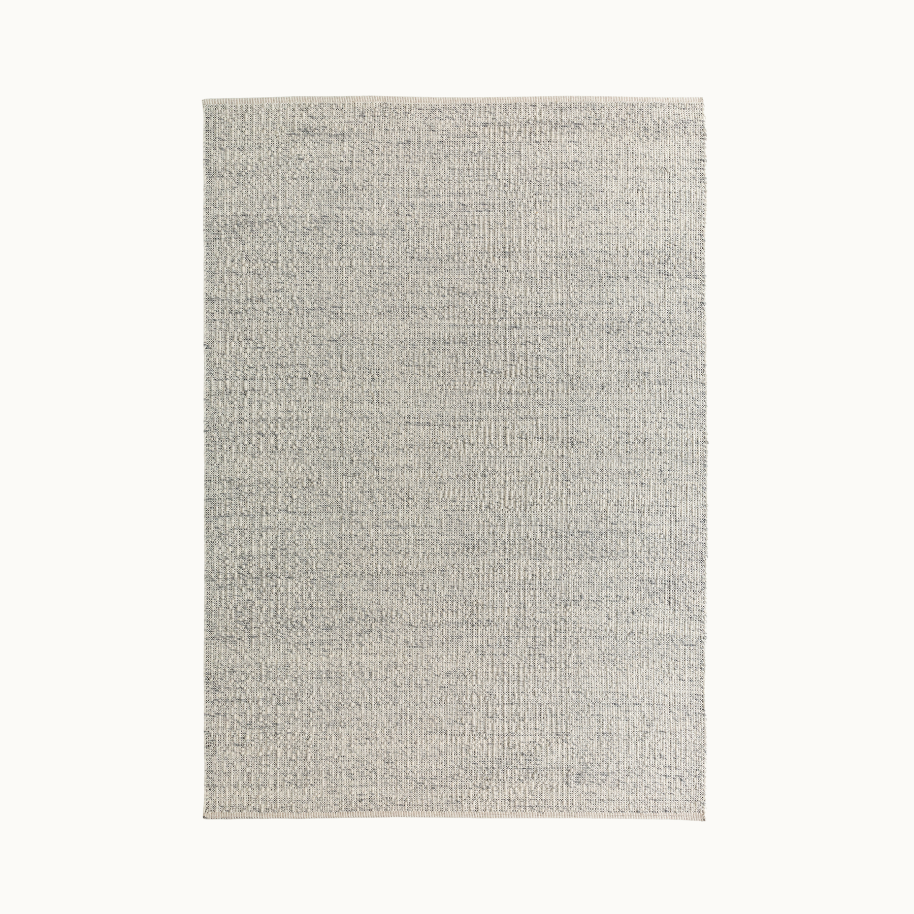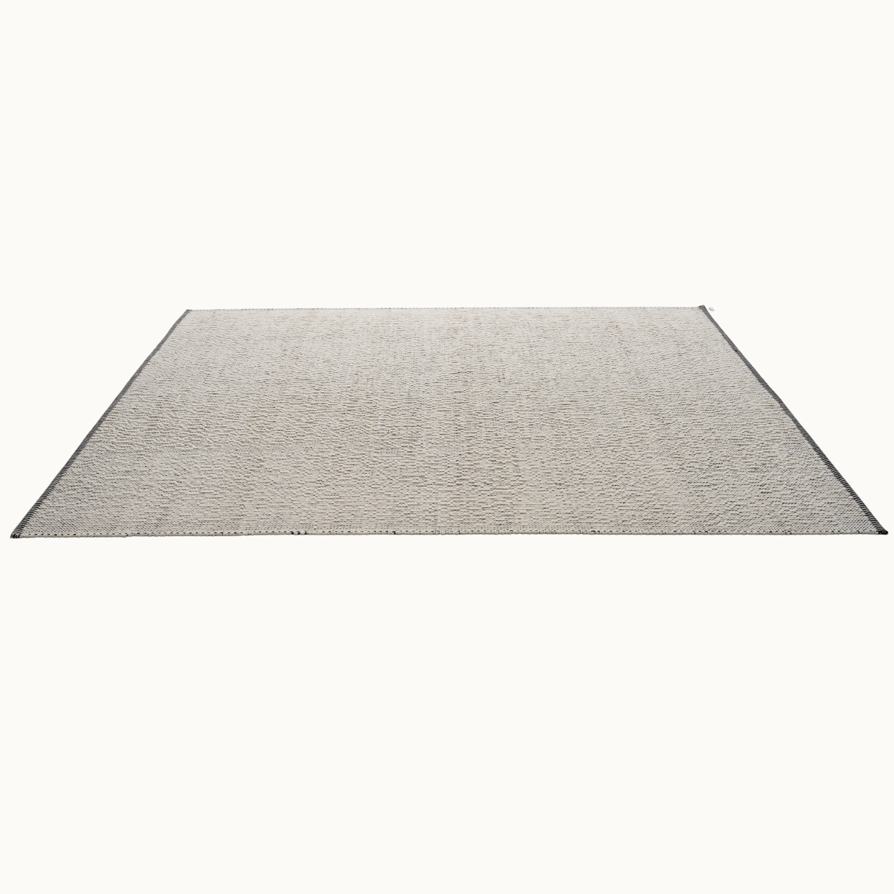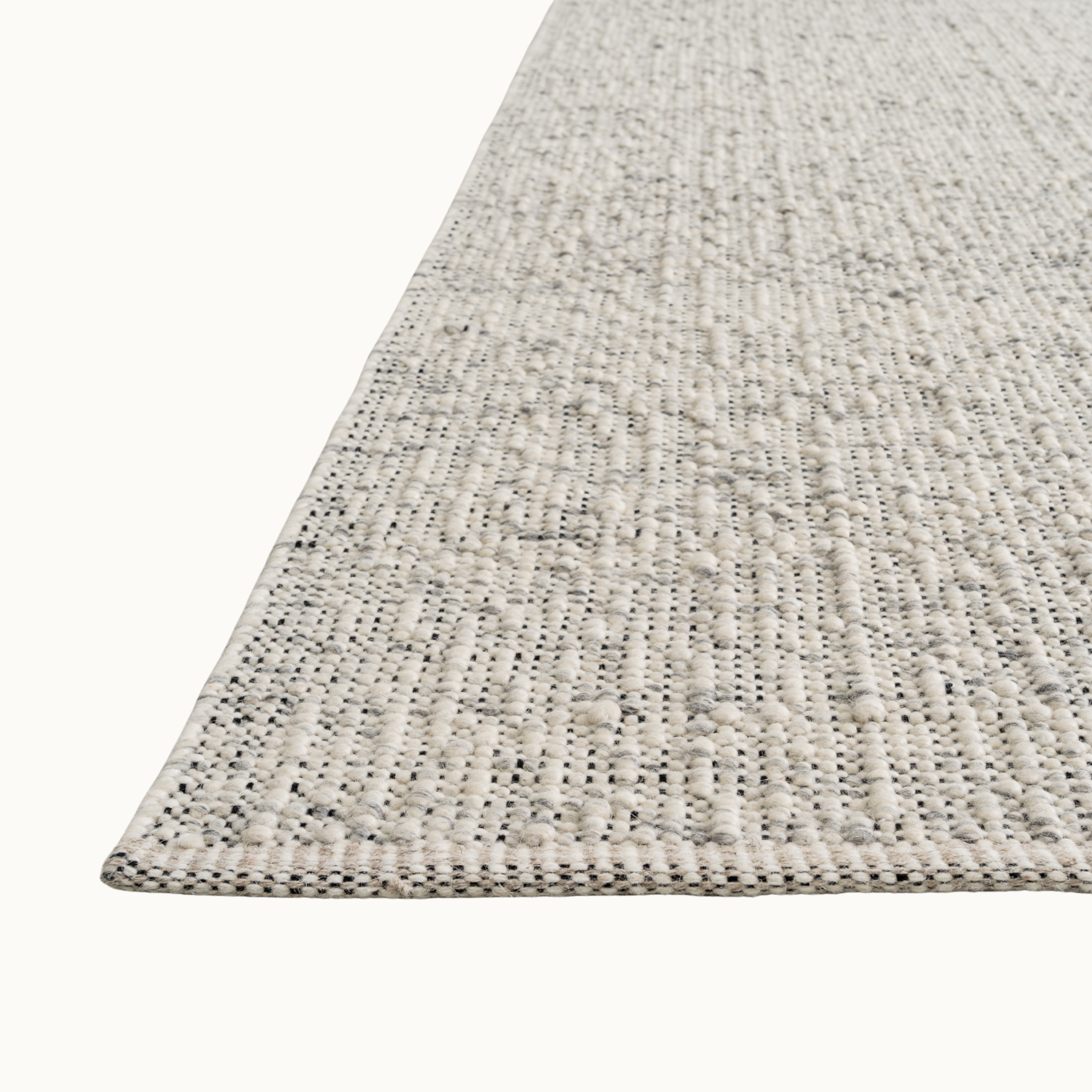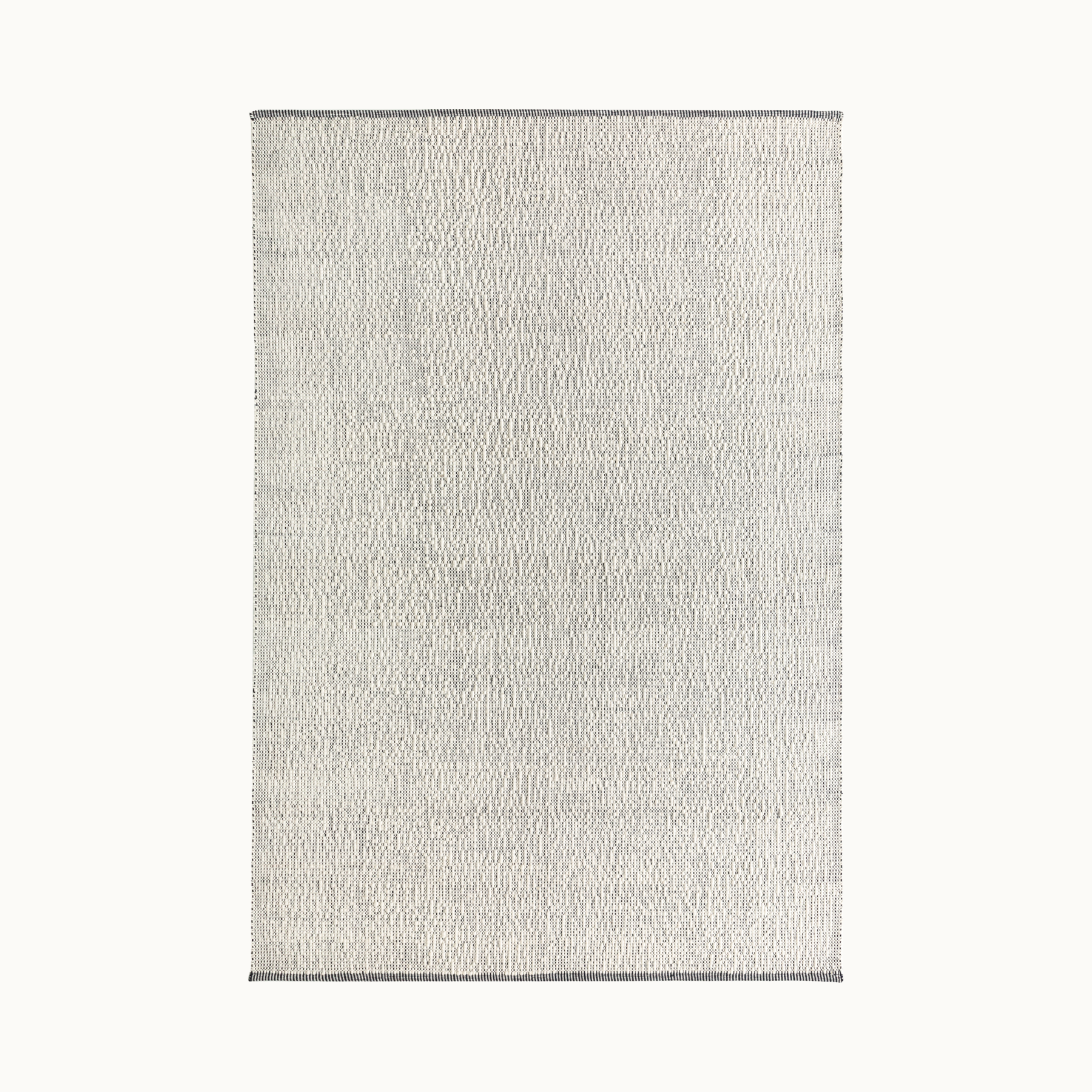 丸みを帯びた織りのリズムが心地よく、シンプルなモノトーンながら豊かな表情で、空間をやわらかく引き締めます。