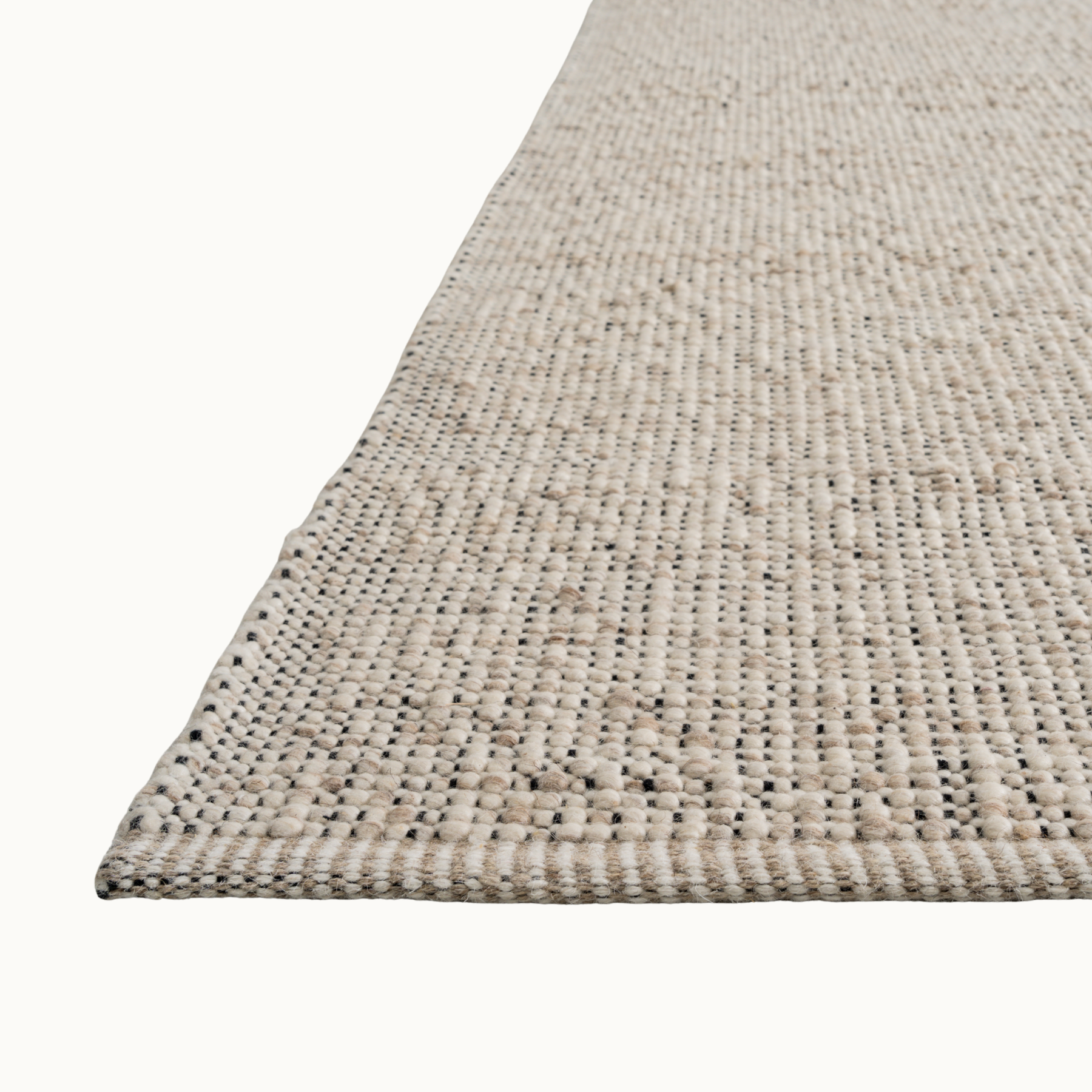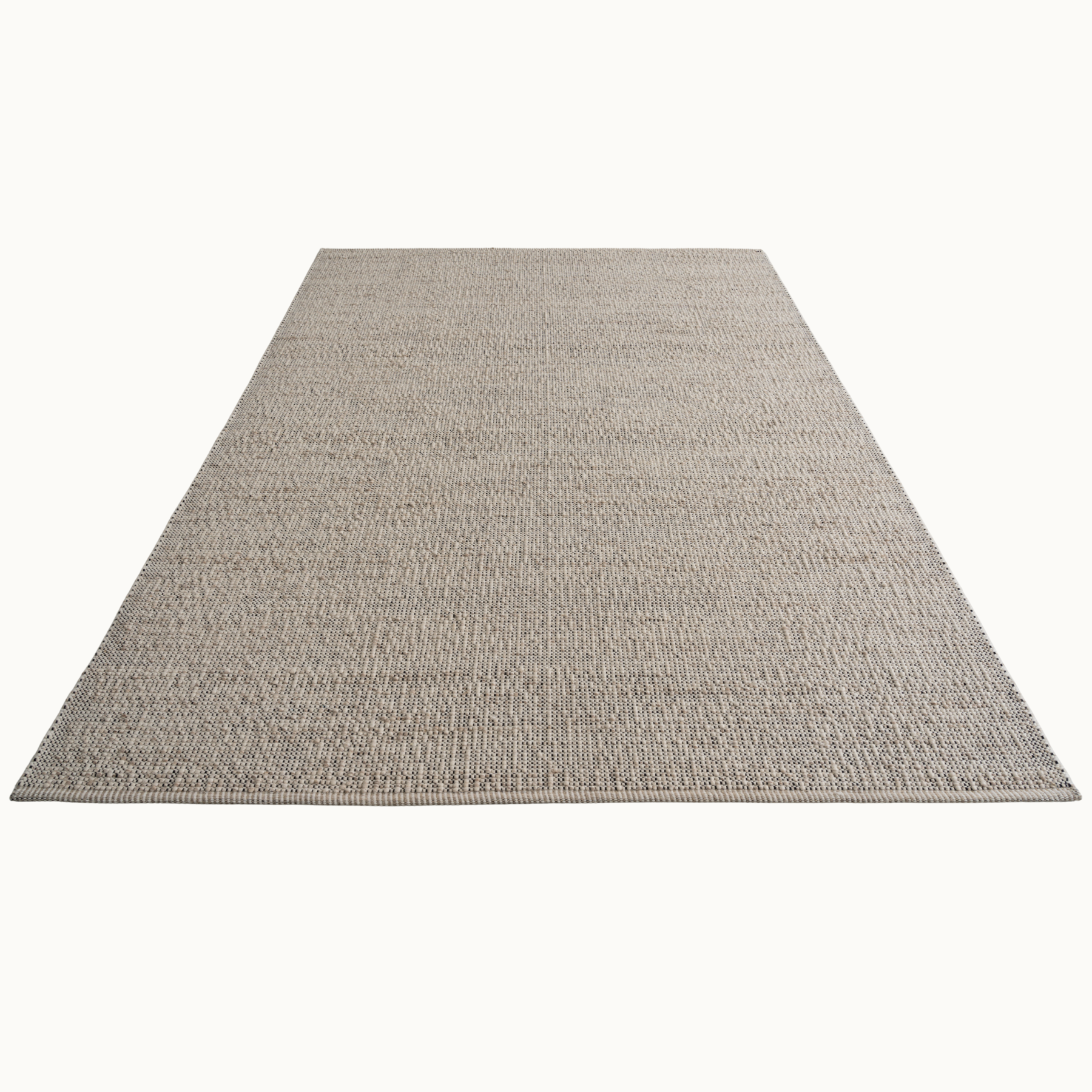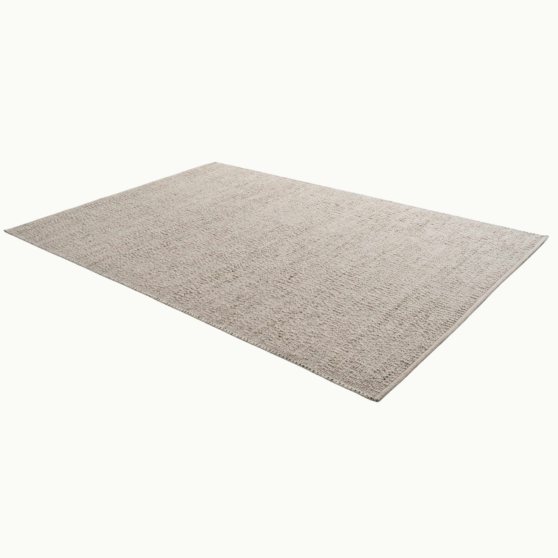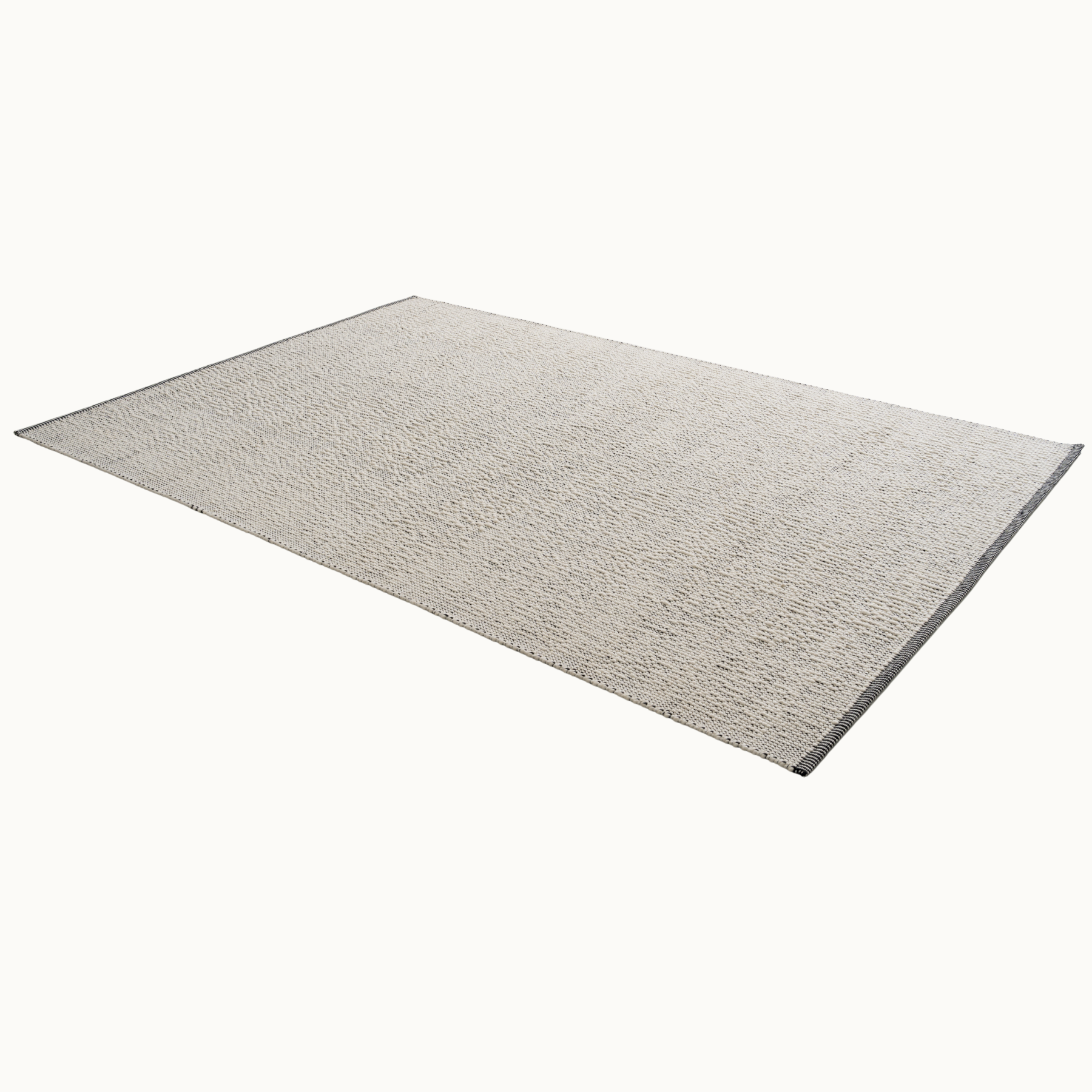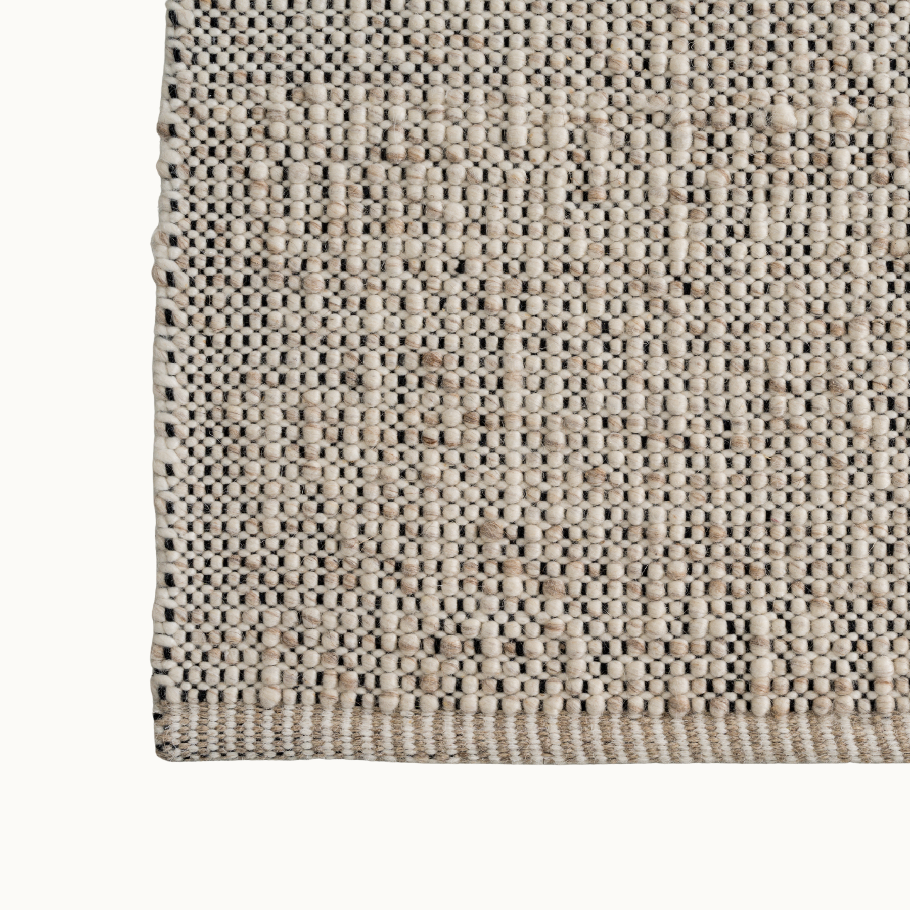 丸みを帯びた織りのリズムが心地よく、シンプルなモノトーンながら豊かな表情で、空間をやわらかく引き締めます。