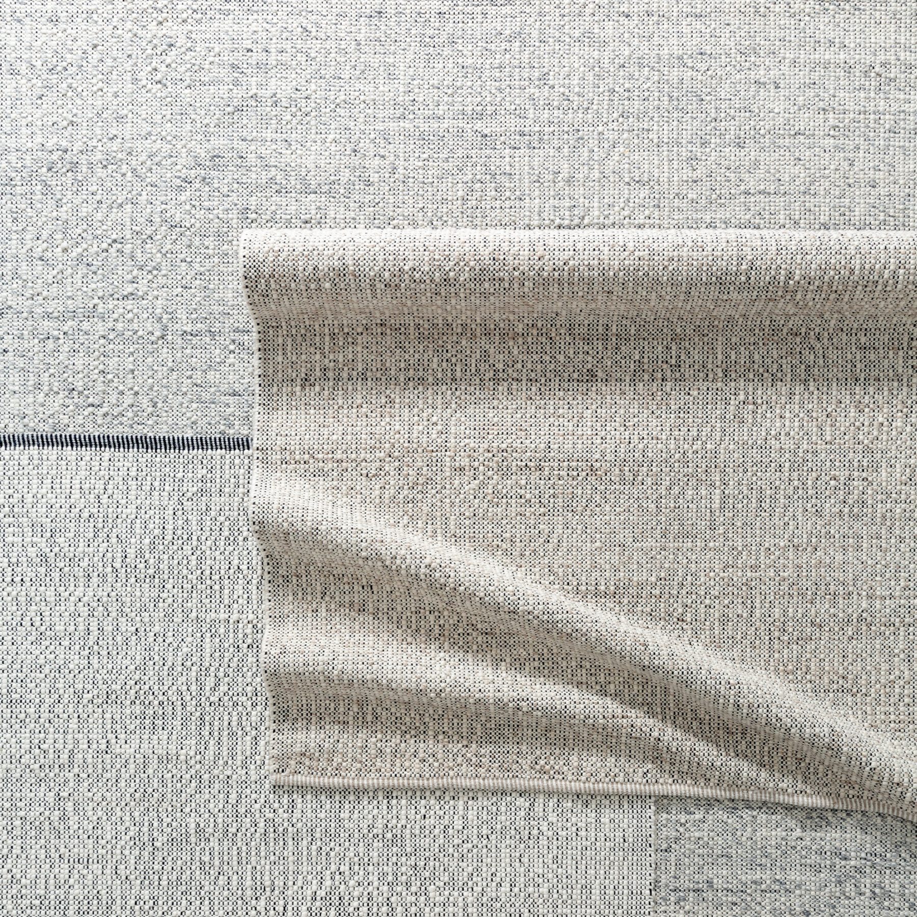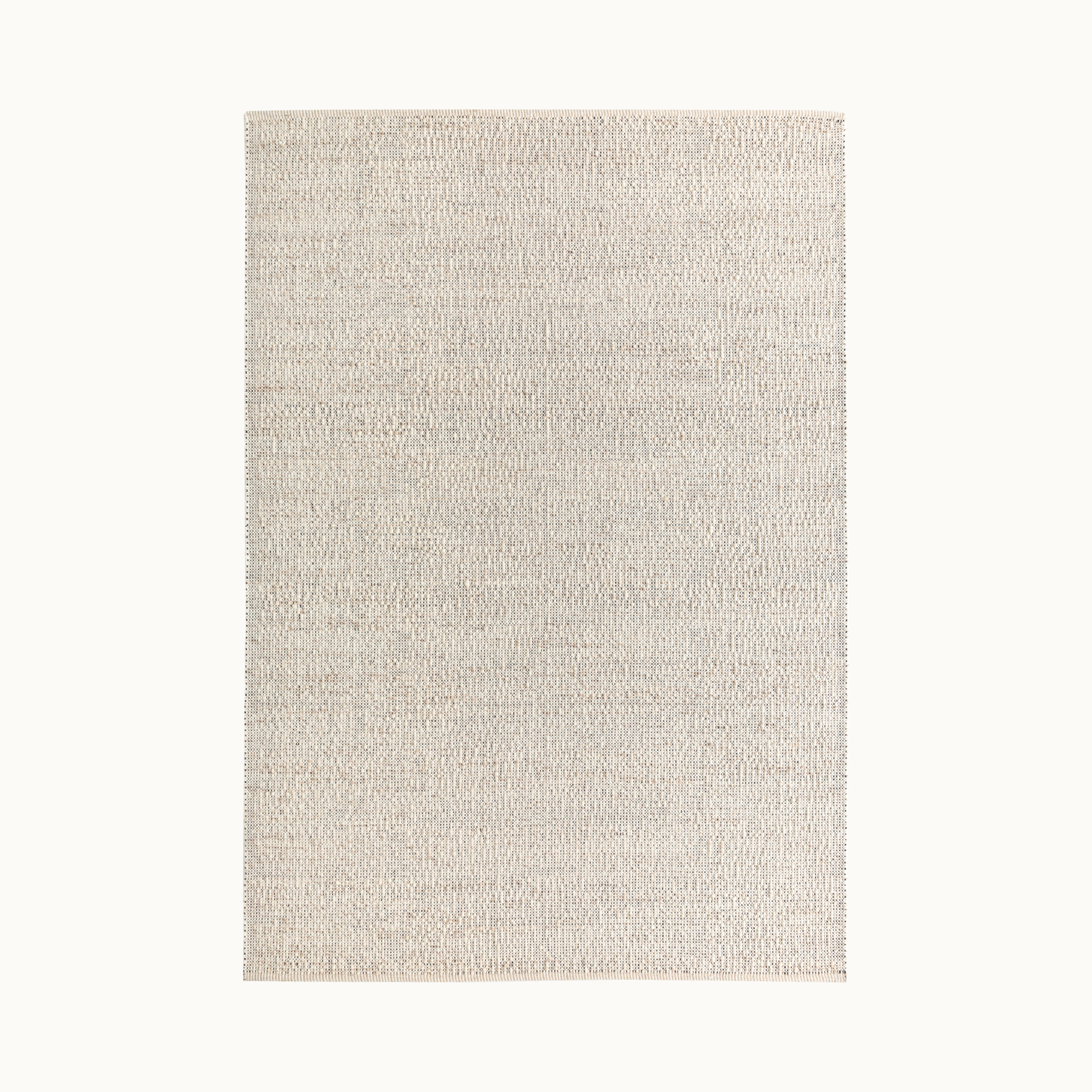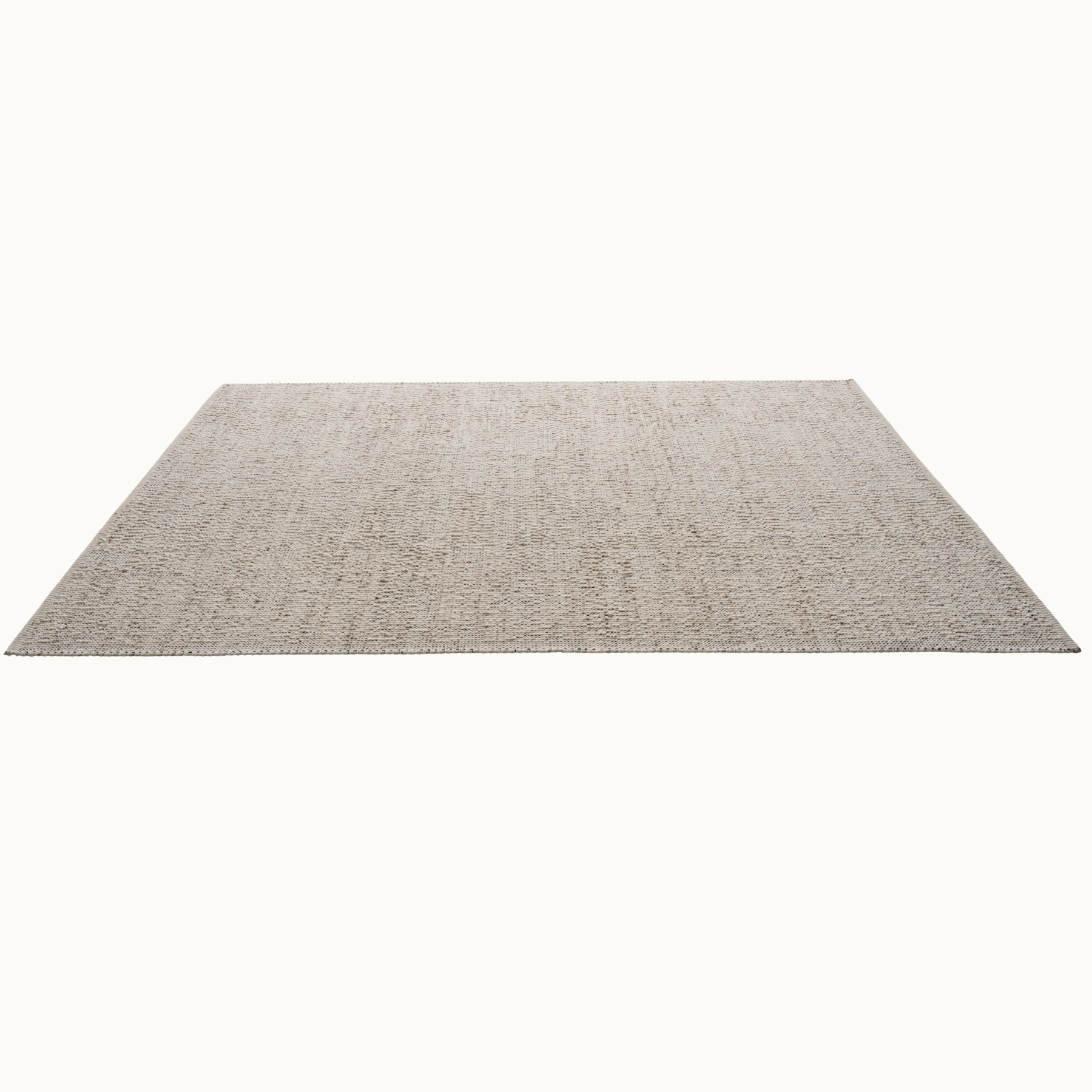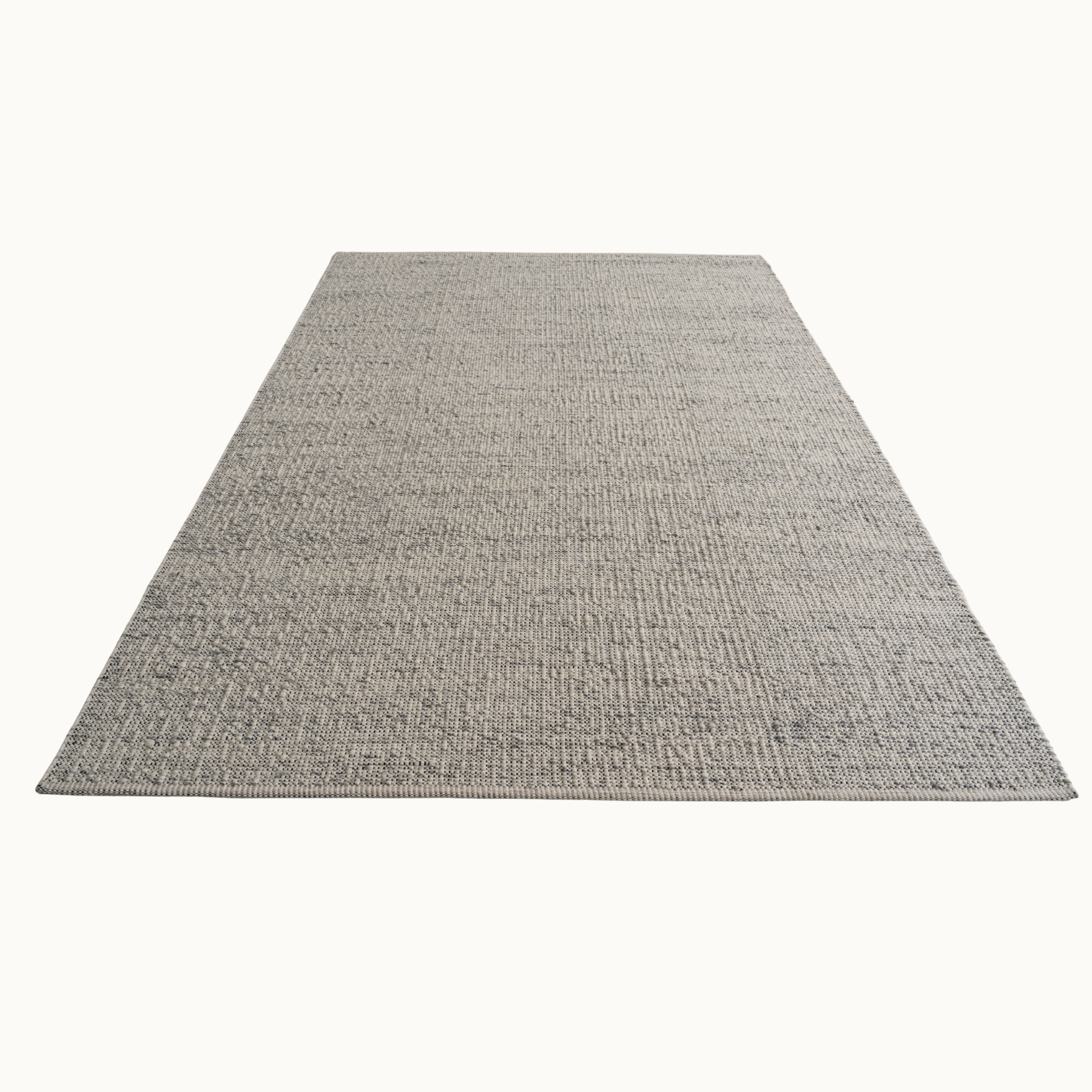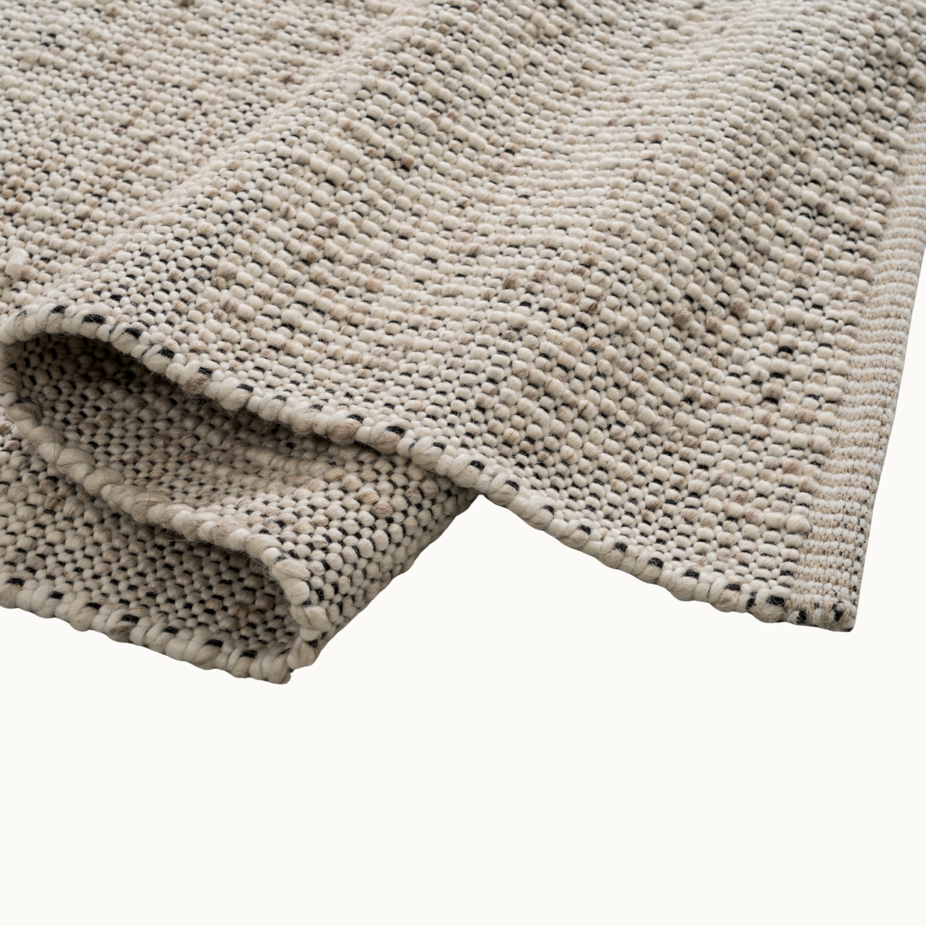 丸みを帯びた織りのリズムが心地よく、シンプルなモノトーンながら豊かな表情で、空間をやわらかく引き締めます。