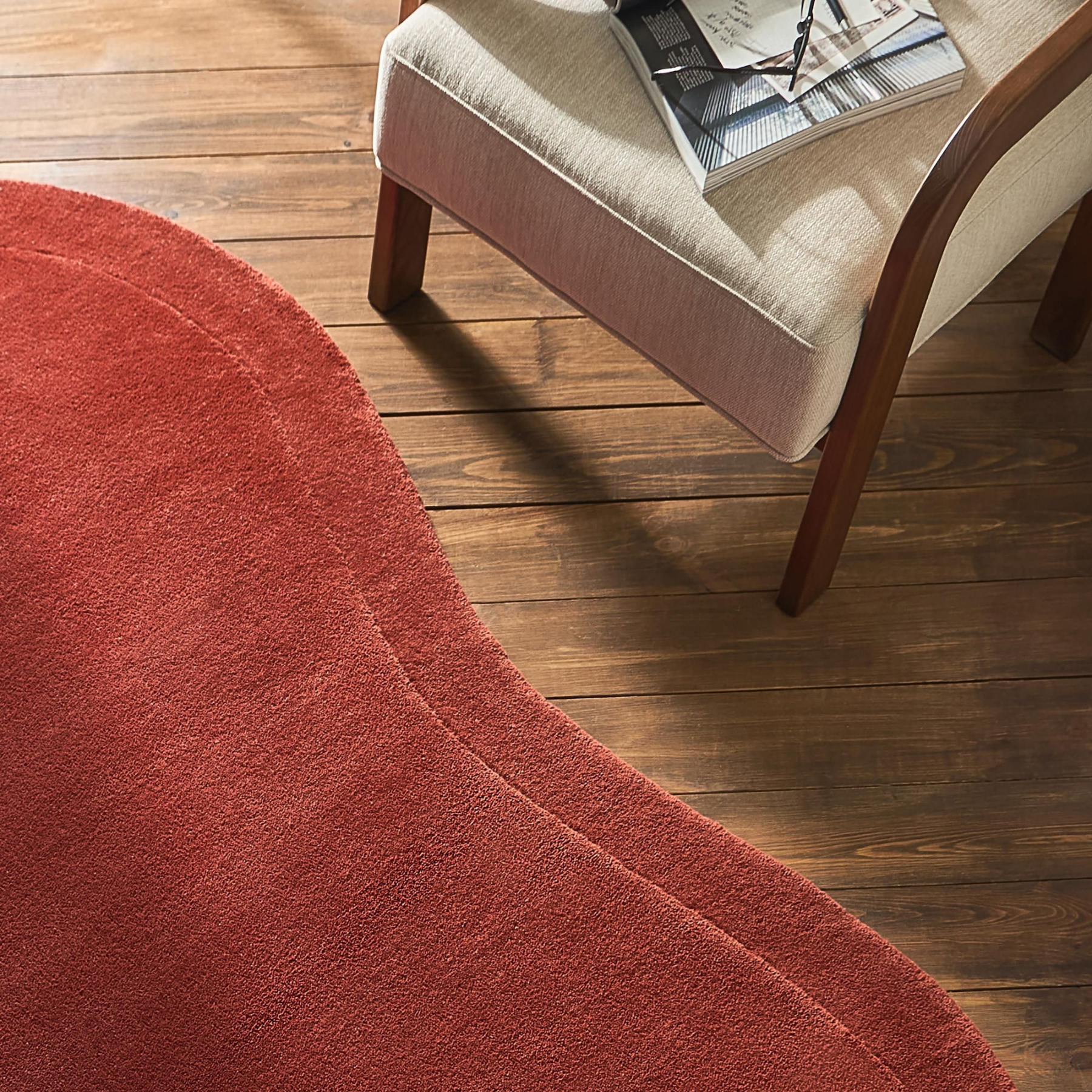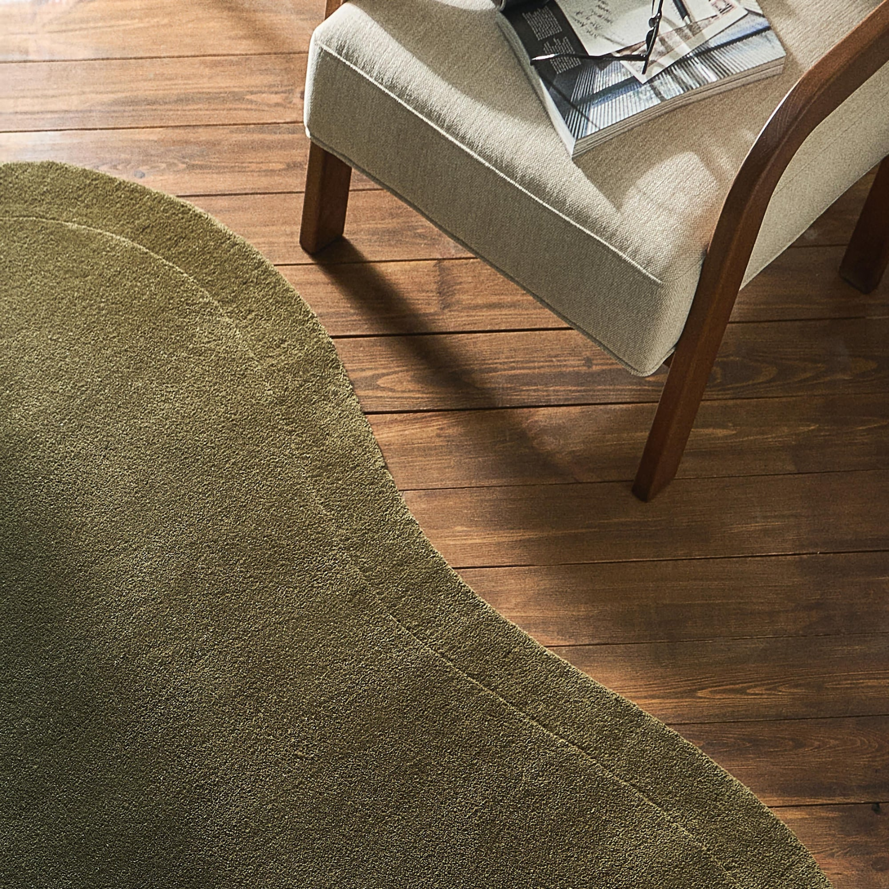 ダイニングテーブルの下に敷いて使用しています。少し硬めの質感、素足に心地良いです。デザインもとても満足しています。購入して良かったです。
