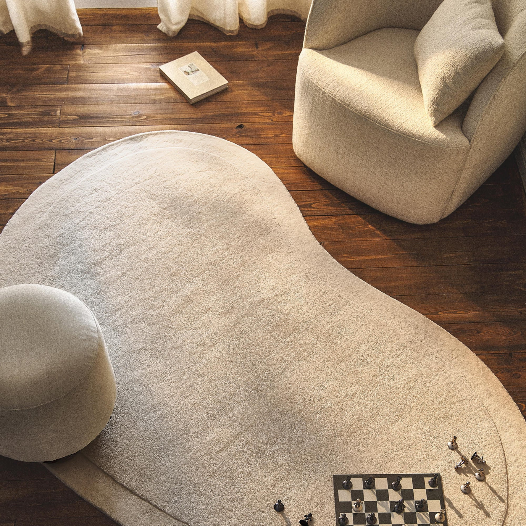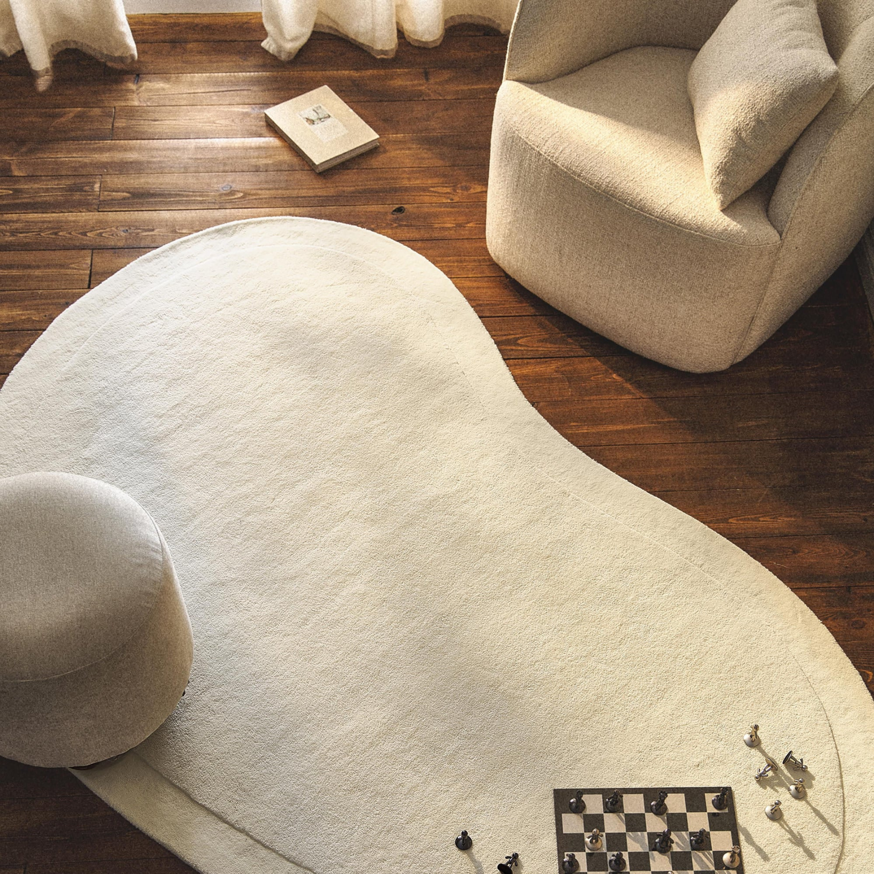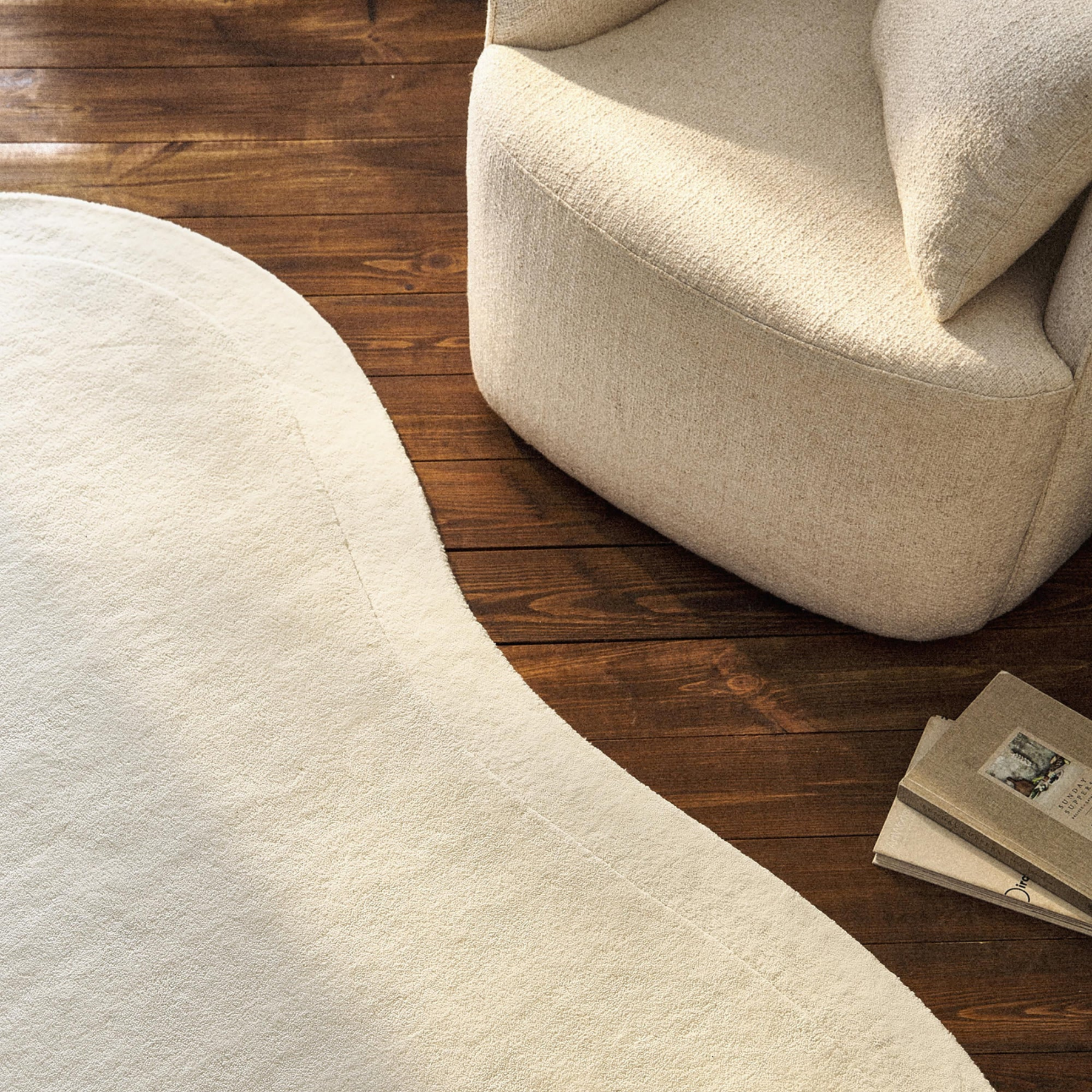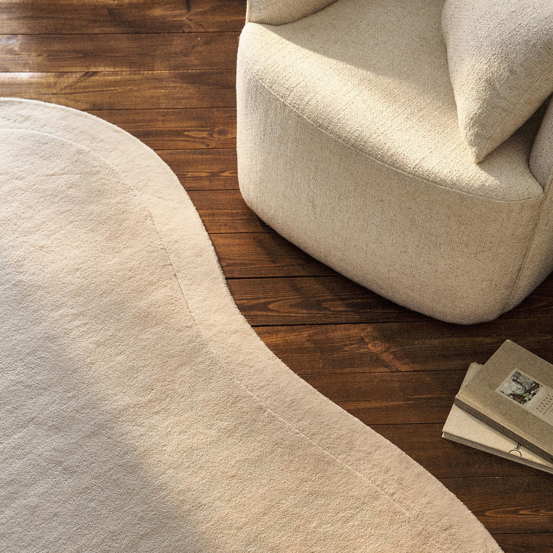 素材はマイクロファイバーポリエステル。手織りで一枚一枚丁寧に仕上げました。極細の繊維を起毛させて、厚みのある柔らかな踏み心地は、日常に優しい心地よさをもたらします。
