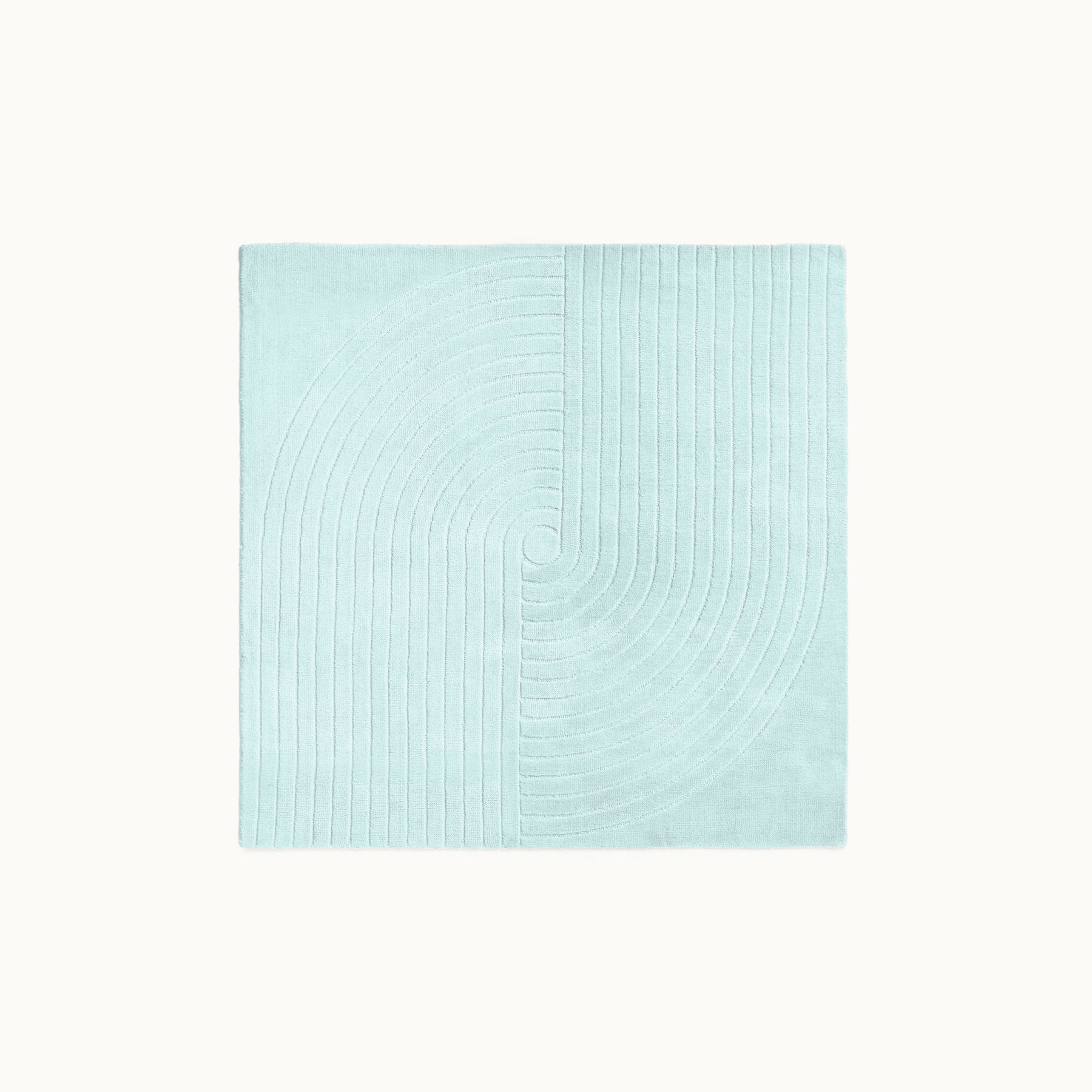 中心から広がるような立体的なラインが印象的で、シンプルな空間にもリズムと奥行きを生み出すデザインラグです。