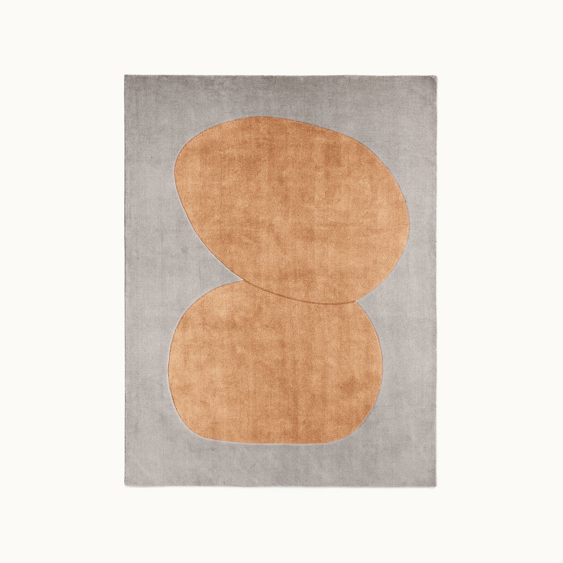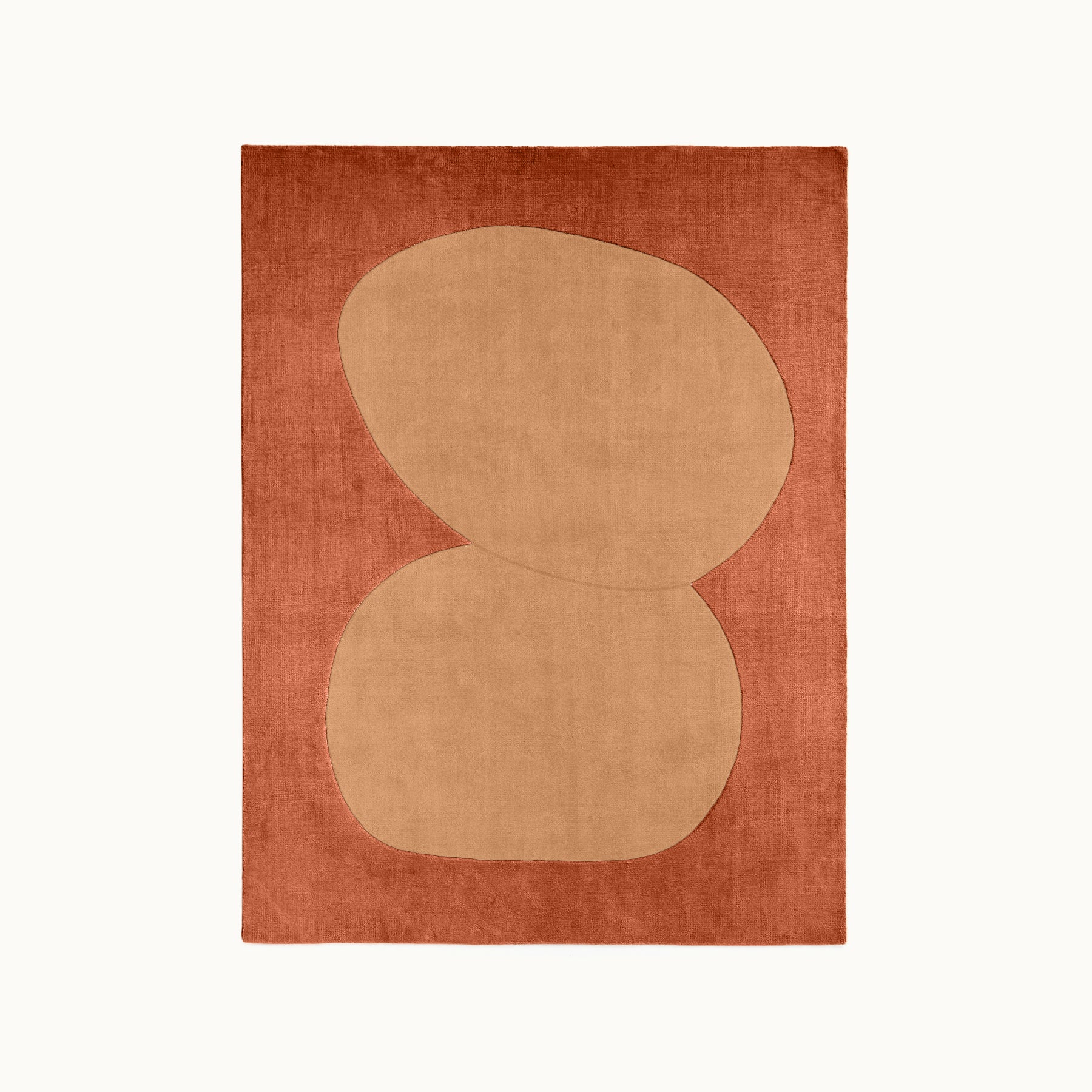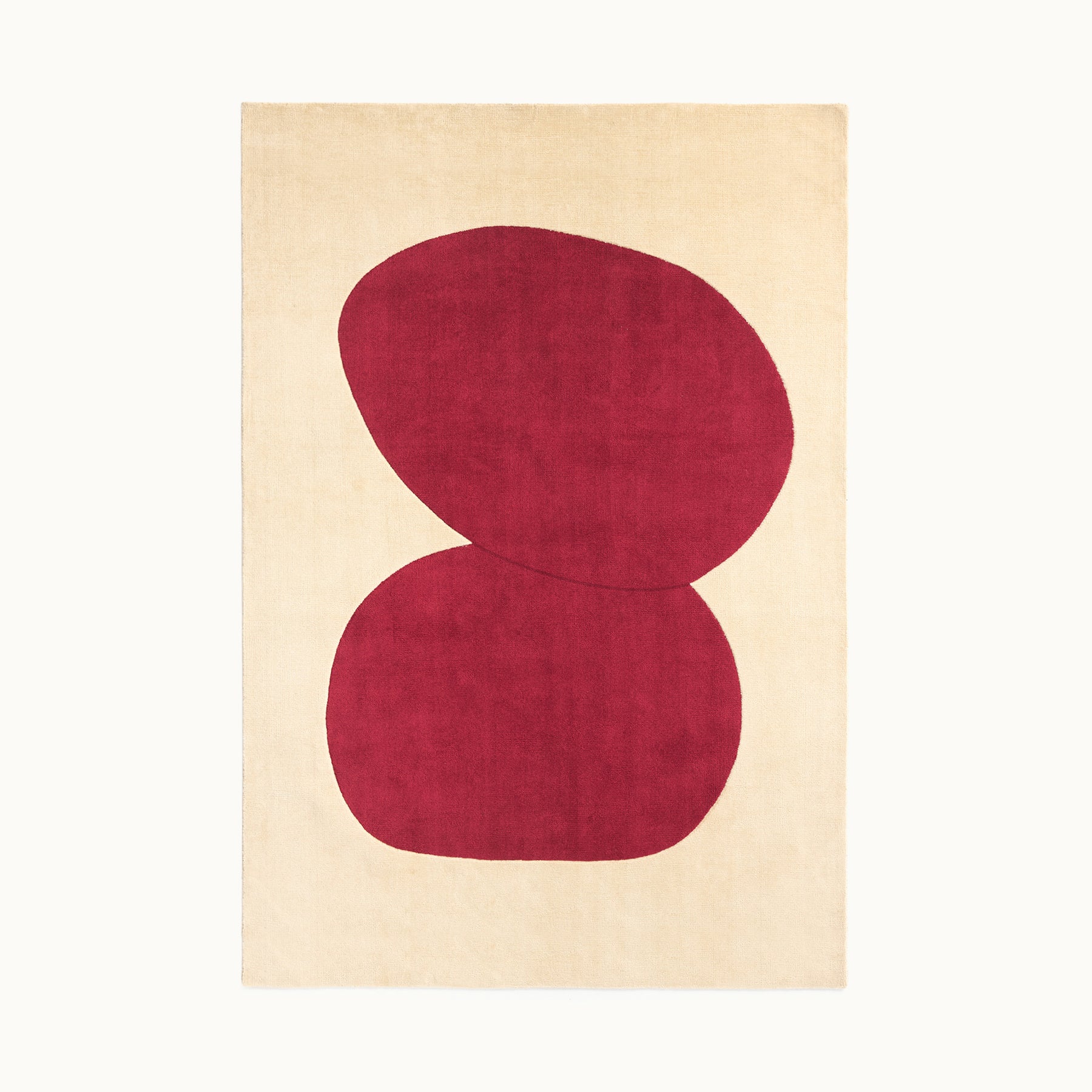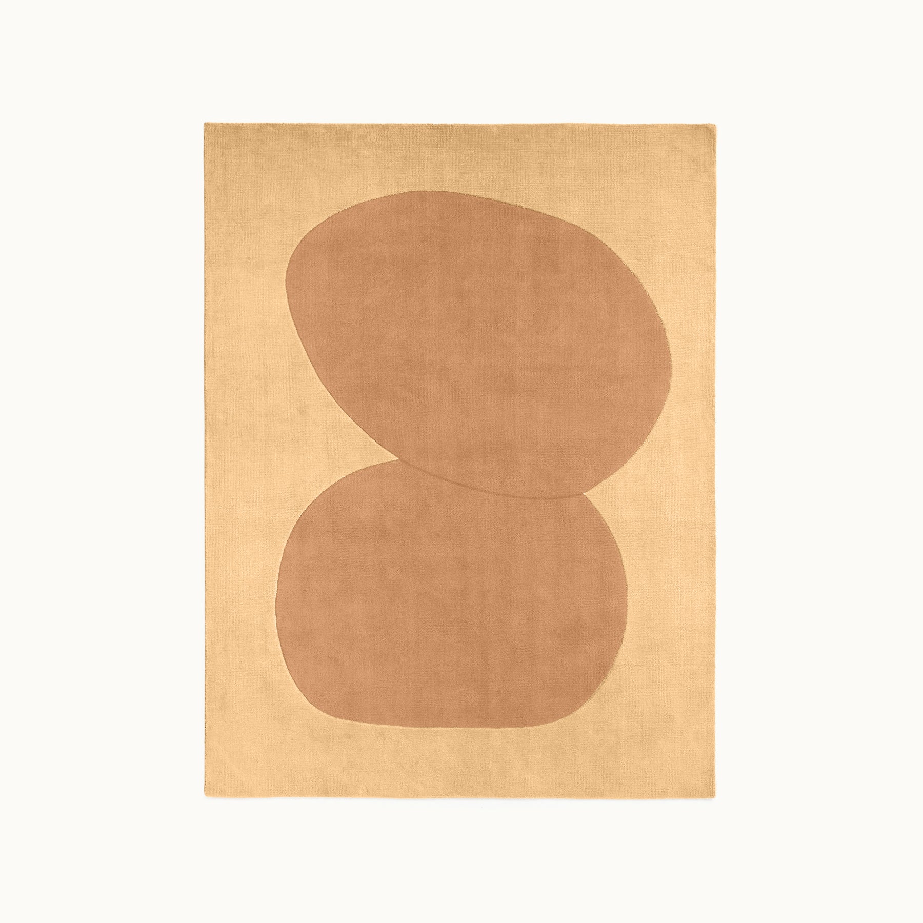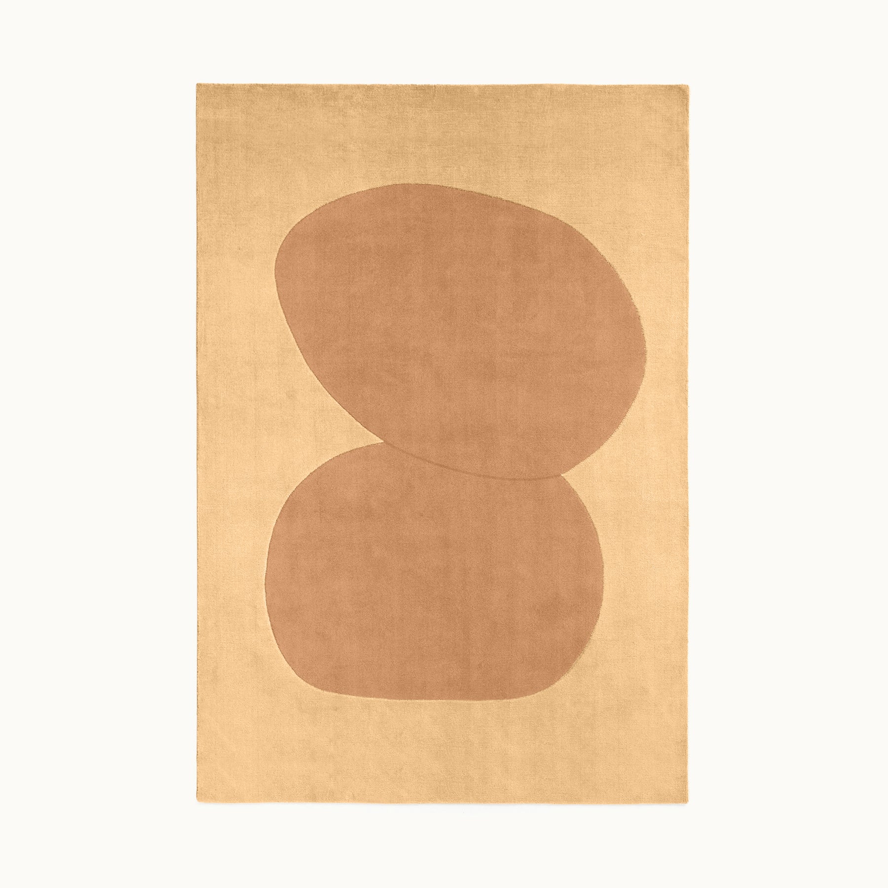 有機的なフォルムを重ねたデザインが印象的なアートラグ。抽象画のような構成が空間にすっと溶け込み、シンプルなインテリアにも心地よいアクセントを添えてくれます。モダンなムードを保ちながら、どこか親しみのある表情を楽します。