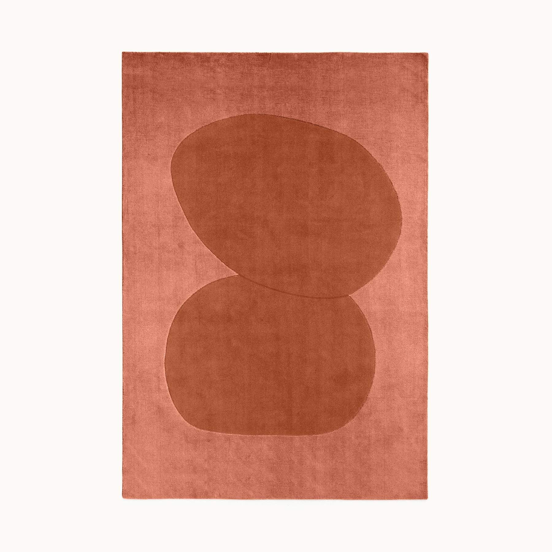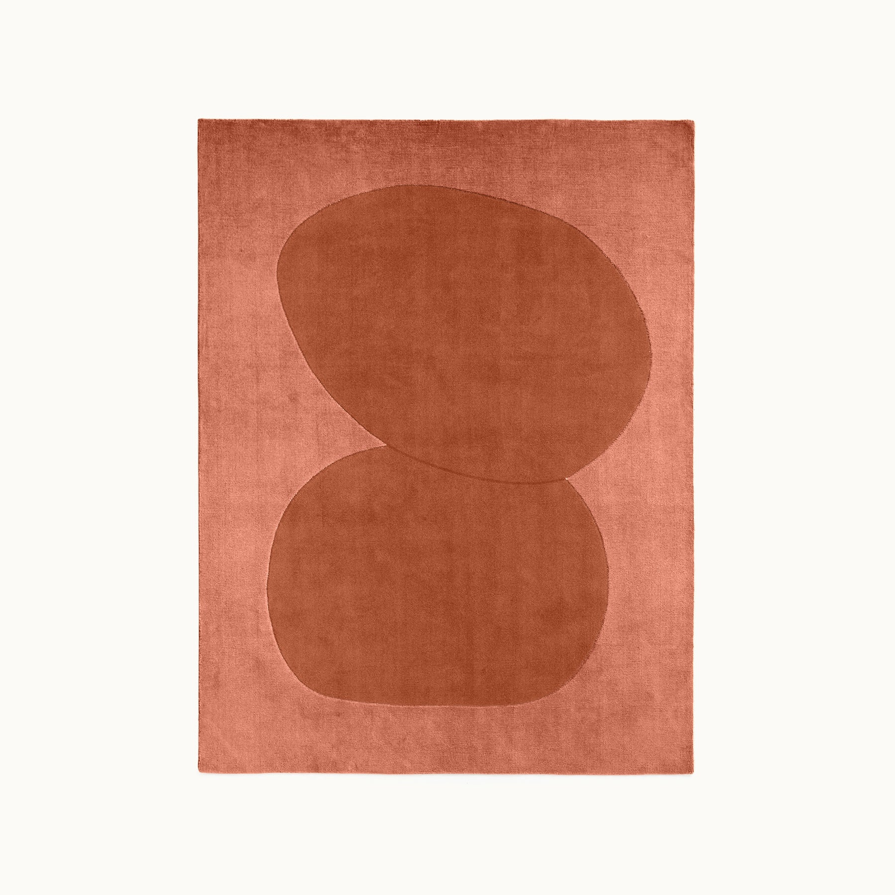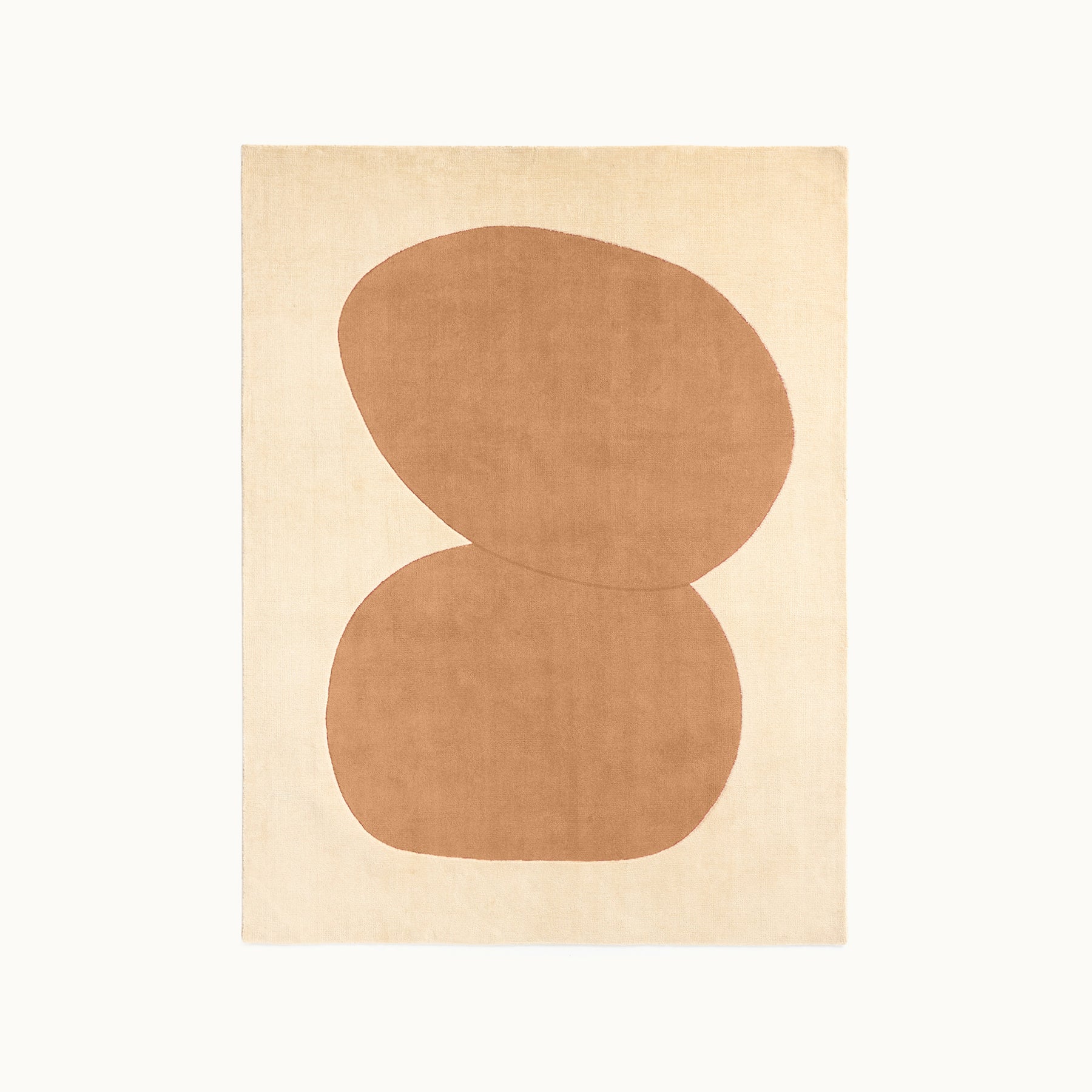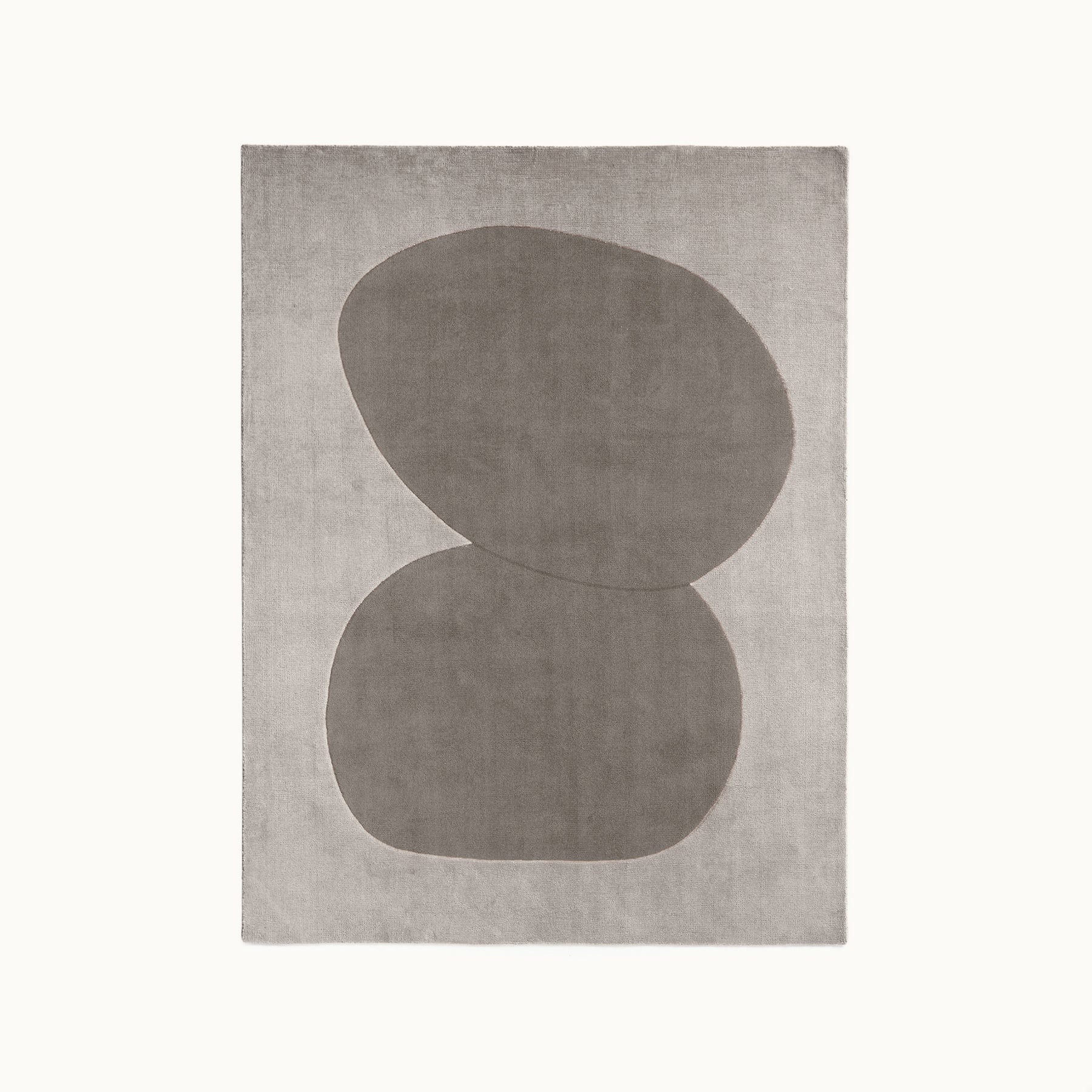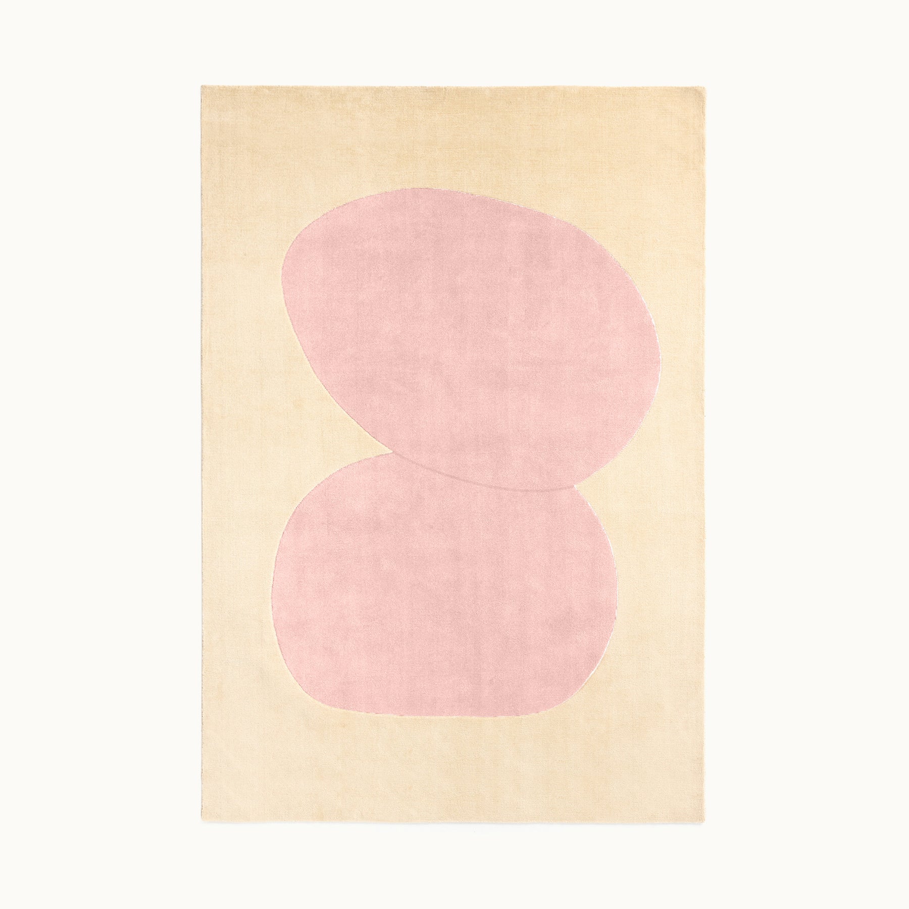 有機的なフォルムを重ねたデザインが印象的なアートラグ。抽象画のような構成が空間にすっと溶け込み、シンプルなインテリアにも心地よいアクセントを添えてくれます。モダンなムードを保ちながら、どこか親しみのある表情を楽します。