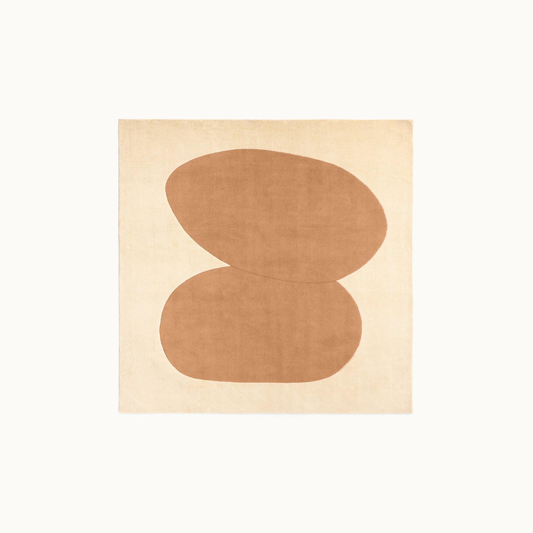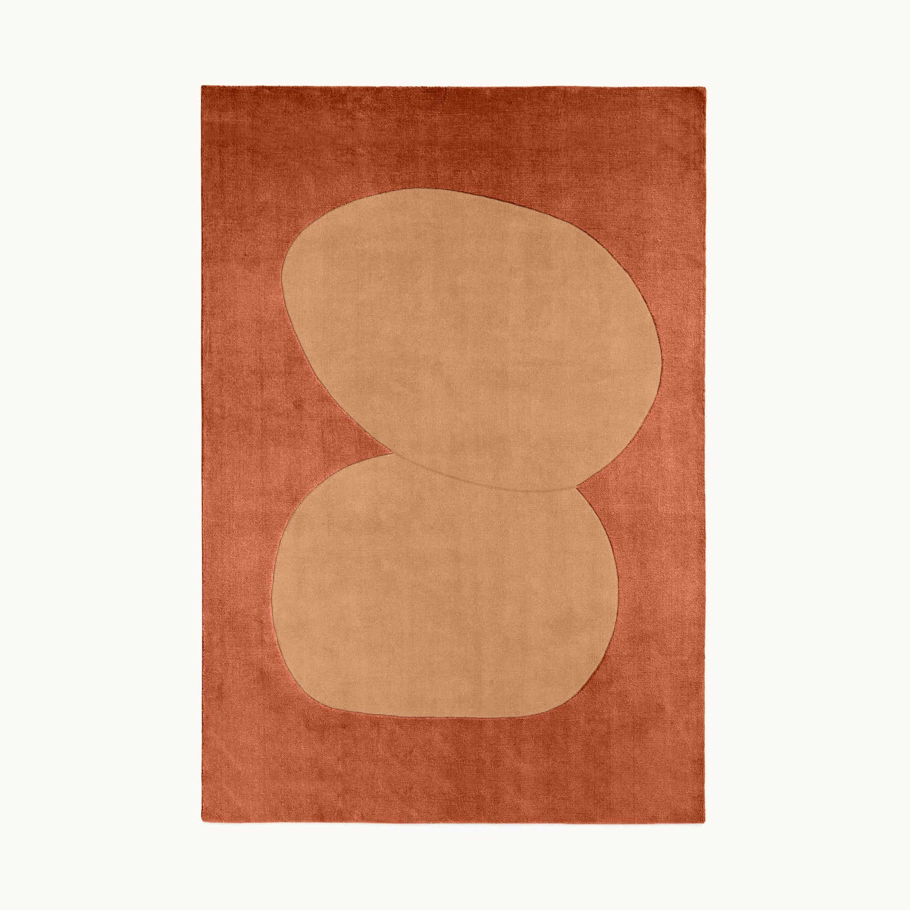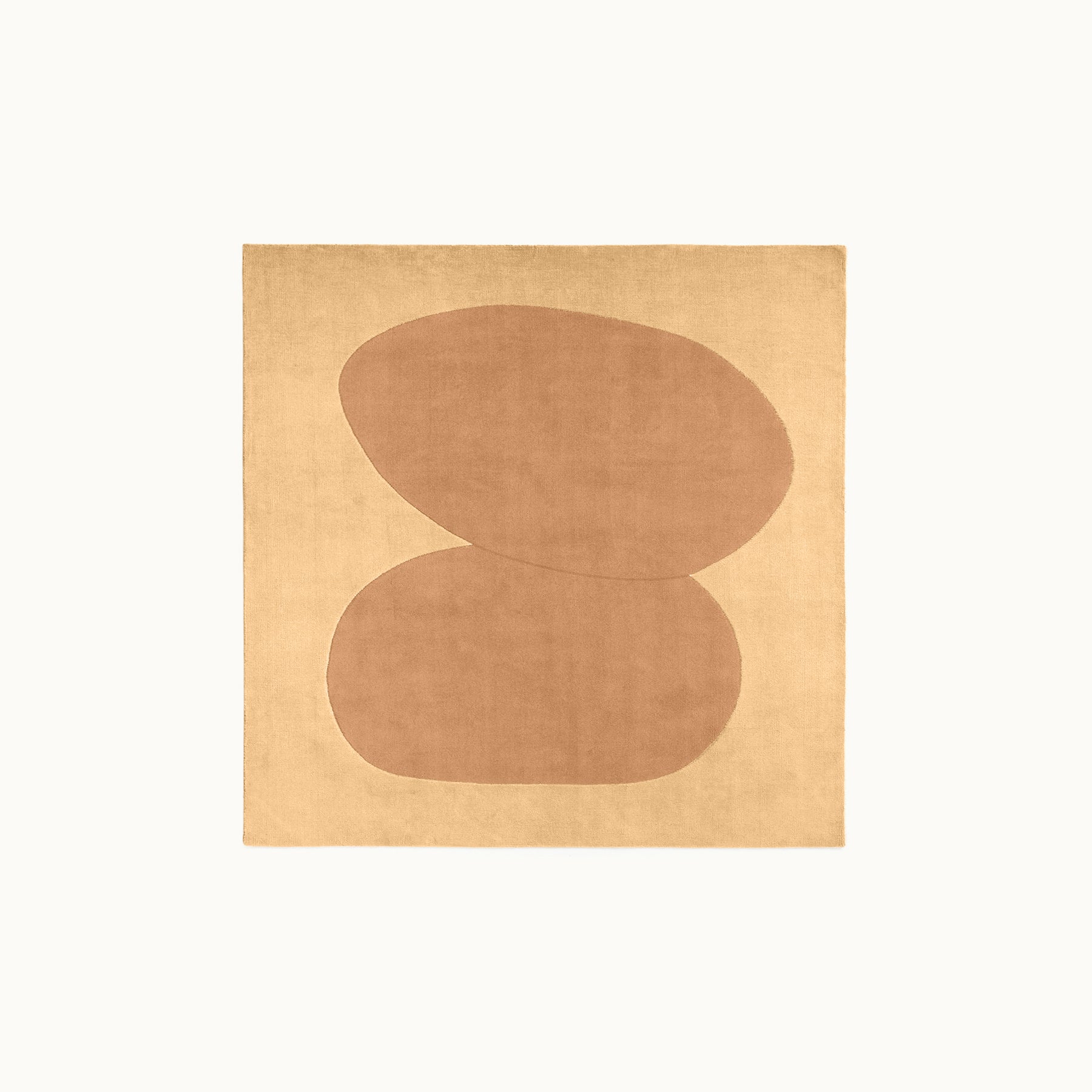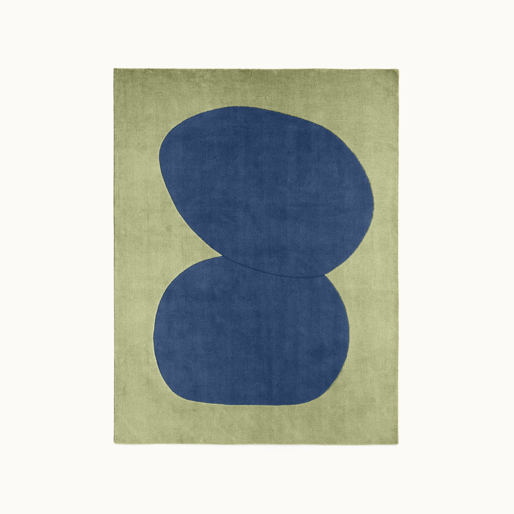 有機的なフォルムを重ねたデザインが印象的なアートラグ。抽象画のような構成が空間にすっと溶け込み、シンプルなインテリアにも心地よいアクセントを添えてくれます。モダンなムードを保ちながら、どこか親しみのある表情を楽します。