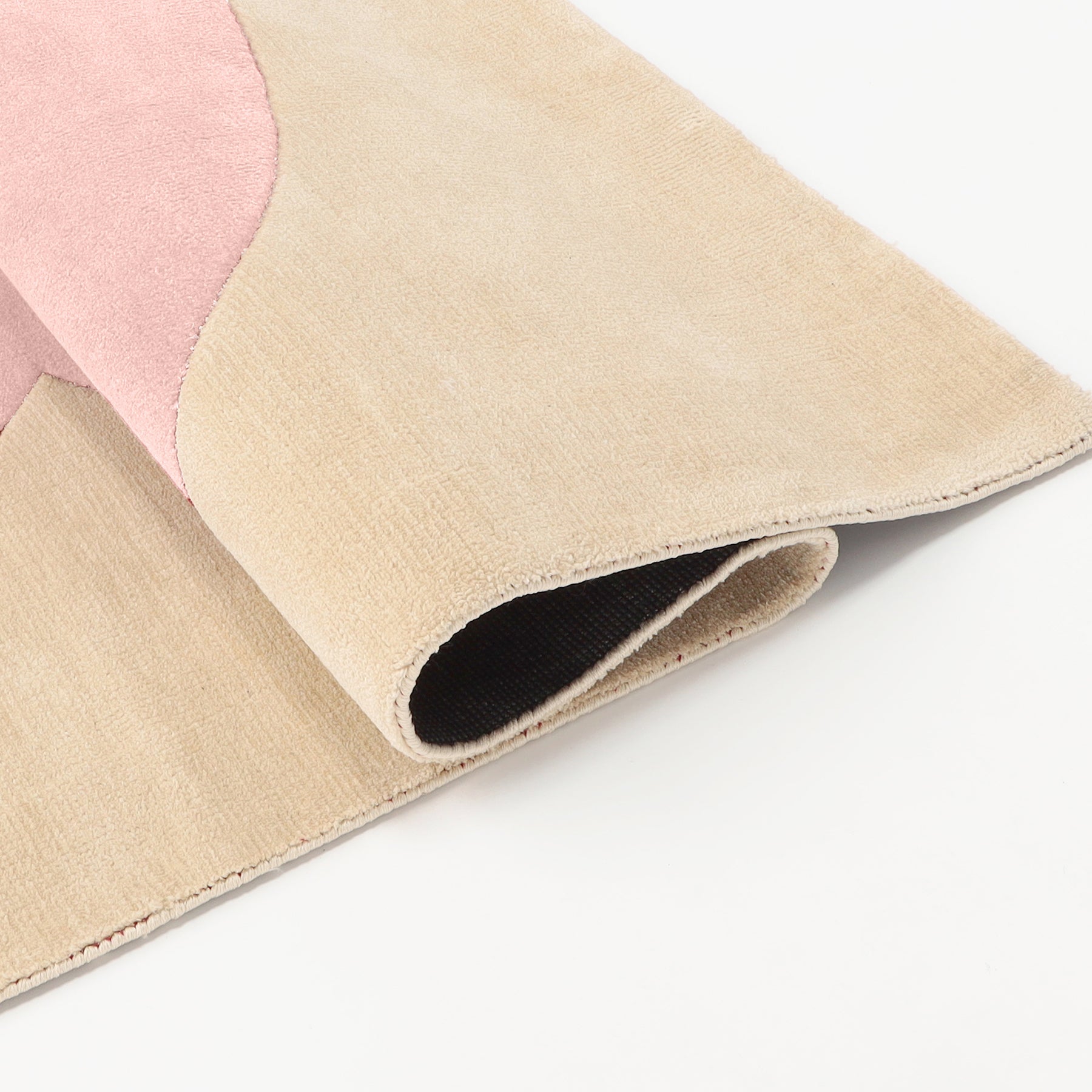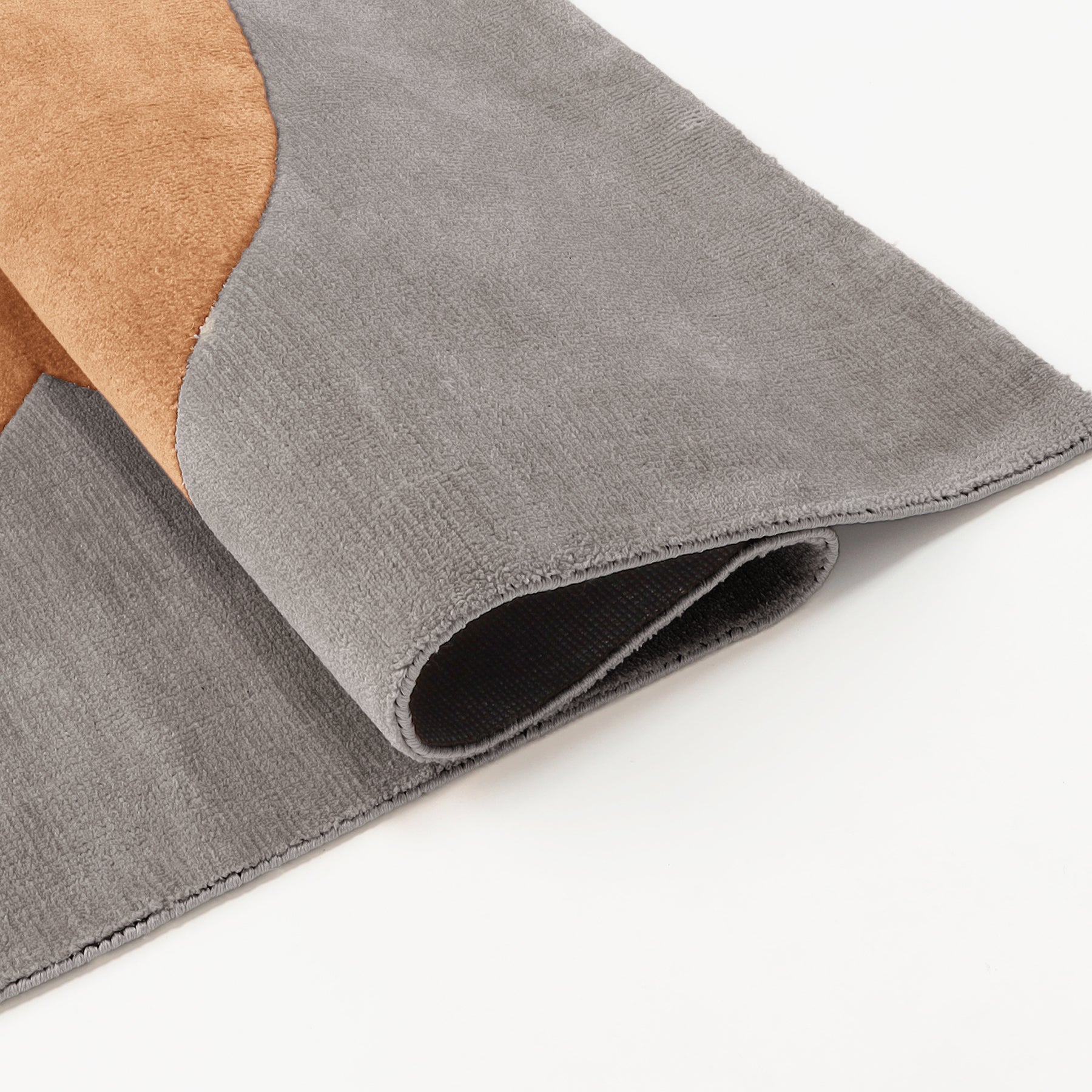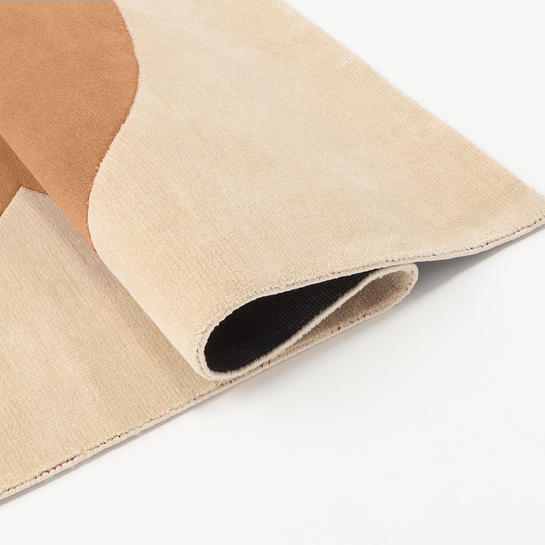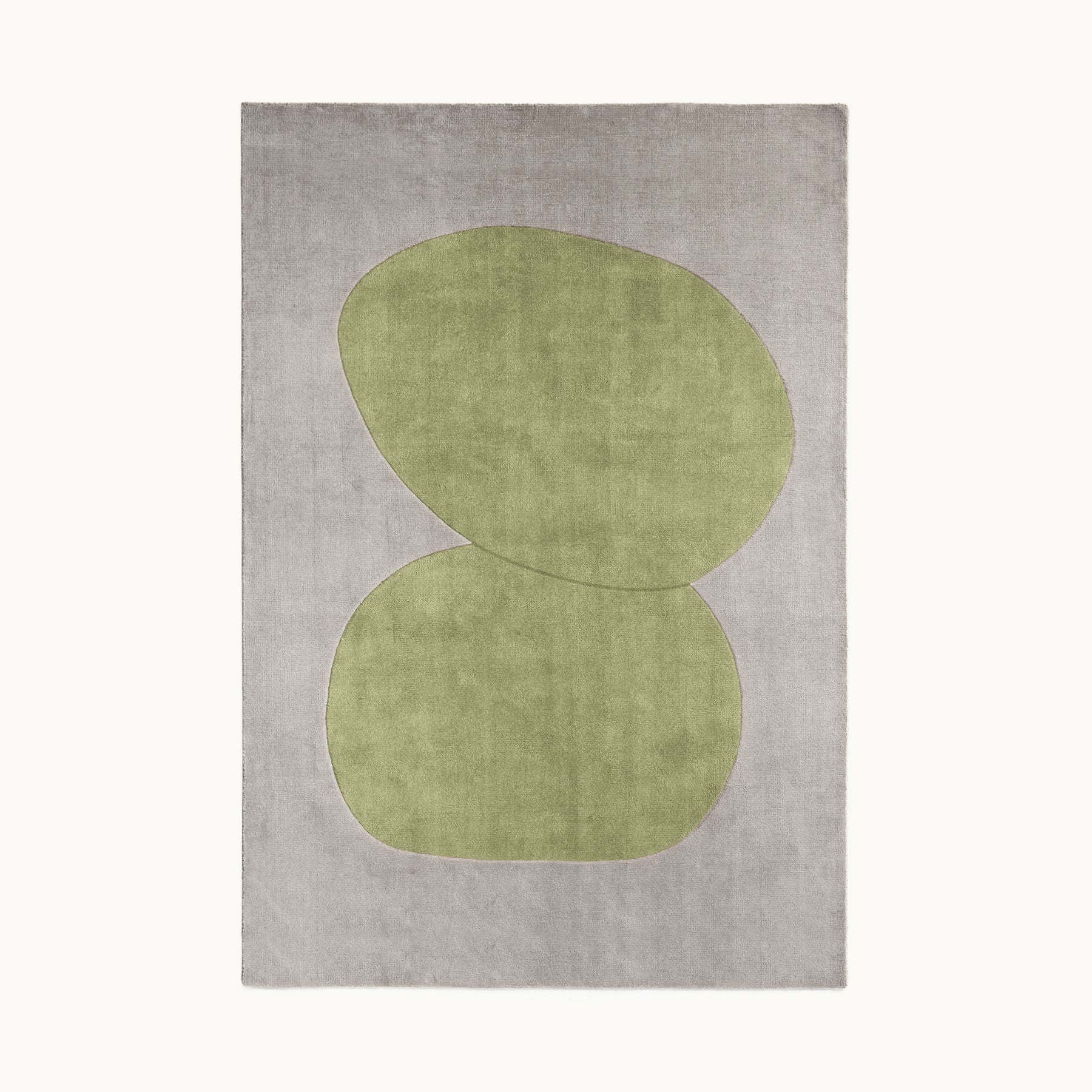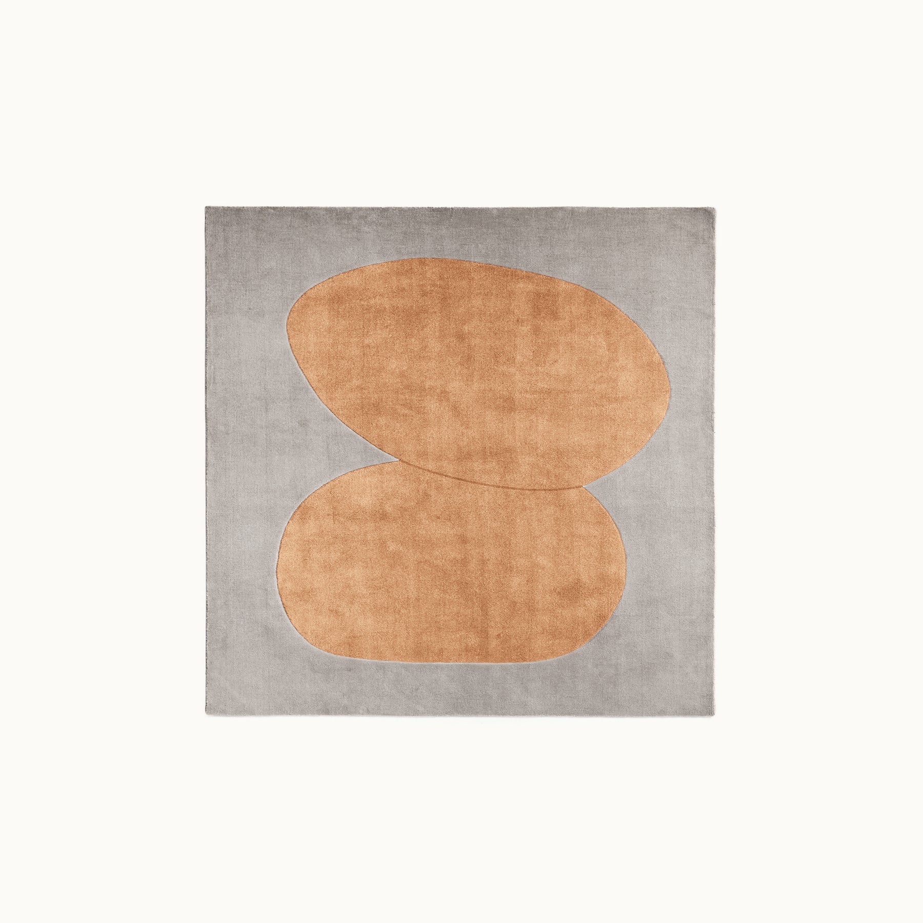 有機的なフォルムを重ねたデザインが印象的なアートラグ。抽象画のような構成が空間にすっと溶け込み、シンプルなインテリアにも心地よいアクセントを添えてくれます。モダンなムードを保ちながら、どこか親しみのある表情を楽します。