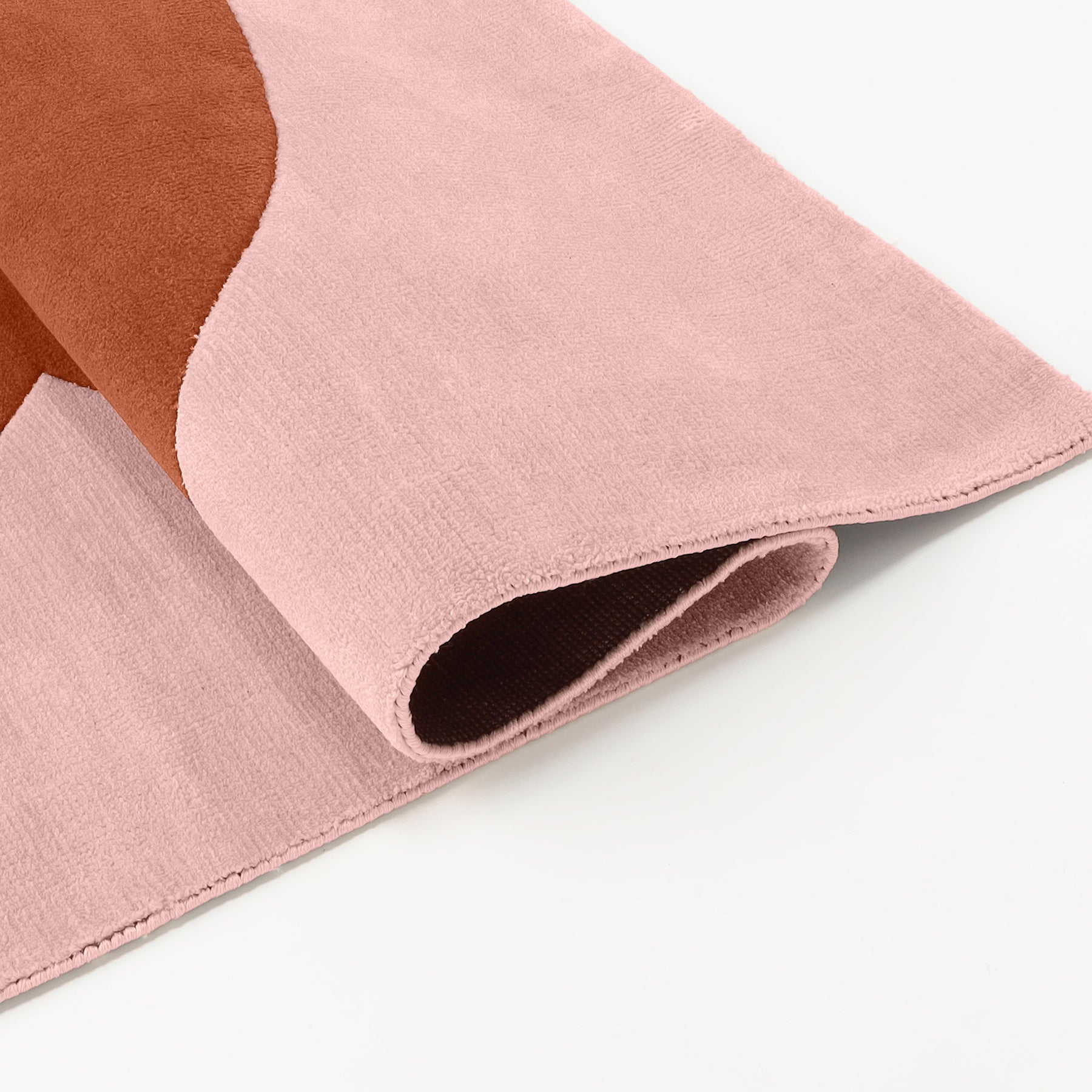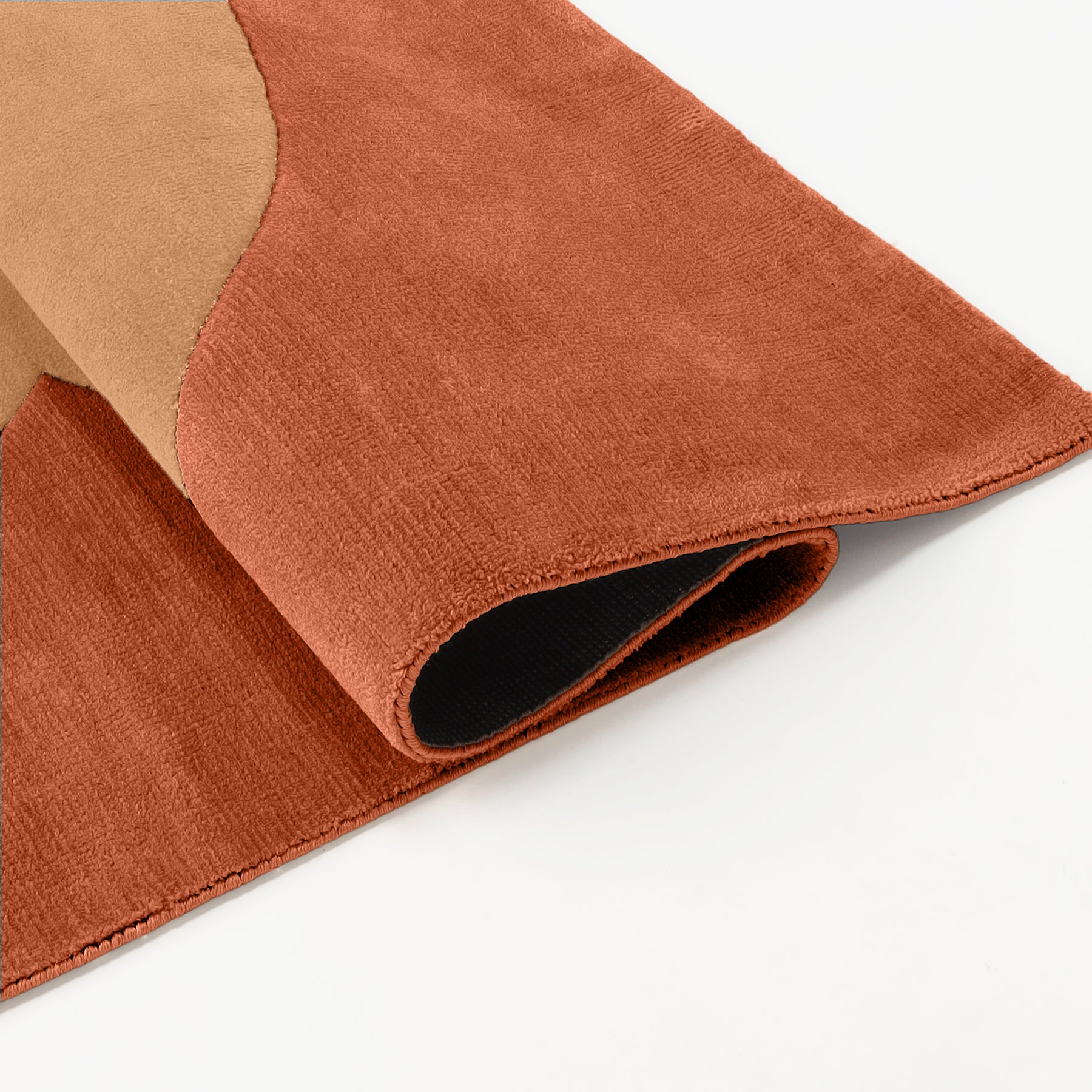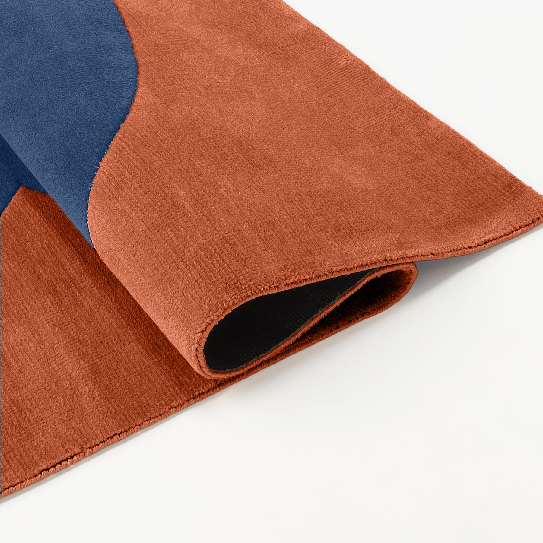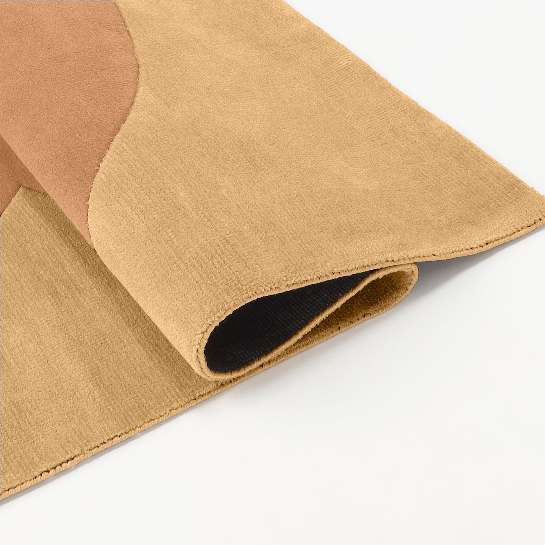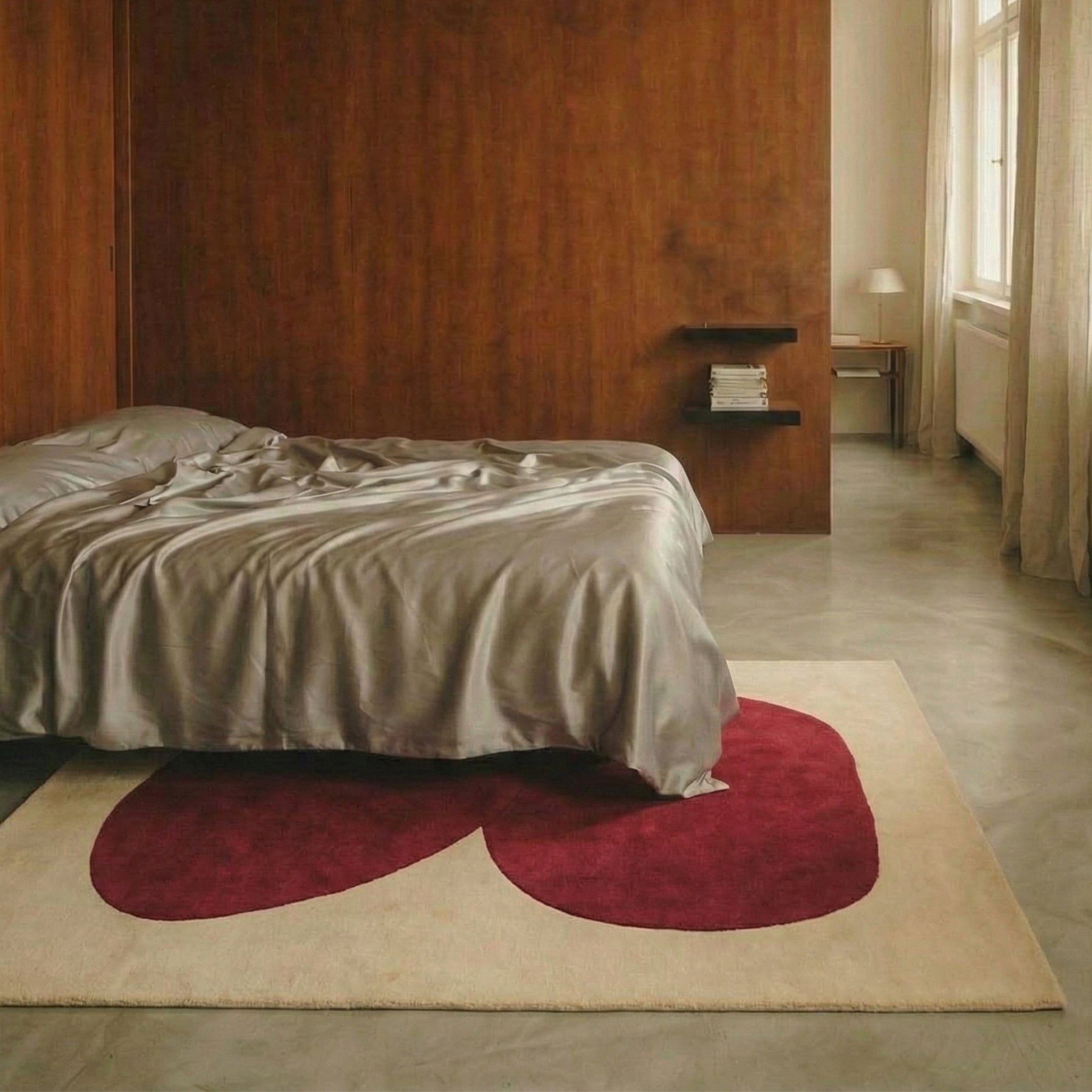 有機的なフォルムを重ねたデザインが印象的なアートラグ。抽象画のような構成が空間にすっと溶け込み、シンプルなインテリアにも心地よいアクセントを添えてくれます。モダンなムードを保ちながら、どこか親しみのある表情を楽します。