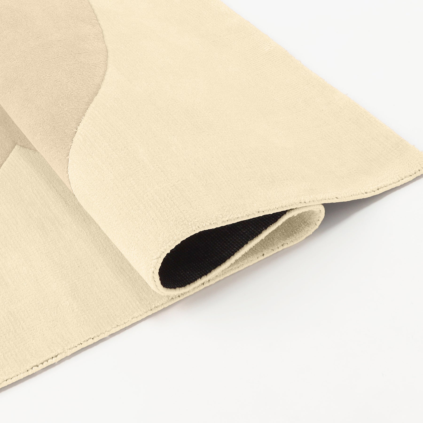 素材はマイクロファイバーポリエステル。極細の繊維を起毛させて、極上の触り心地のラグをつくりました。なめらかで心地よい肌ざわりが広がり、思わず素足で過ごしたくなる快適さ。防汚性があり日常使いもしやすく、床暖房にも対応しているため季節を問わず快適にお使いいただけます。