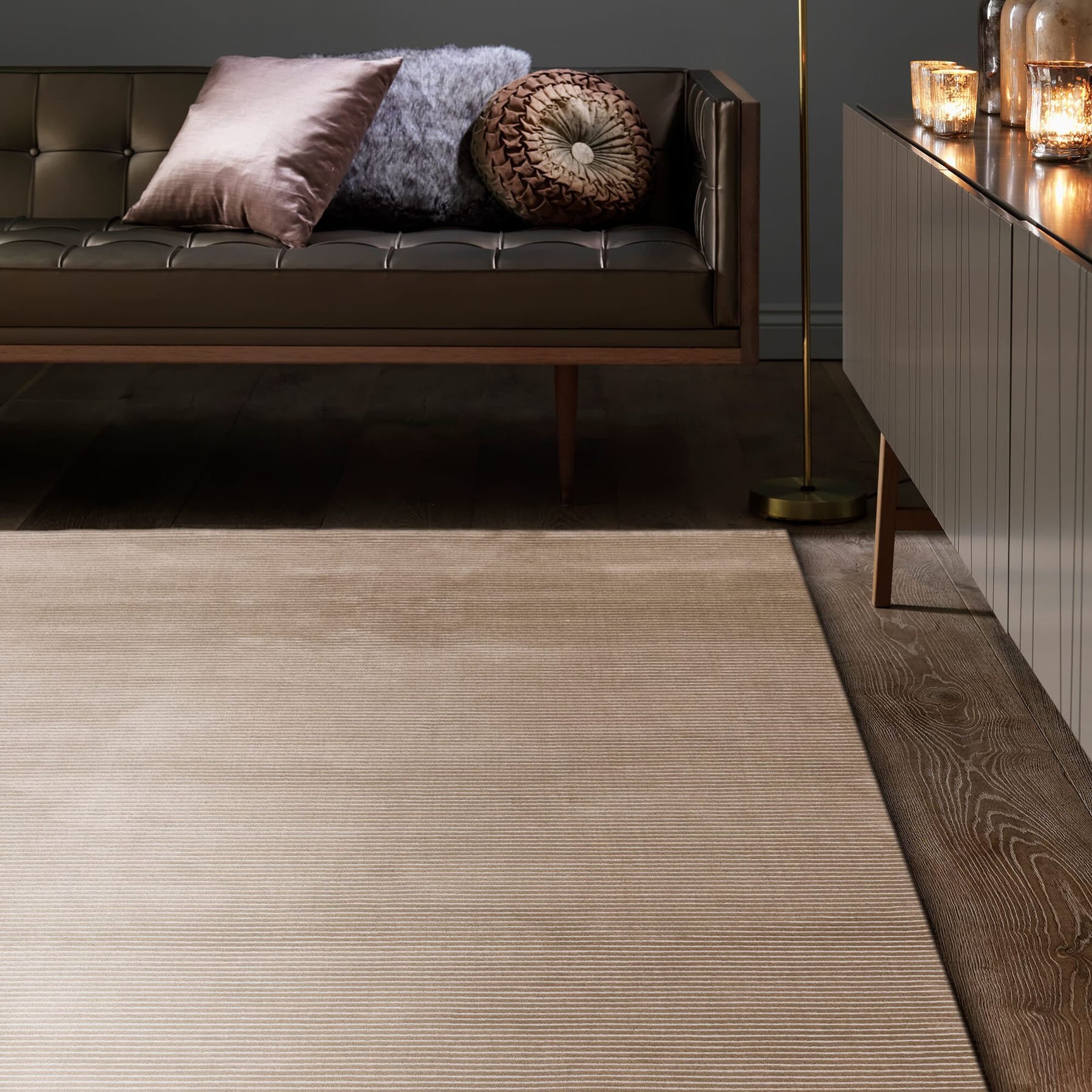ニュートラルモダンな色合いと、スタイリッシュなリブボーダーの組み合わせが、ハイセンスなプレーンラグ Bodil。