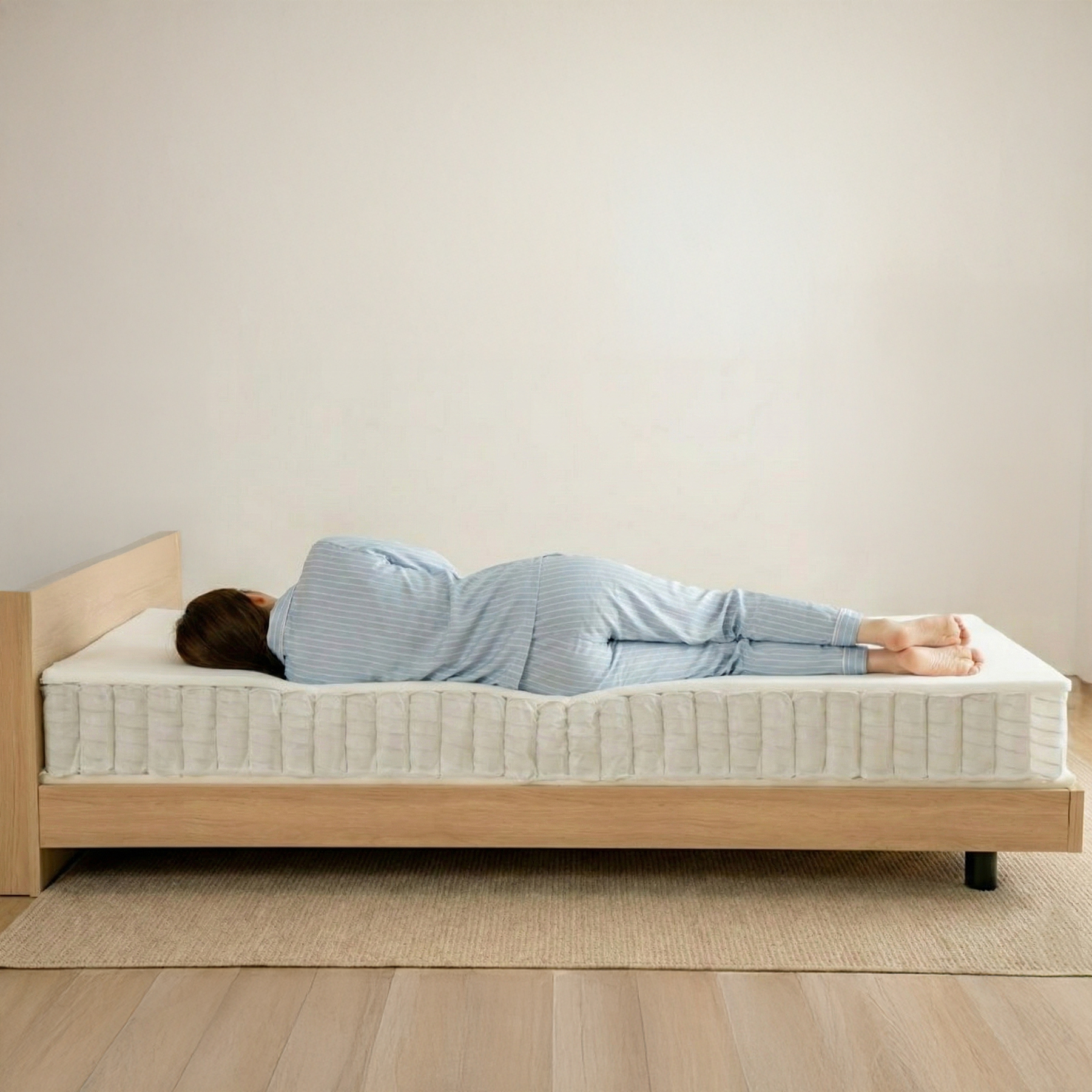 しっかりとした25mの厚み。体を面ではなく点で支えるポケットコイル構造で、自然な寝姿勢を保ちやすい設計です。
