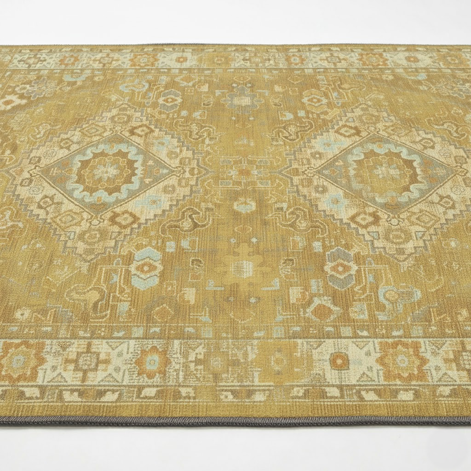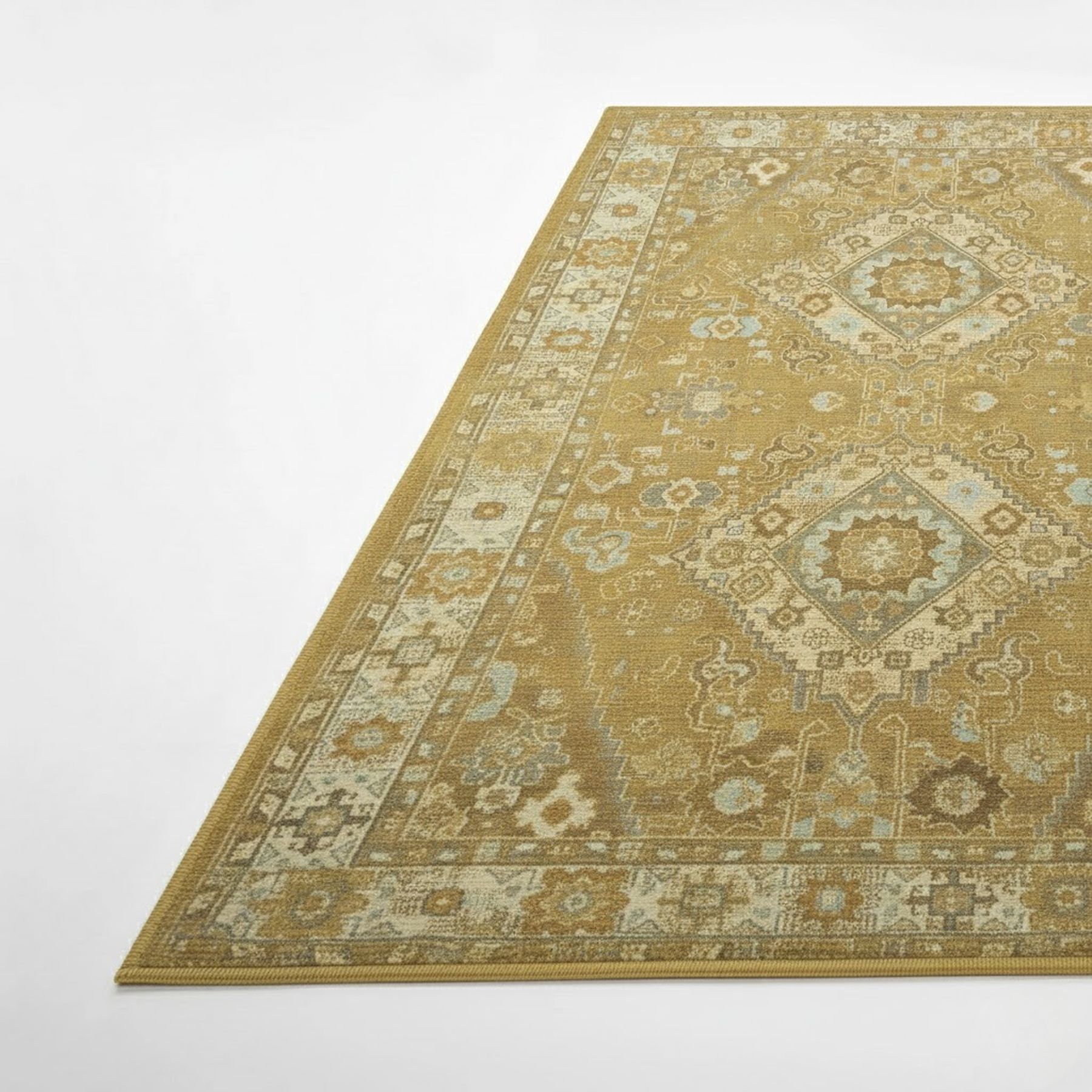 一面に柄のある華やかなデザインですが、ヴィンテージ調に仕上げているため、トーンが程よく抑えられて品のある佇まいです。敷いたその瞬間から、お部屋にしっくりと馴染みますよ。