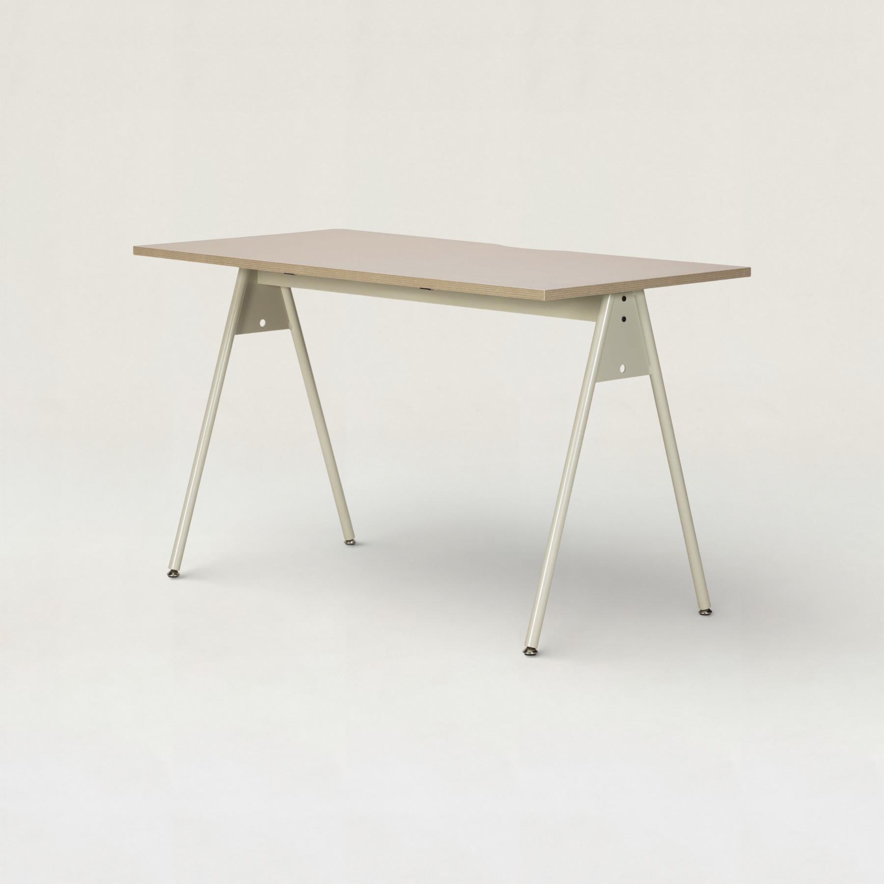 天板と脚部のシンプルな構成が、空間にすっと馴染むミニマルなデスク。