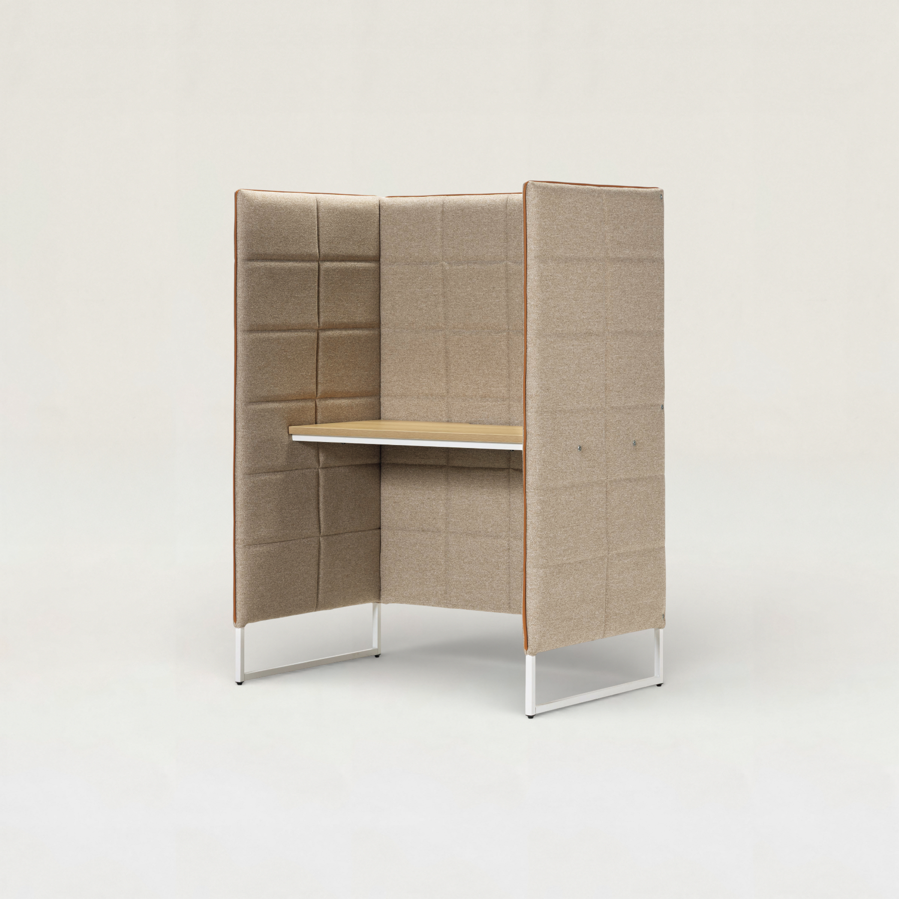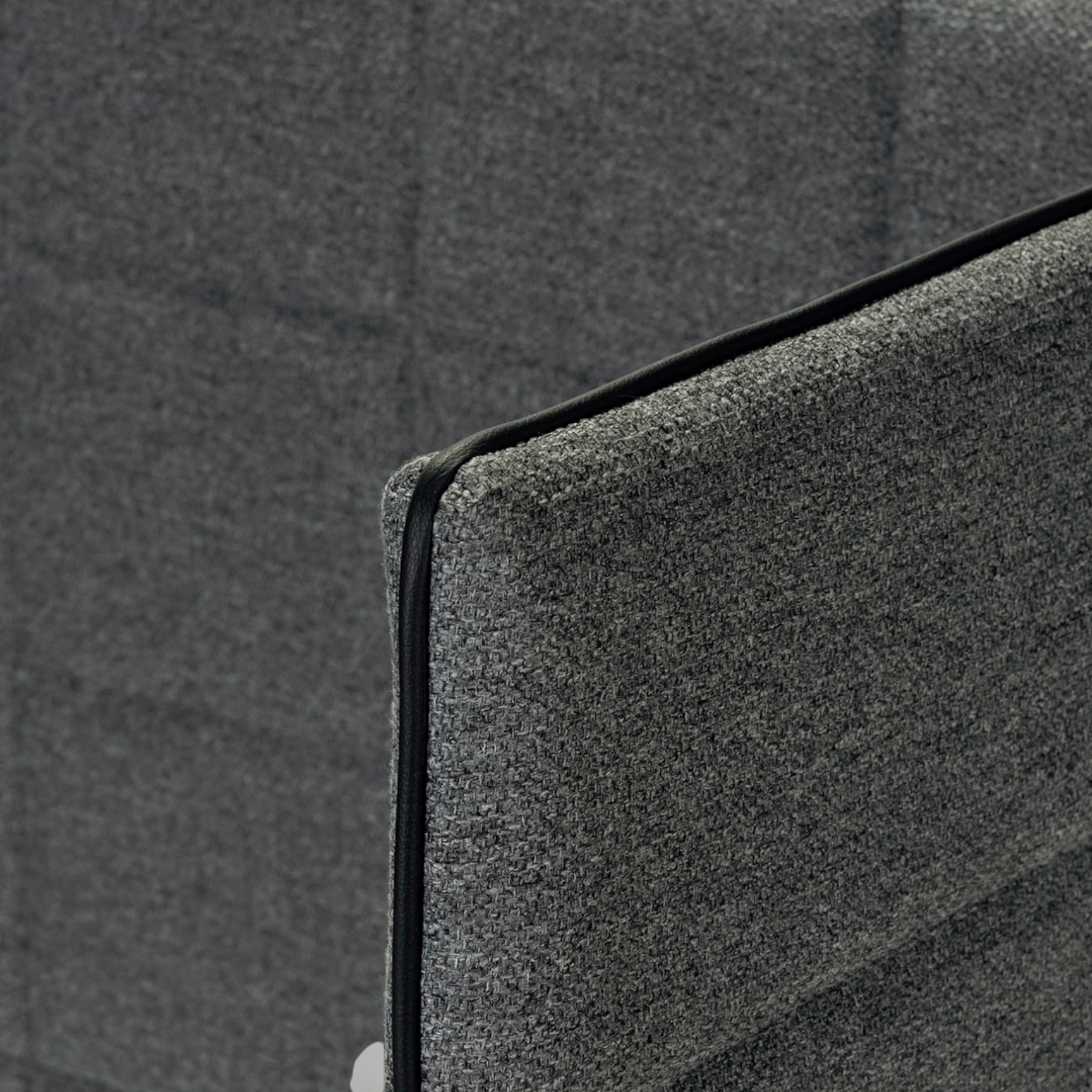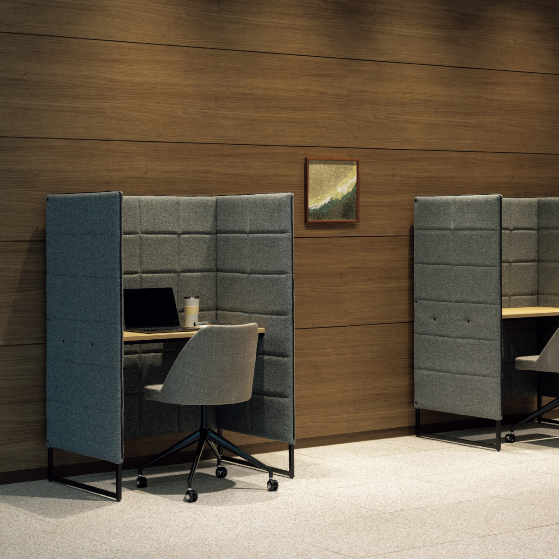 ファブリックとスチールの絶妙な組み合わせが上質な佇まいをつくり、オフィスやワークスペースの中心にしっくりと馴染みます。淡いトーンは柔らかい光の下でも優しい存在感を放ち、集中したいひとときに寄り添います。