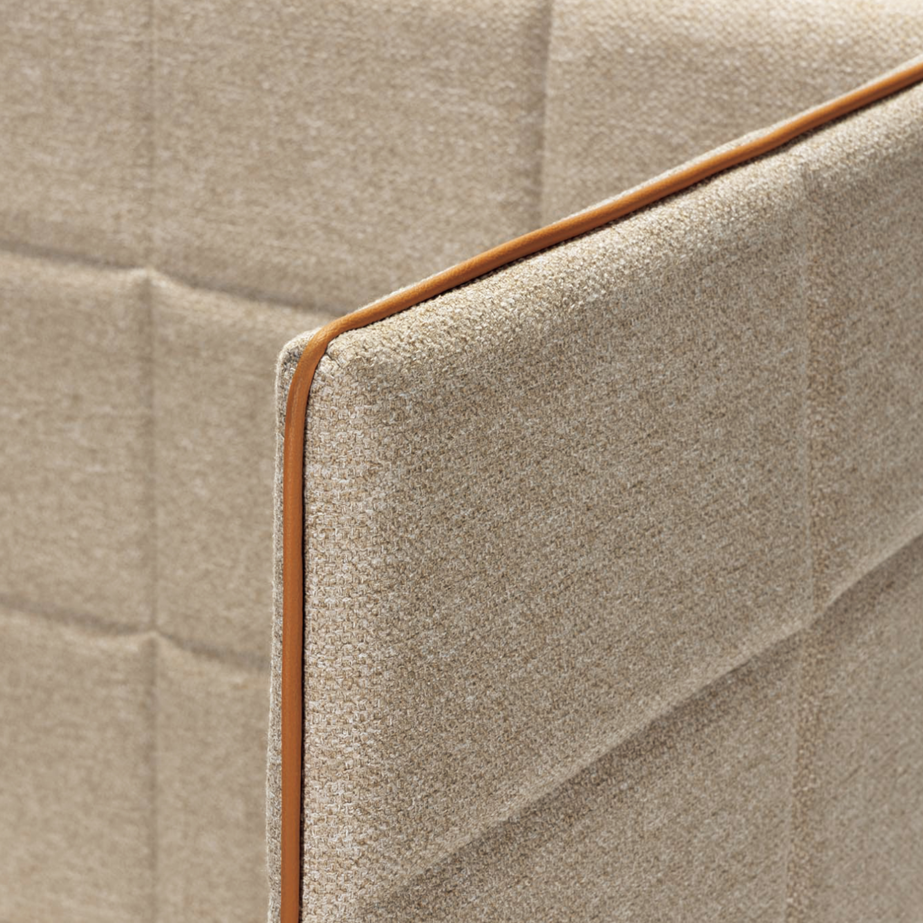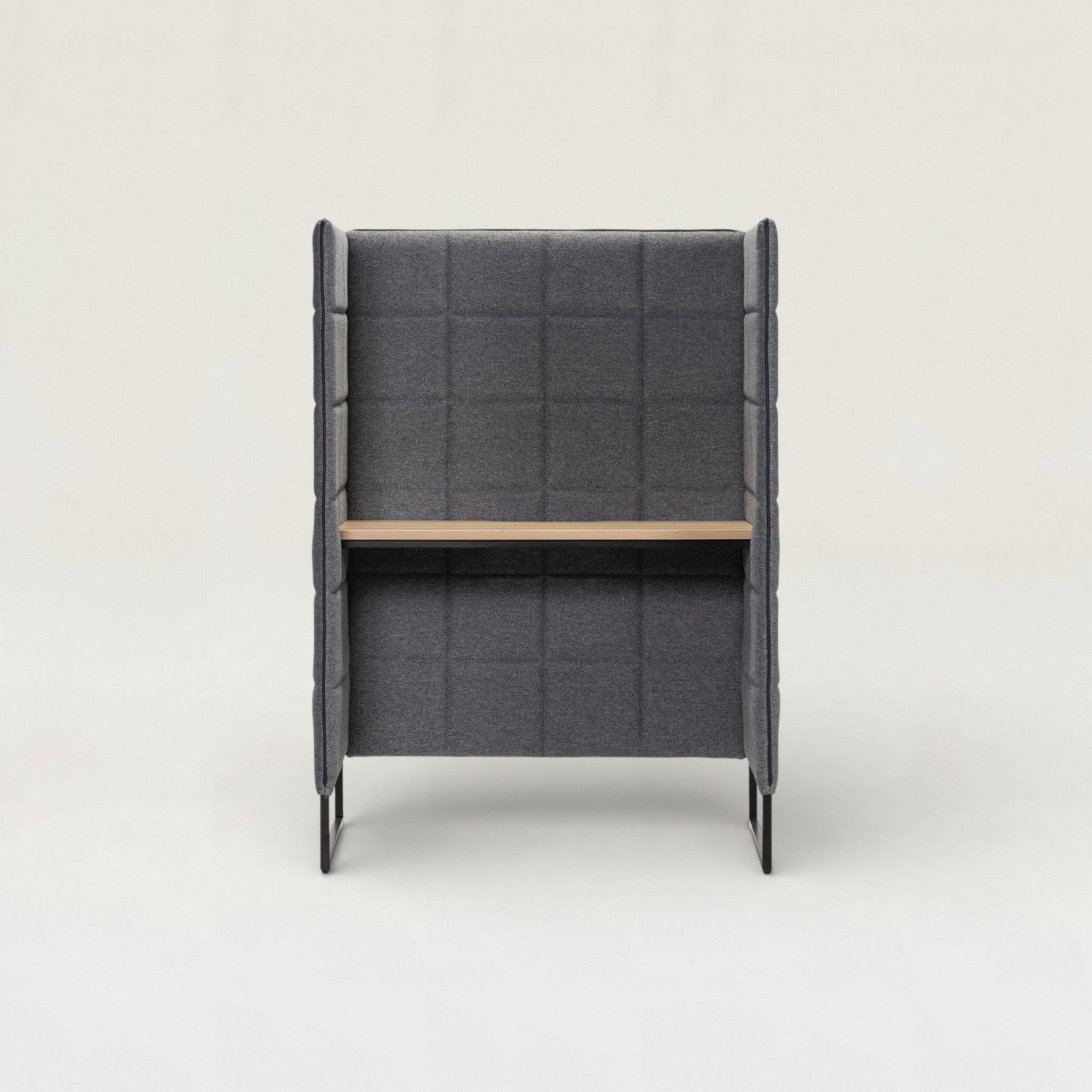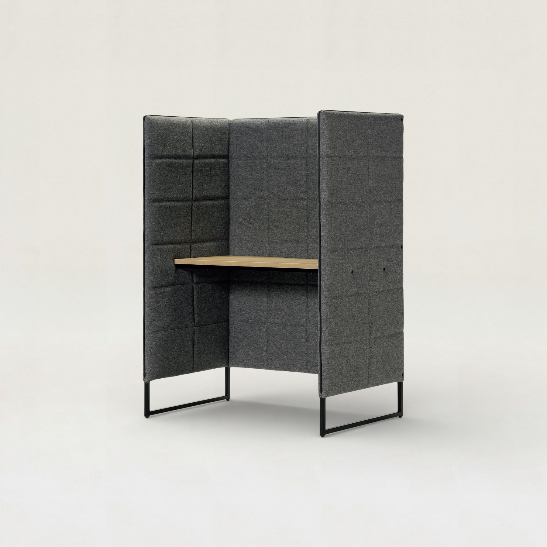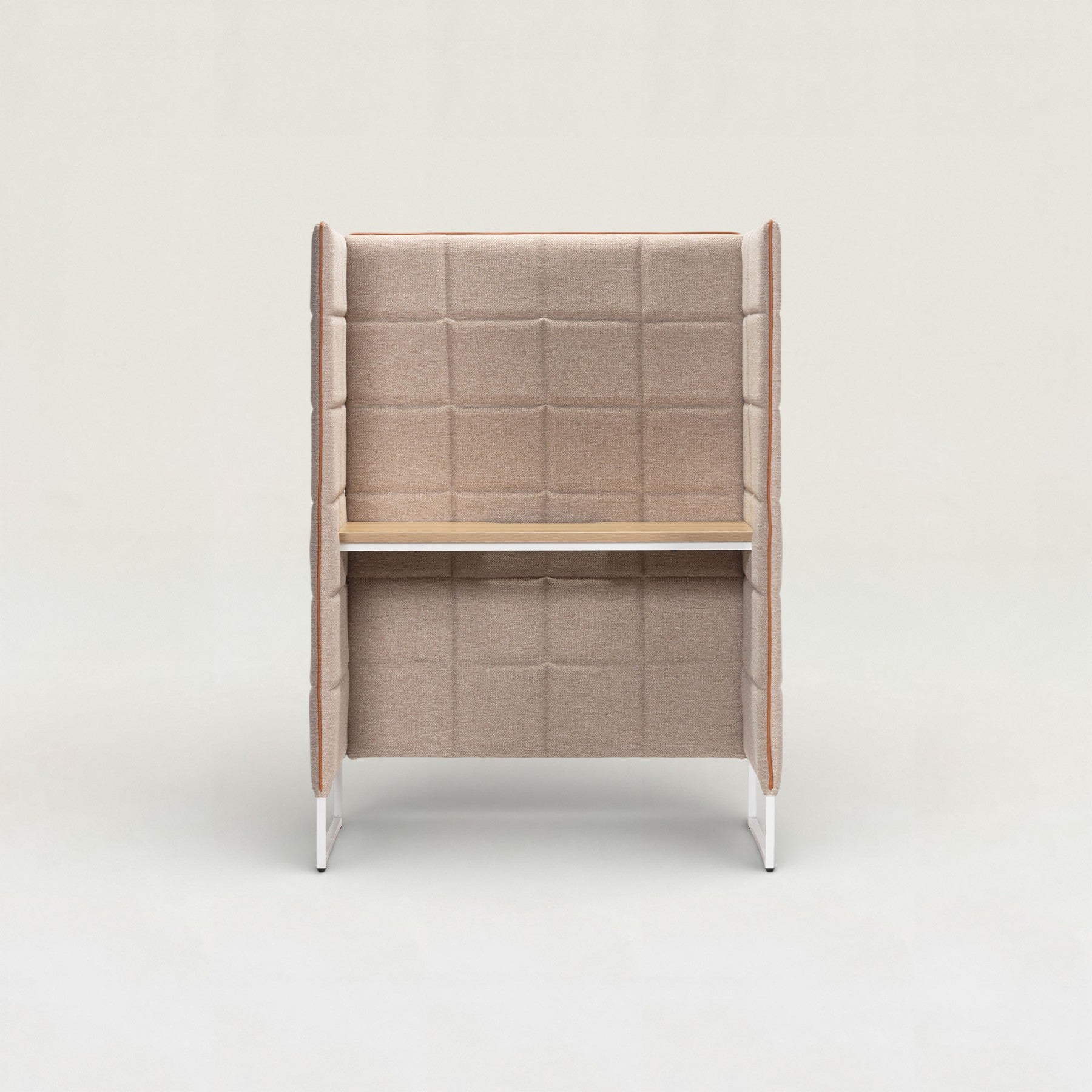 ファブリックとスチールの絶妙な組み合わせが上質な佇まいをつくり、オフィスやワークスペースの中心にしっくりと馴染みます。淡いトーンは柔らかい光の下でも優しい存在感を放ち、集中したいひとときに寄り添います。