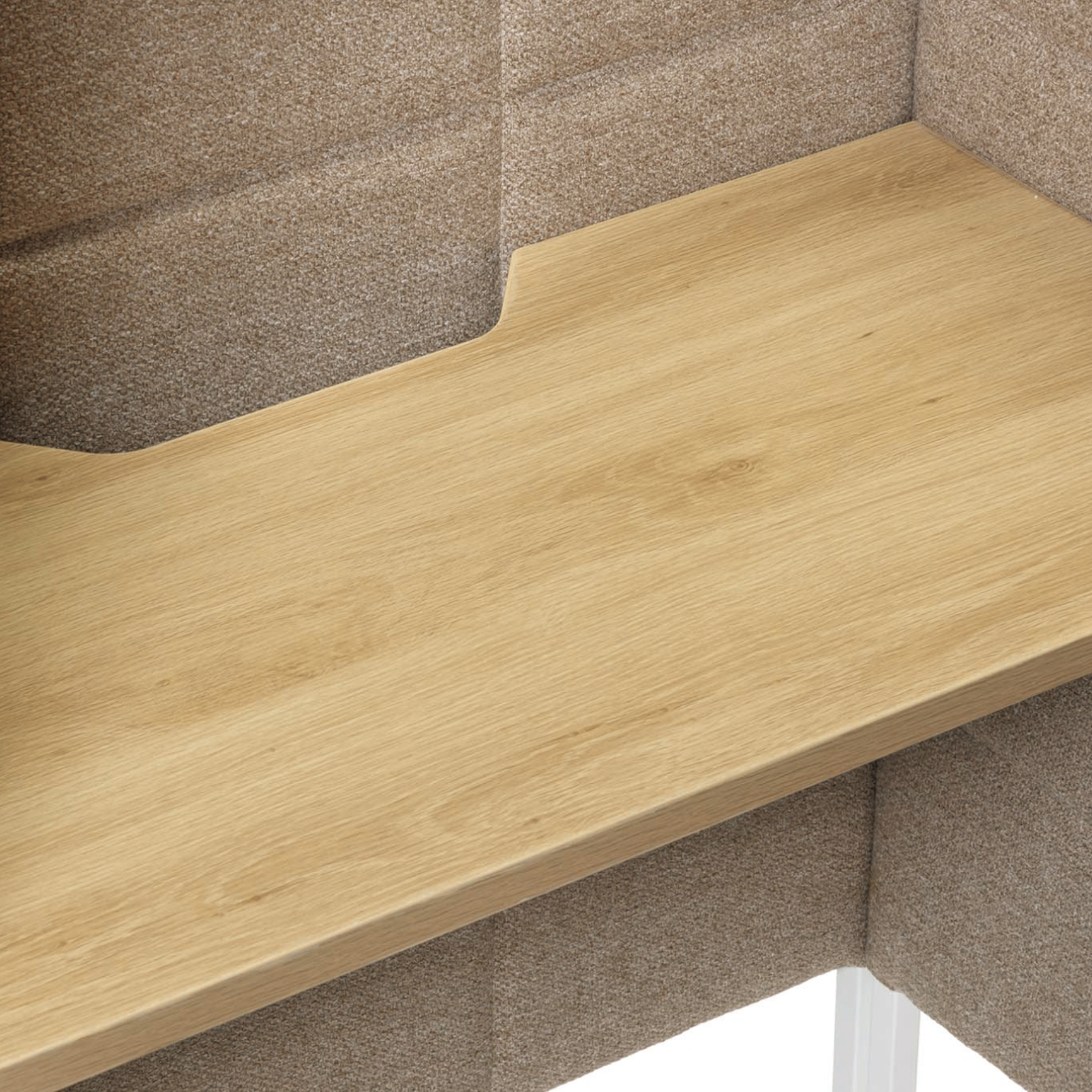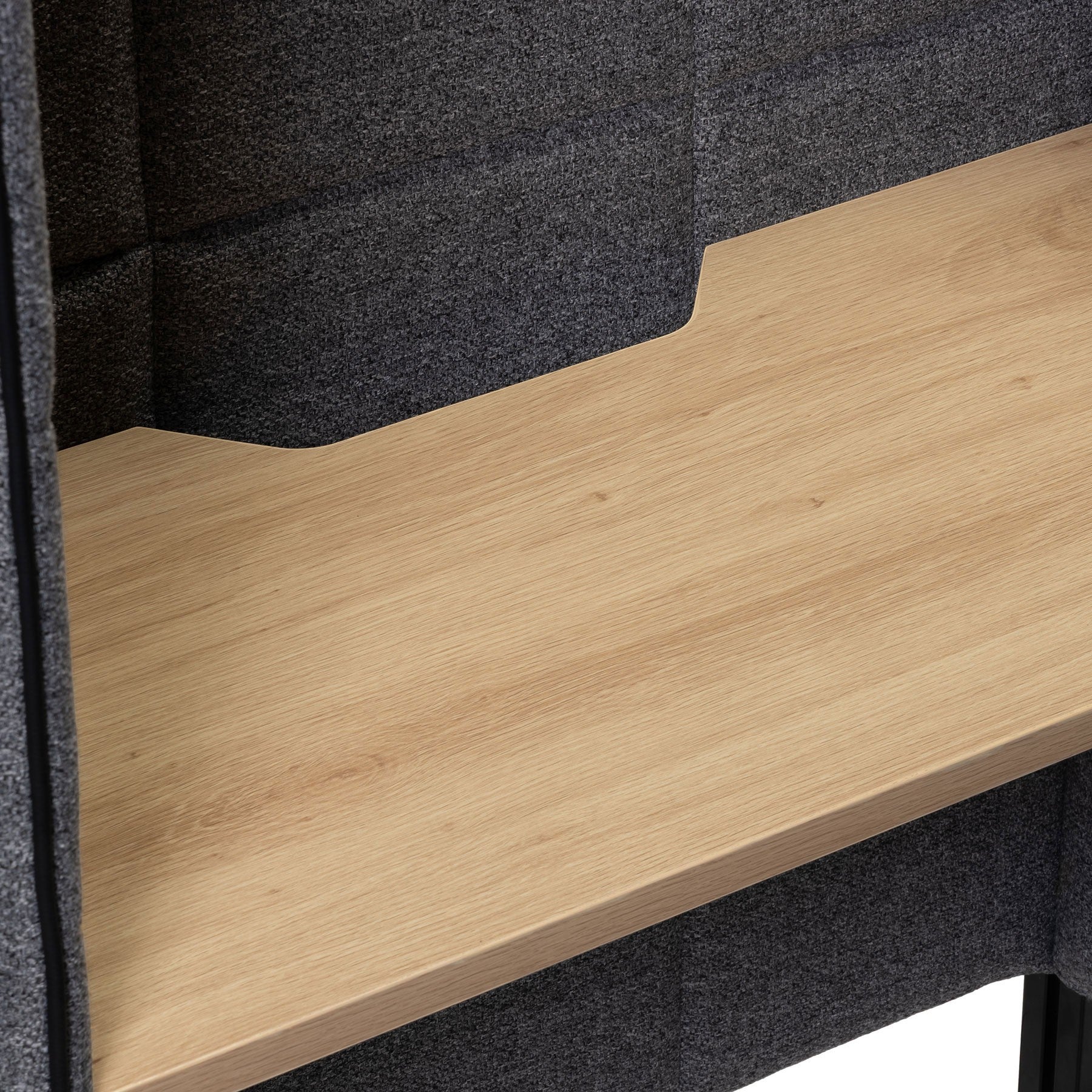 深みのあるトーンは空間を引き締め、ホテルラウンジやミーティングエリアなどのパブリックユースにもふさわしい落ち着きを演出します。どちらの印象も共通して、デスクとしての実用性を重視した設計と、視覚的な快適さを両立しています。