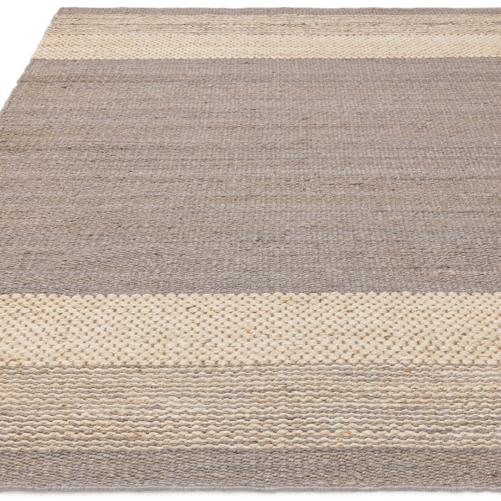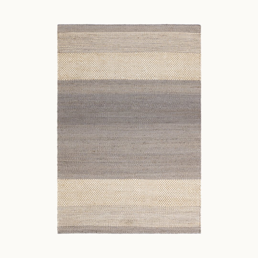 ライトグレーとベージュのコントラストが美しい手織りラグのMirage。どんなインテリアにも調和し洗練された空間に仕上げます。