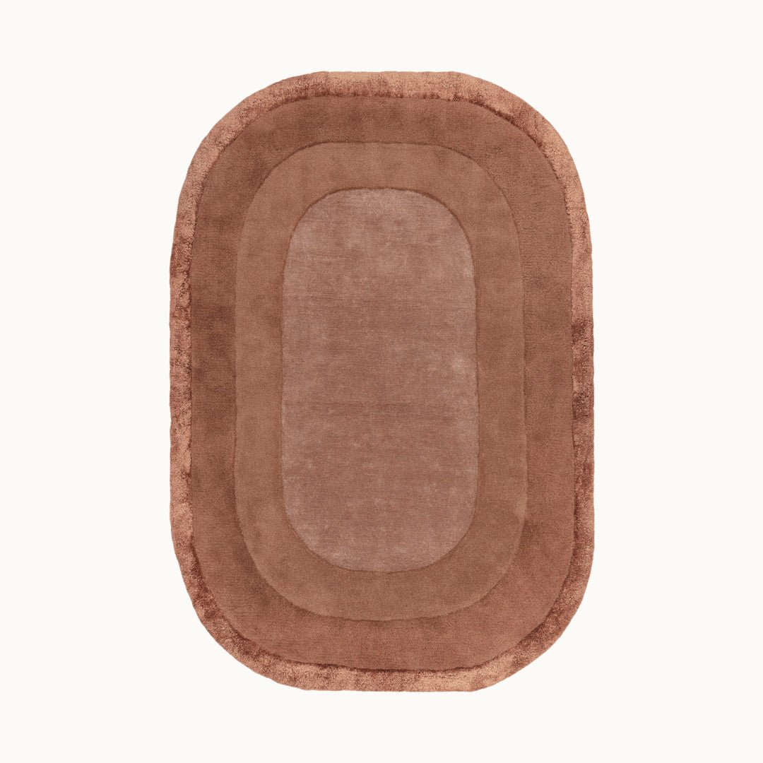 ホットチョコレートのような温かみのあるウォームブラウンが印象的なLavinia。光沢のあるパイルが中心に向かってゆるやかにフェードアウトしていくデザインが特長。