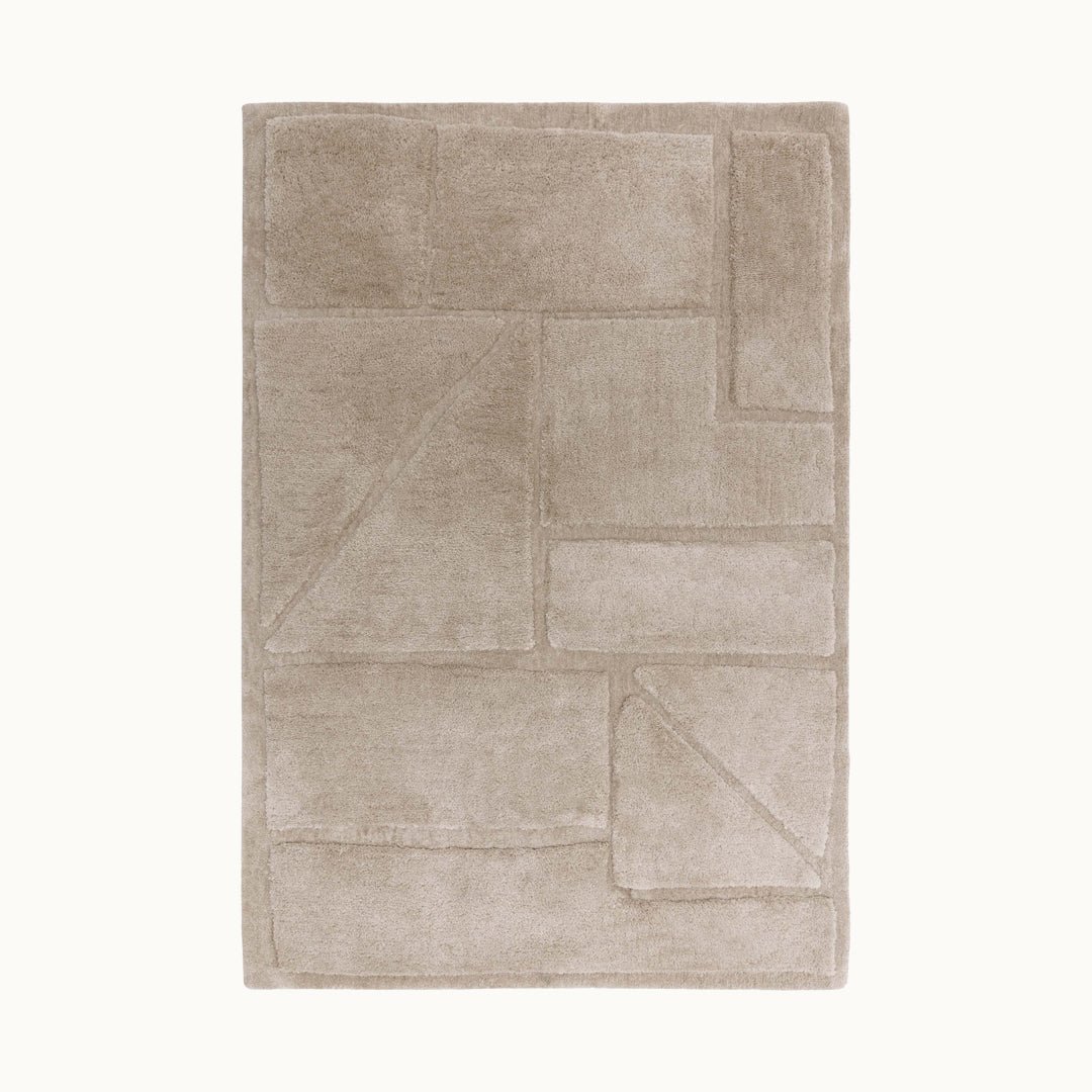 Penelopeは上品なサンドカラーに積み木パズル模様がデザインされたアートラグです。視覚的にインパクトがあり、空間に立体感をもたらします。