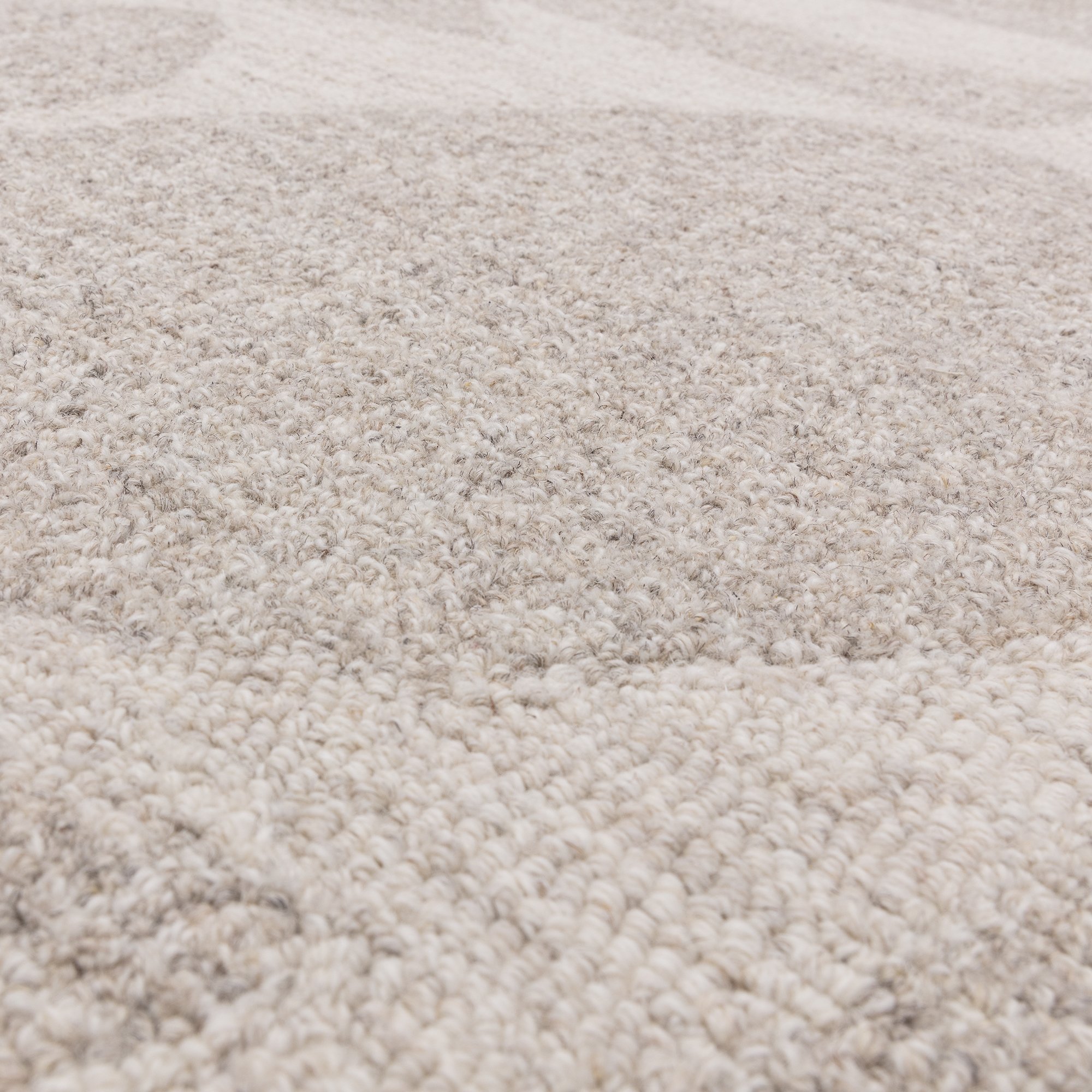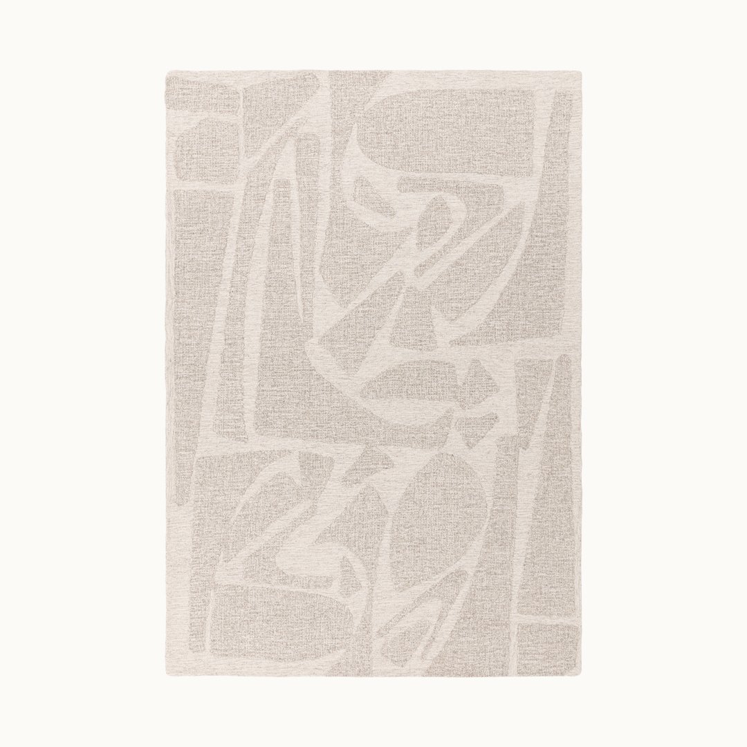 ナチュラルヤーン(原毛)の色合いや風合いを最大限に生かして、やわらかなモダンアートラグを織り上げました。