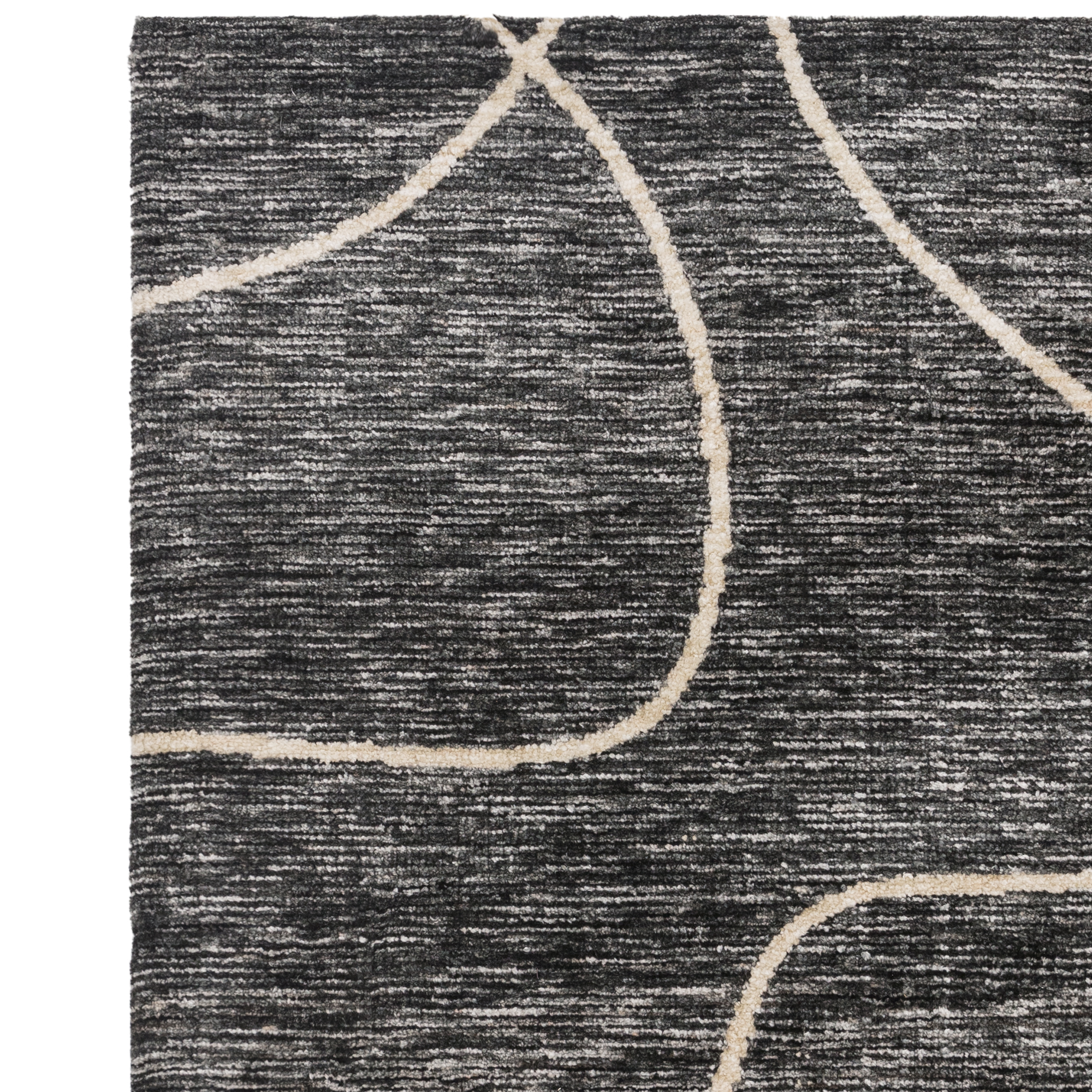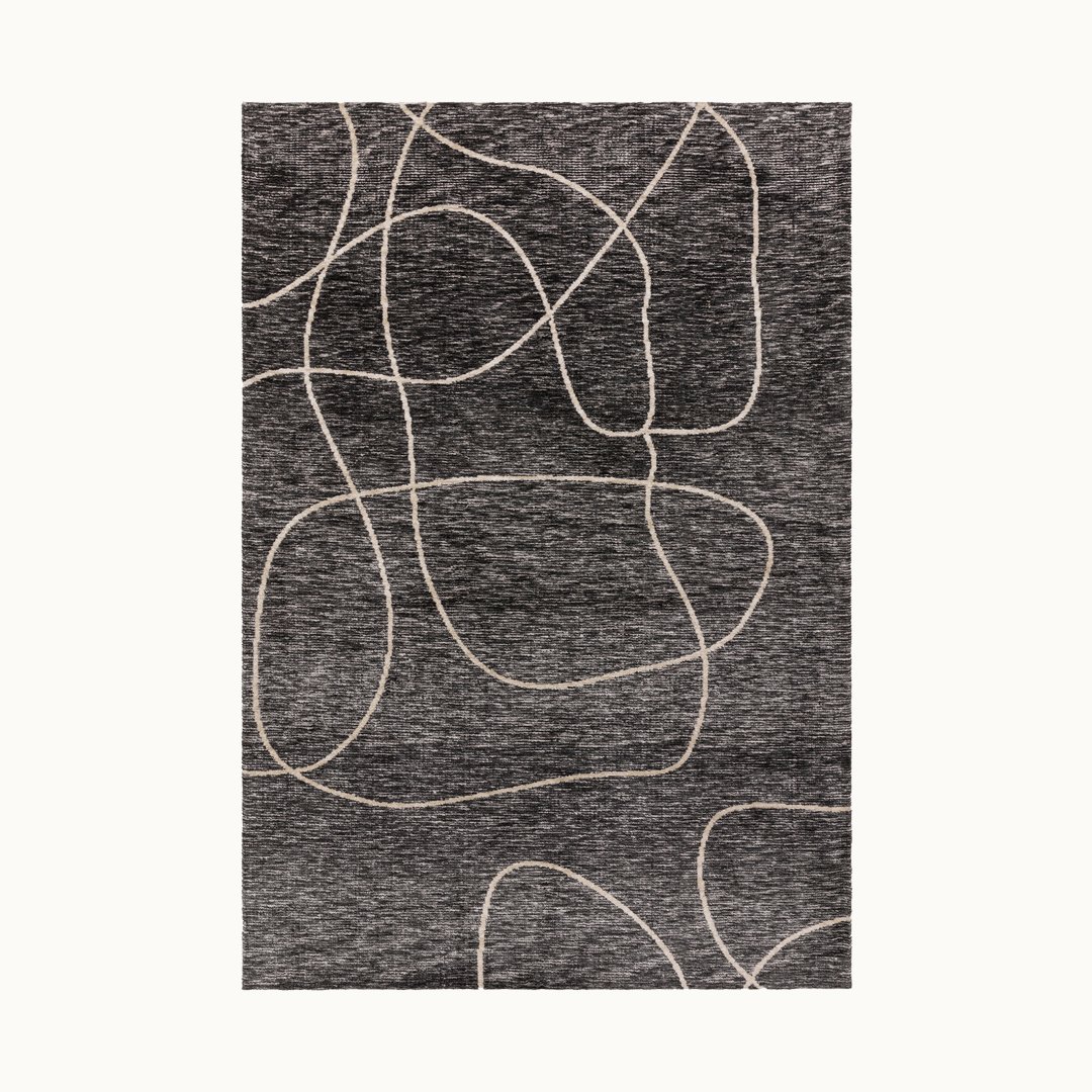 美しくかすれたチャコール地ラグに描かれた、自由奔放なラインがオシャレなアートラグ Tage。