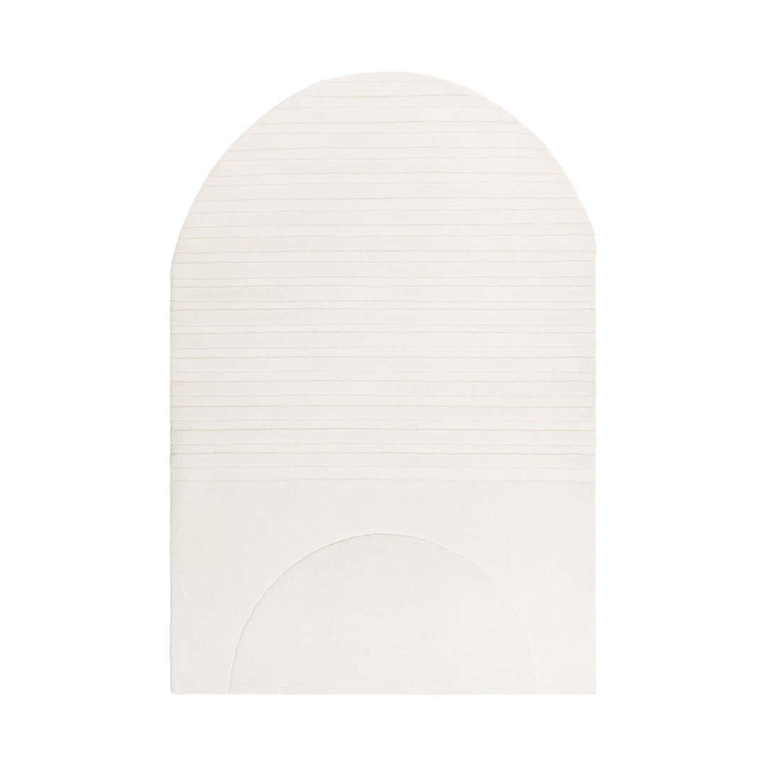 160x230cmサイズのループパイルとカットパイルを知ることで、繊細なデザインパターンを表現した、ドーム型のフォルムがユニークな、RUGHAUSのニュージーランド産ウール100%ハンドタフトのホワイトカラーのアートラグ
