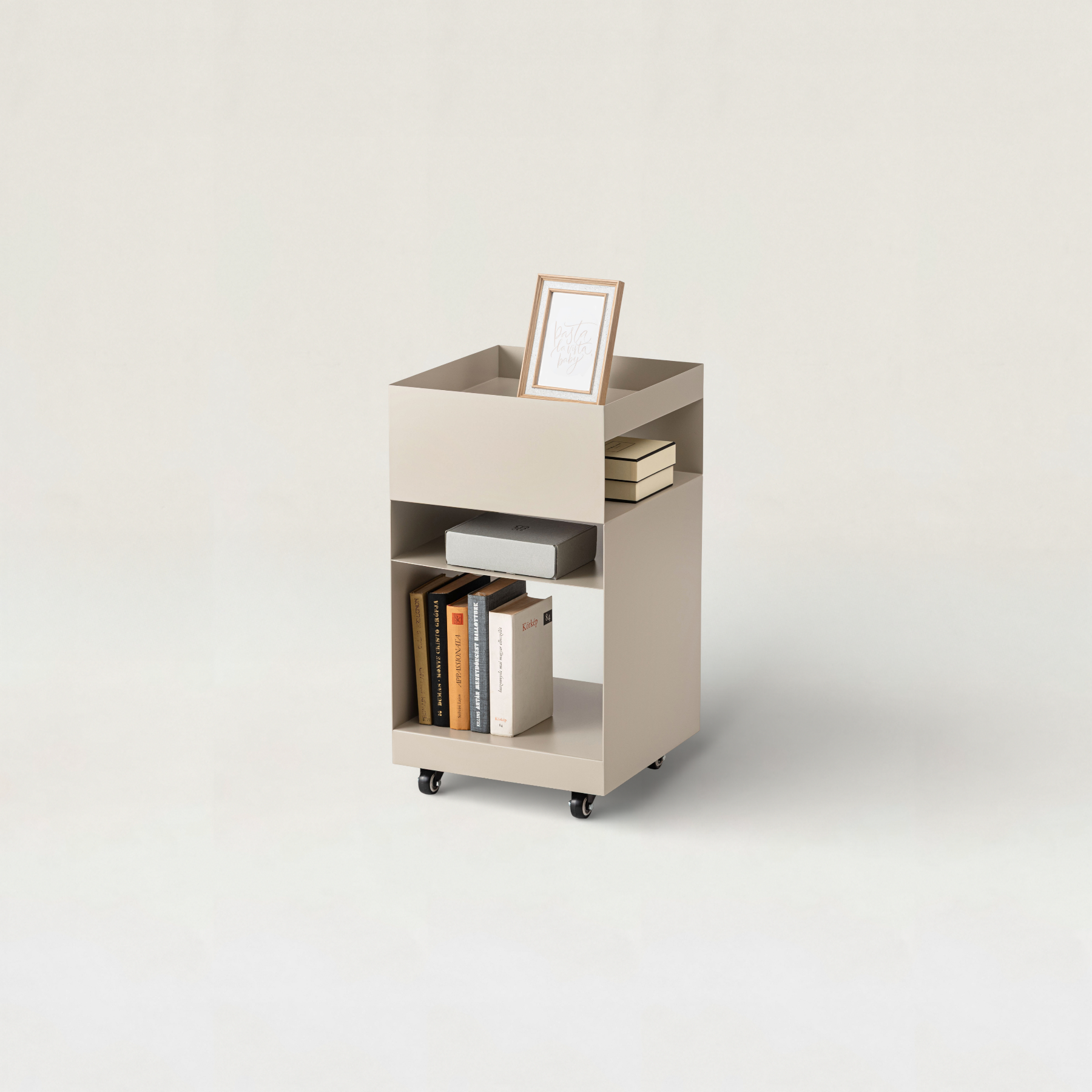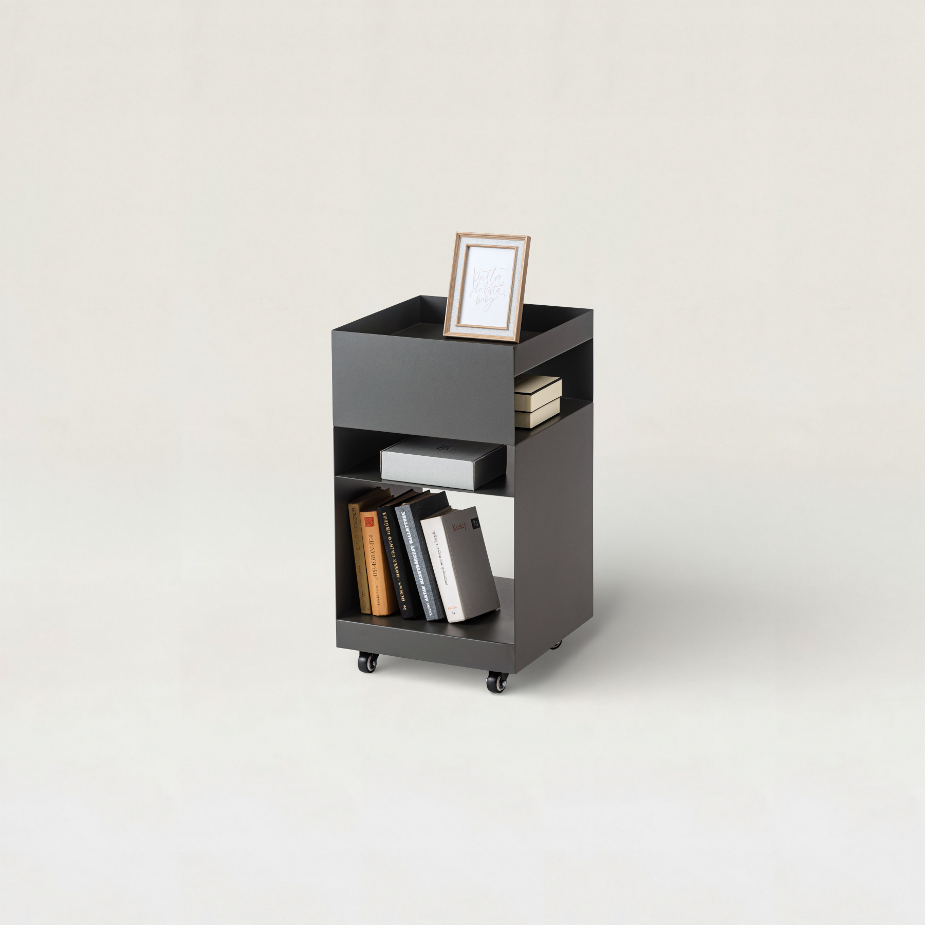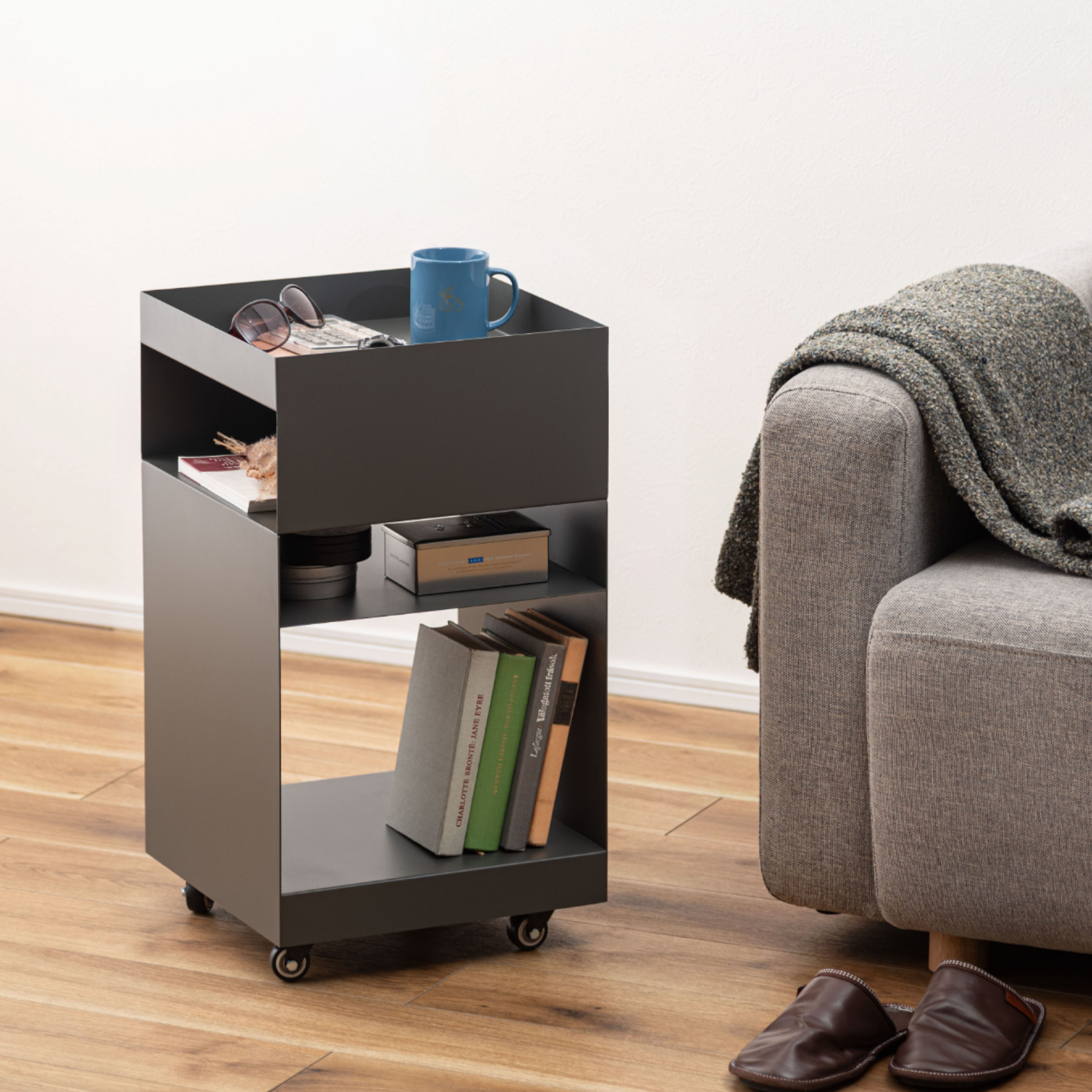 キャスター付きで移動もスムーズ。リビングのサイドテーブルとしてはもちろん、デスクサイドやキッチンワゴンとしても活躍します。