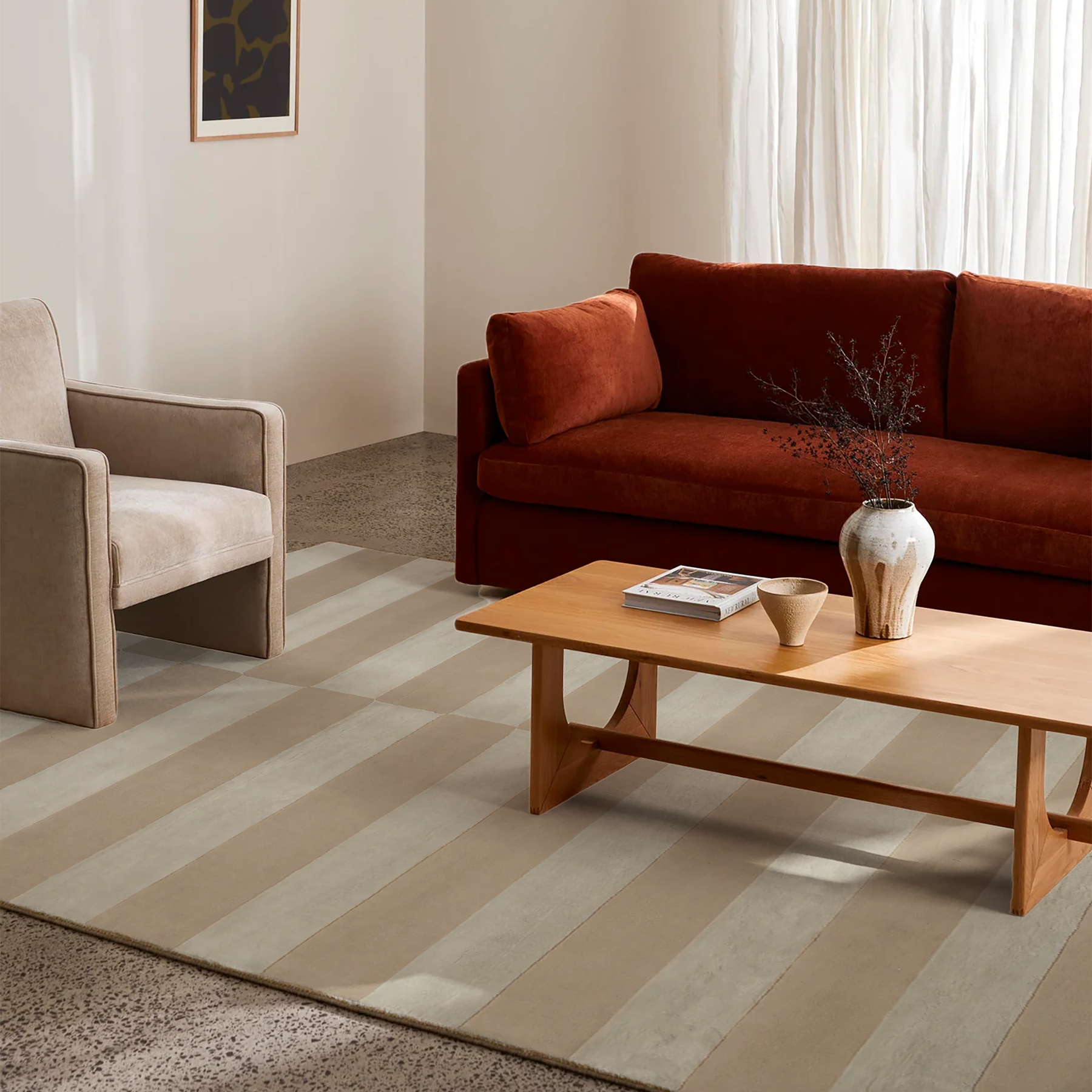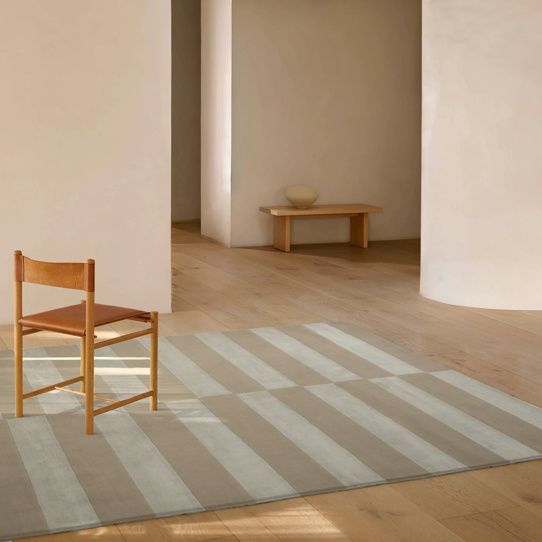 さりげない色調のグラデーションが空間に奥行きを生み出し、ブロック模様がモダンな印象のベーシックラグNilsan。