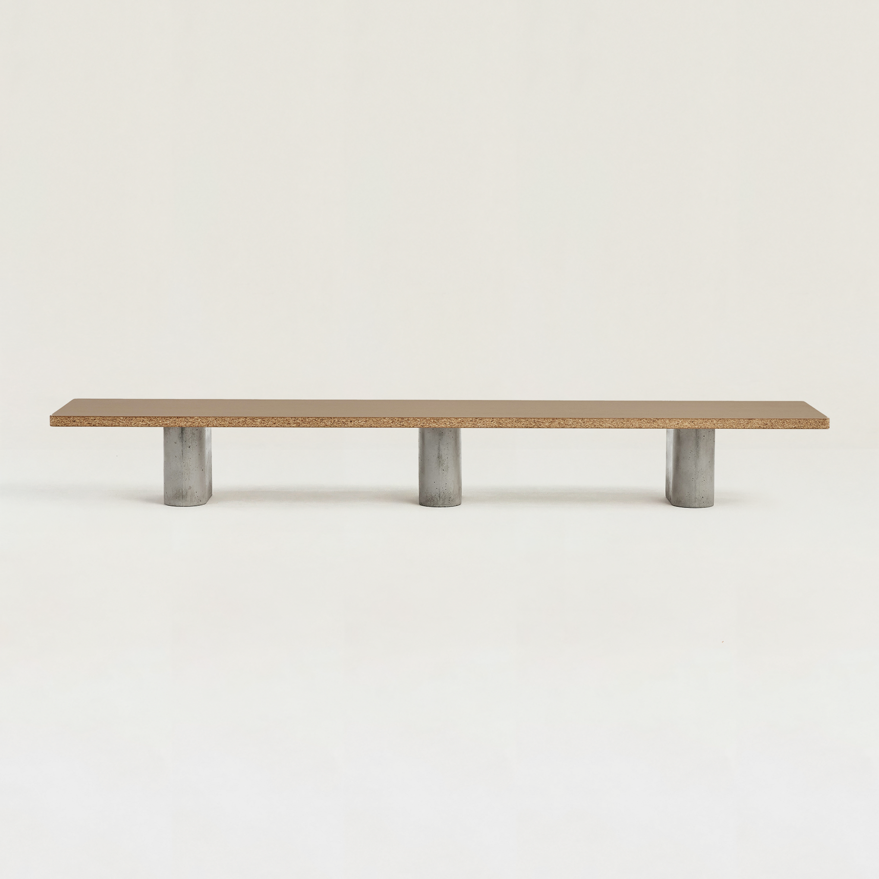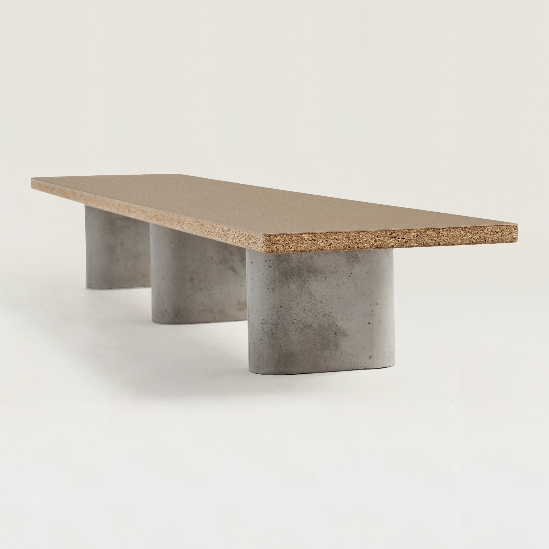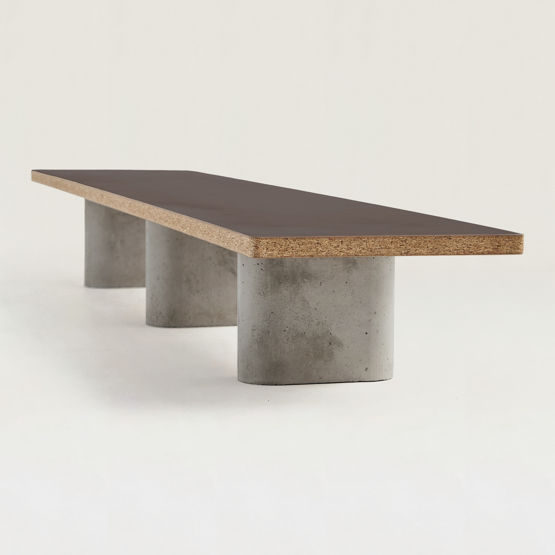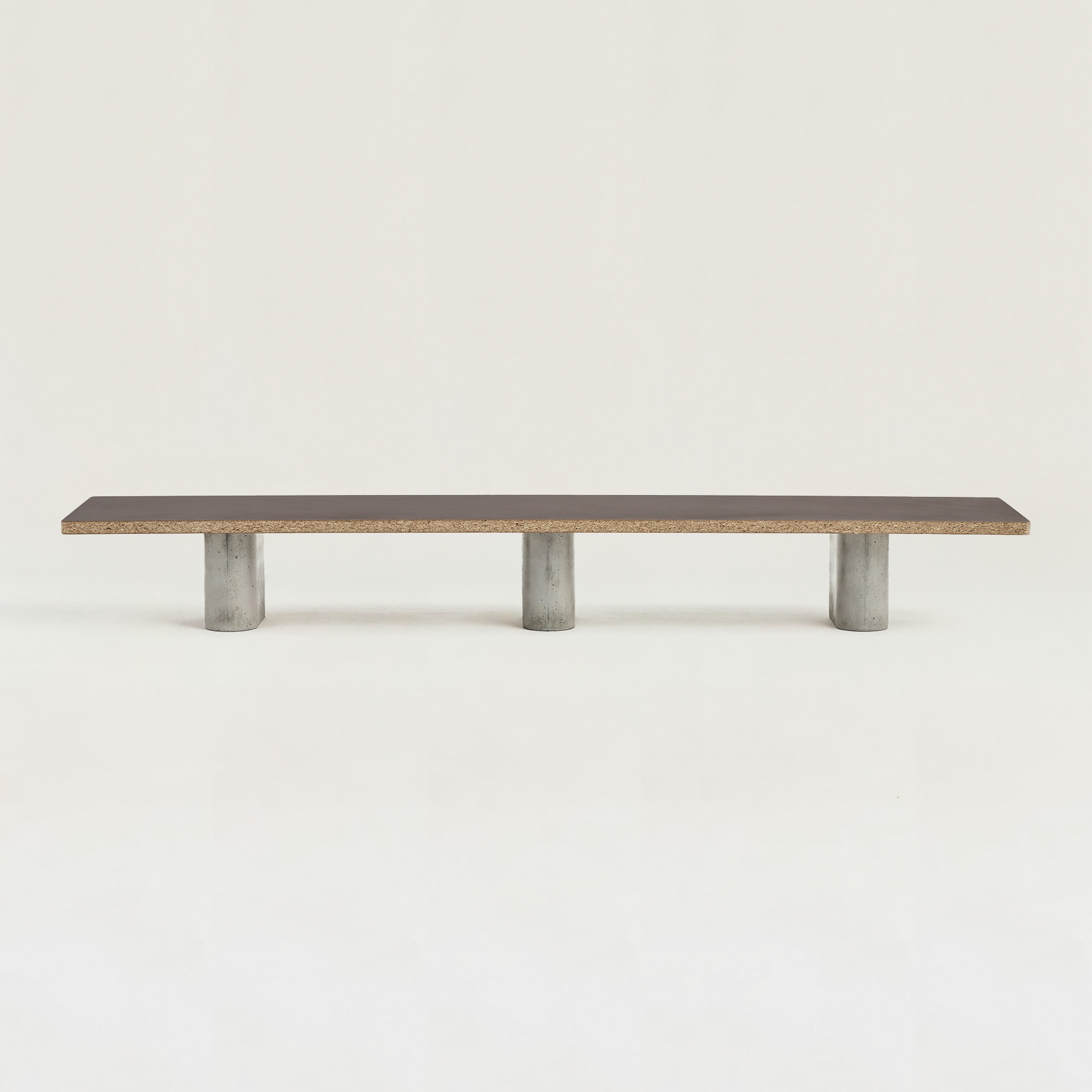 1つの天板に対して、3本のコンクリート脚が安定感をもたらし、すっきりと空間に馴染みます。