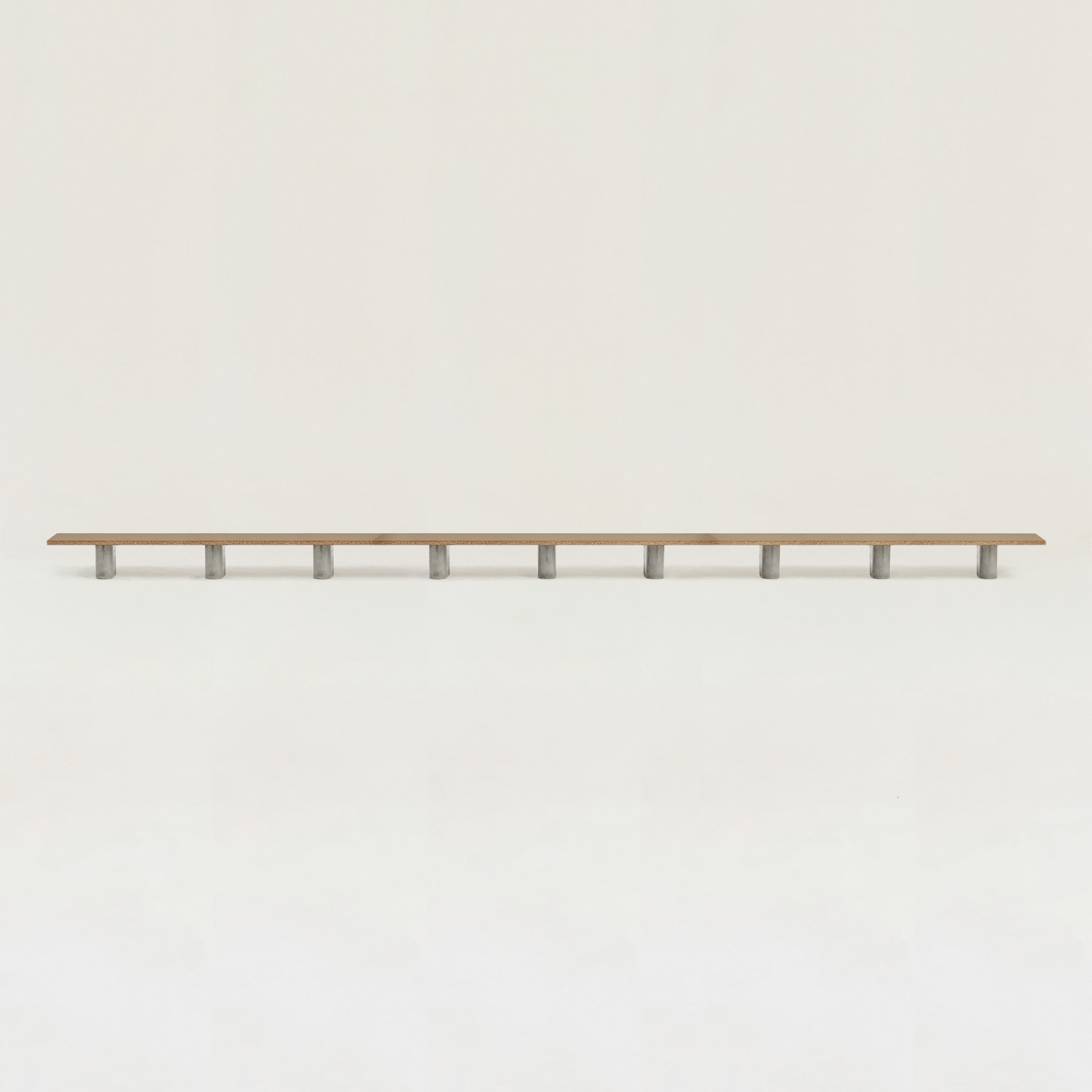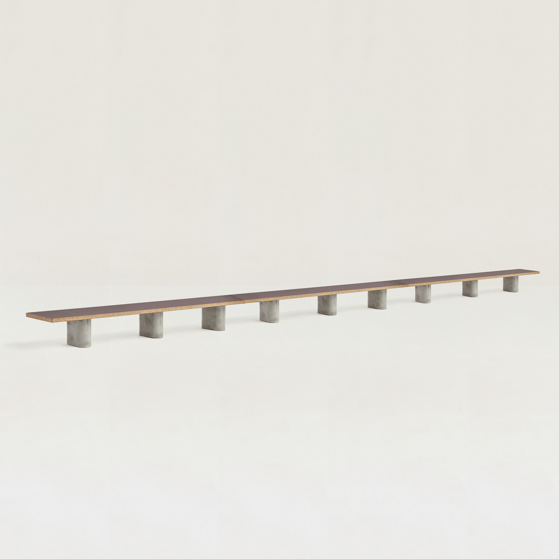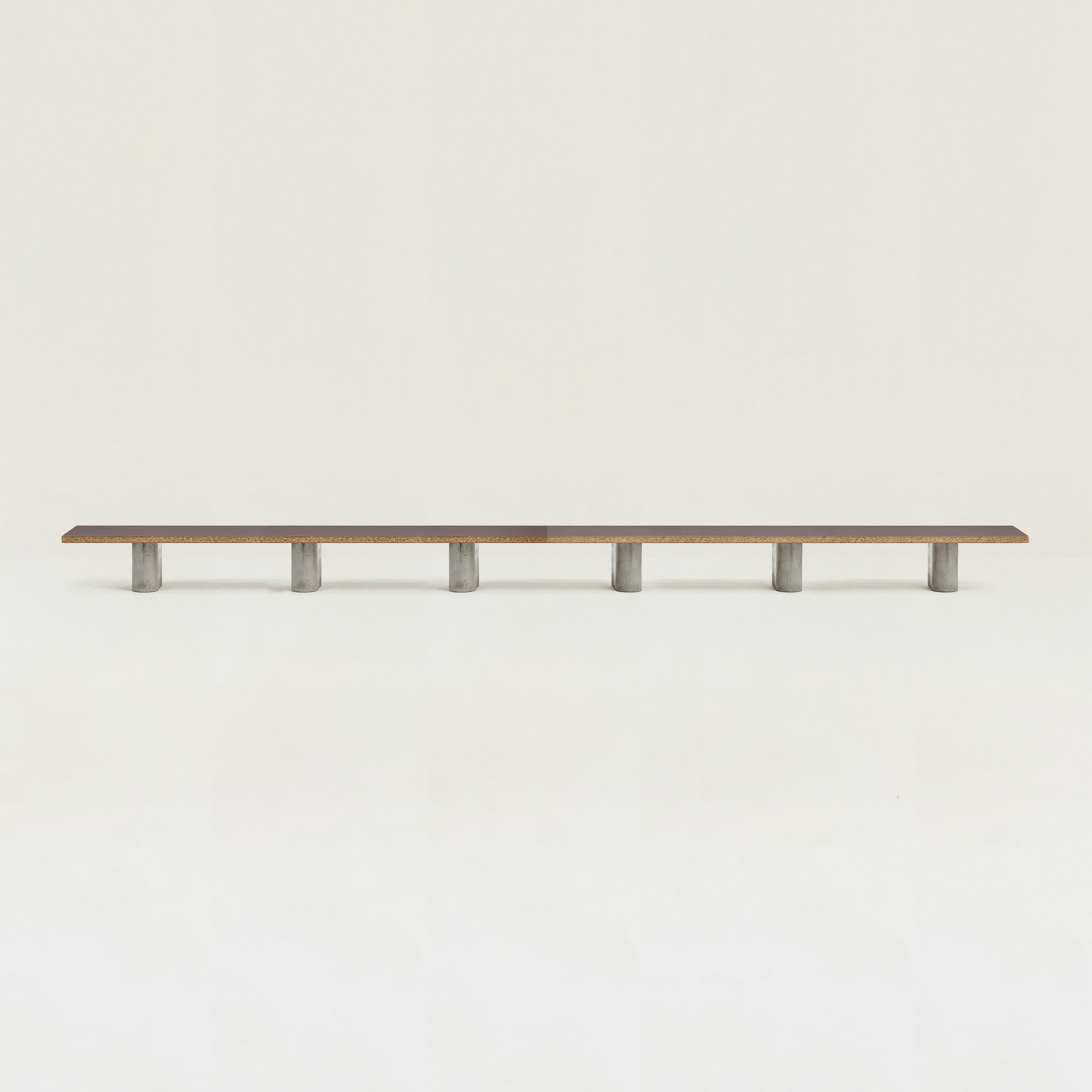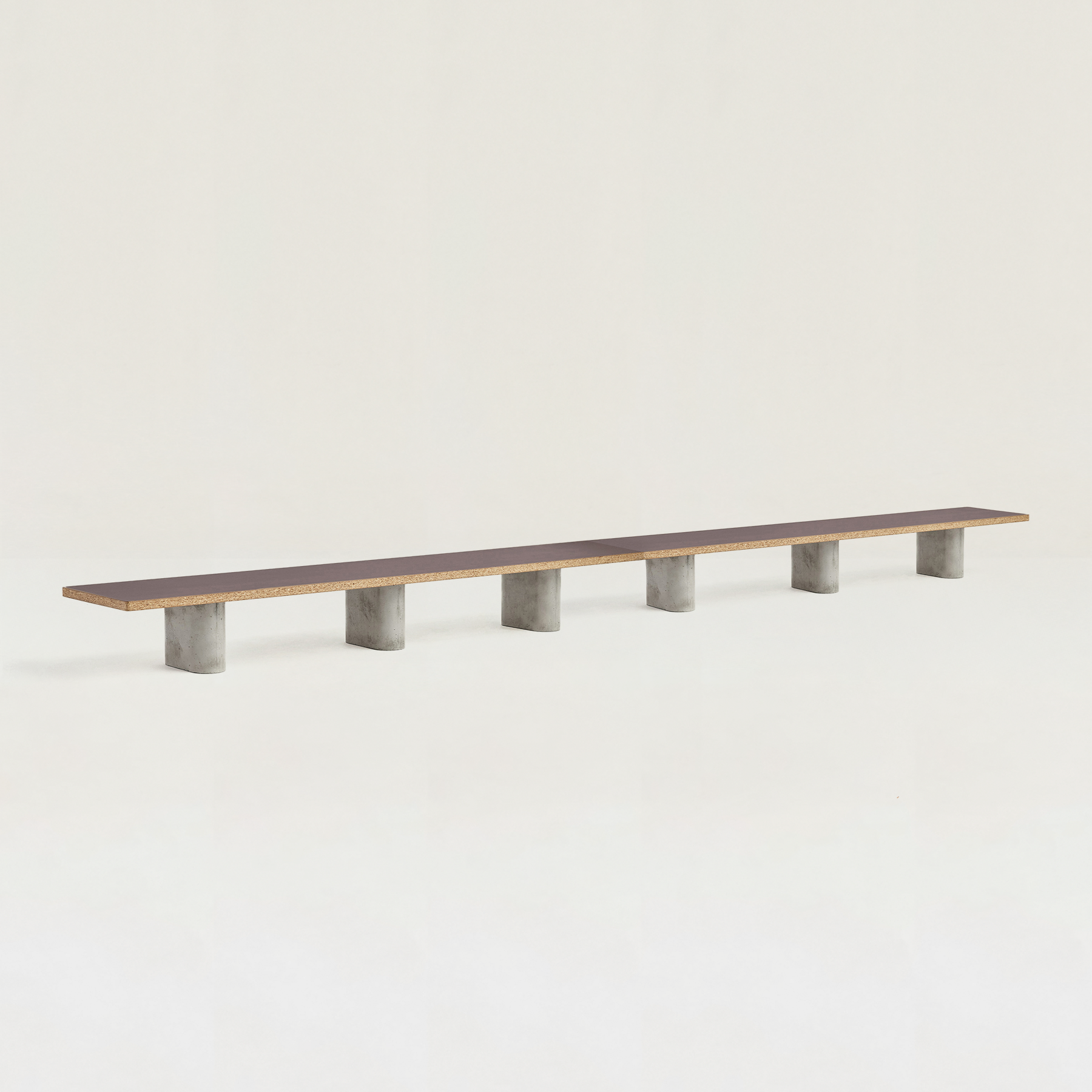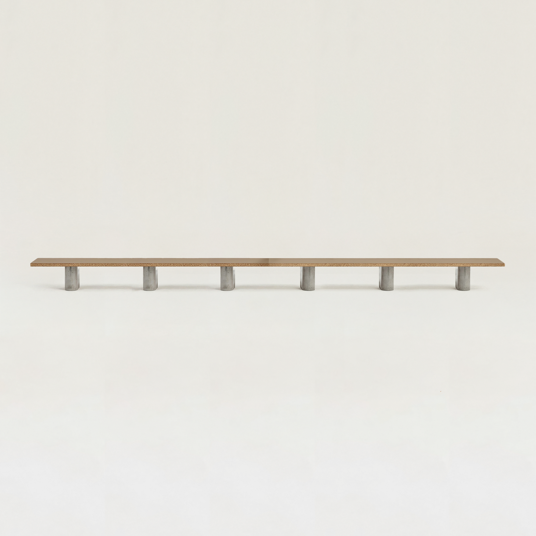 1つの天板に対して、3本のコンクリート脚が安定感をもたらし、すっきりと空間に馴染みます。