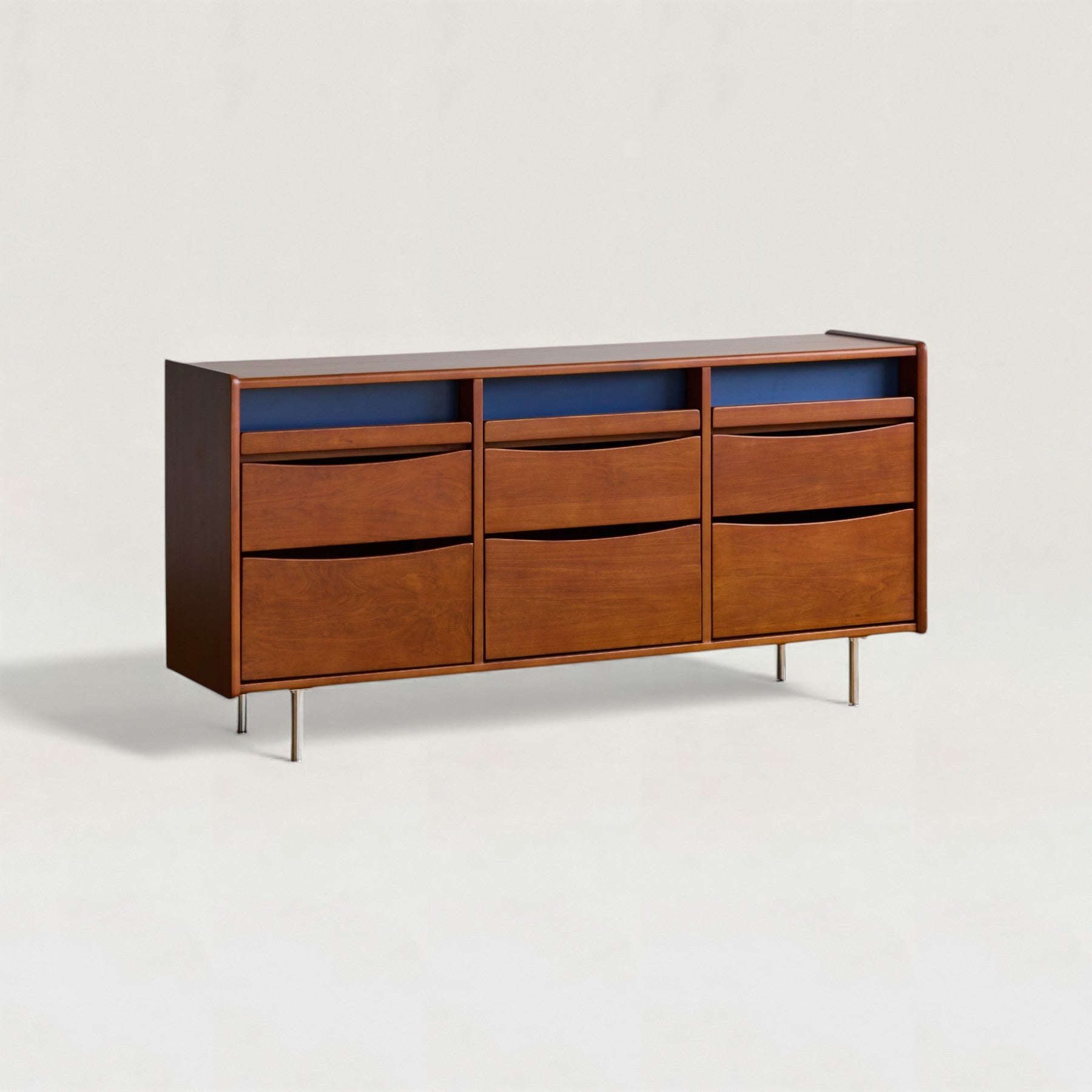 引き出しのやさしいカーブが手に馴染み、収納家具でありながら空間に軽やかさを添える佇まいです。