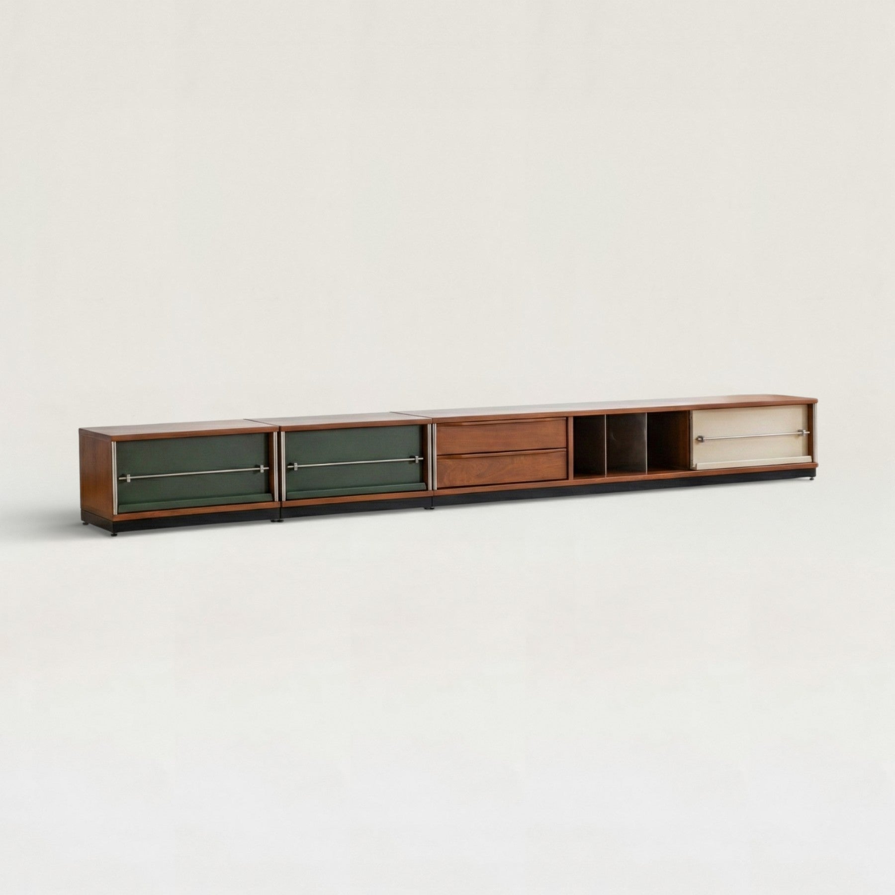 キャビネットは単体・可動式仕様となり、150cm・180cmサイズのコンソールと組み合わせて使用するモジュールです。