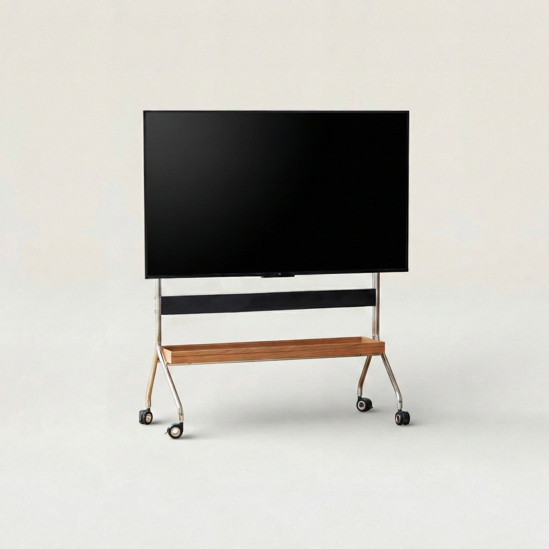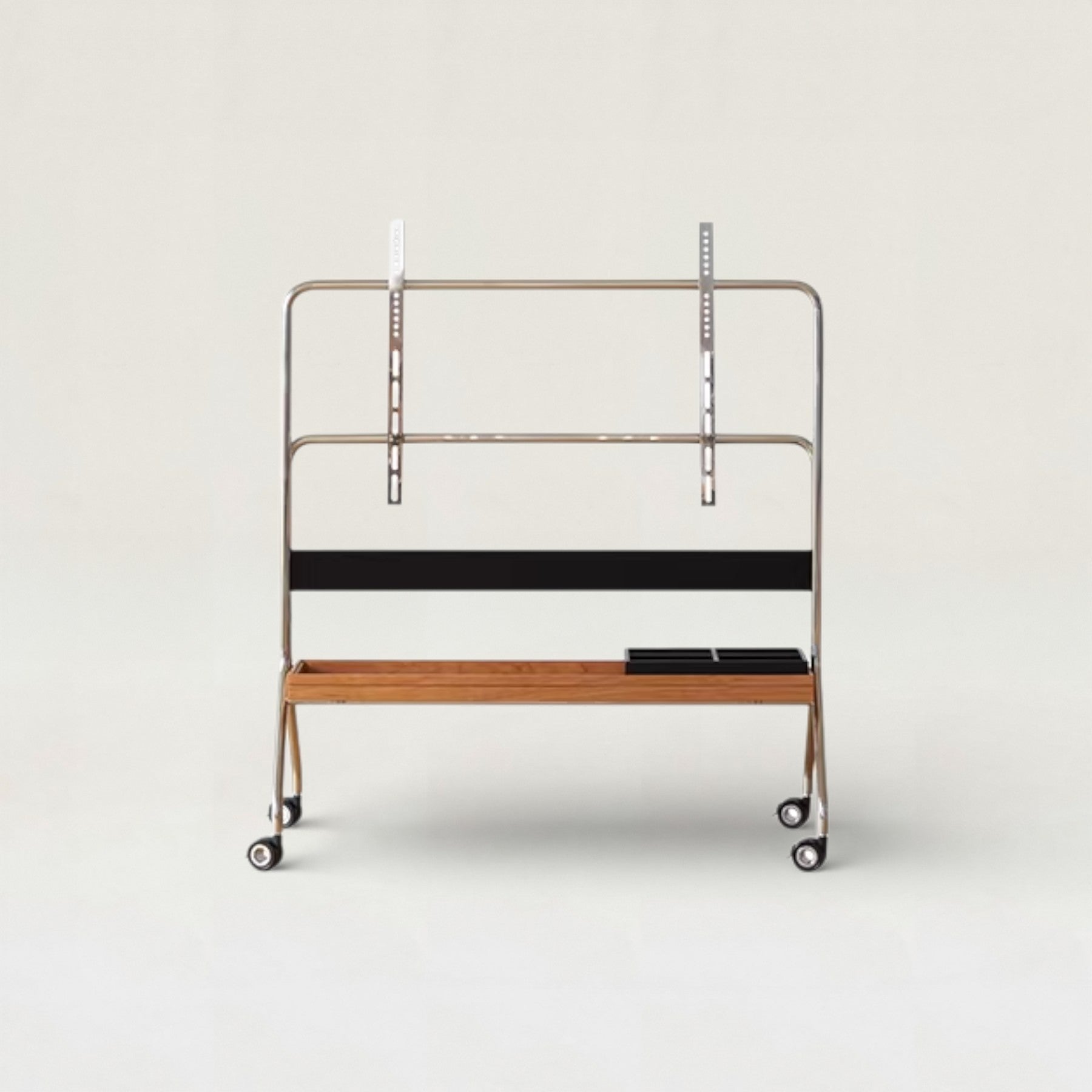 ウッドの棚板と細身のメタルフレームを組み合わせた構成のシンプルなテレビラック。