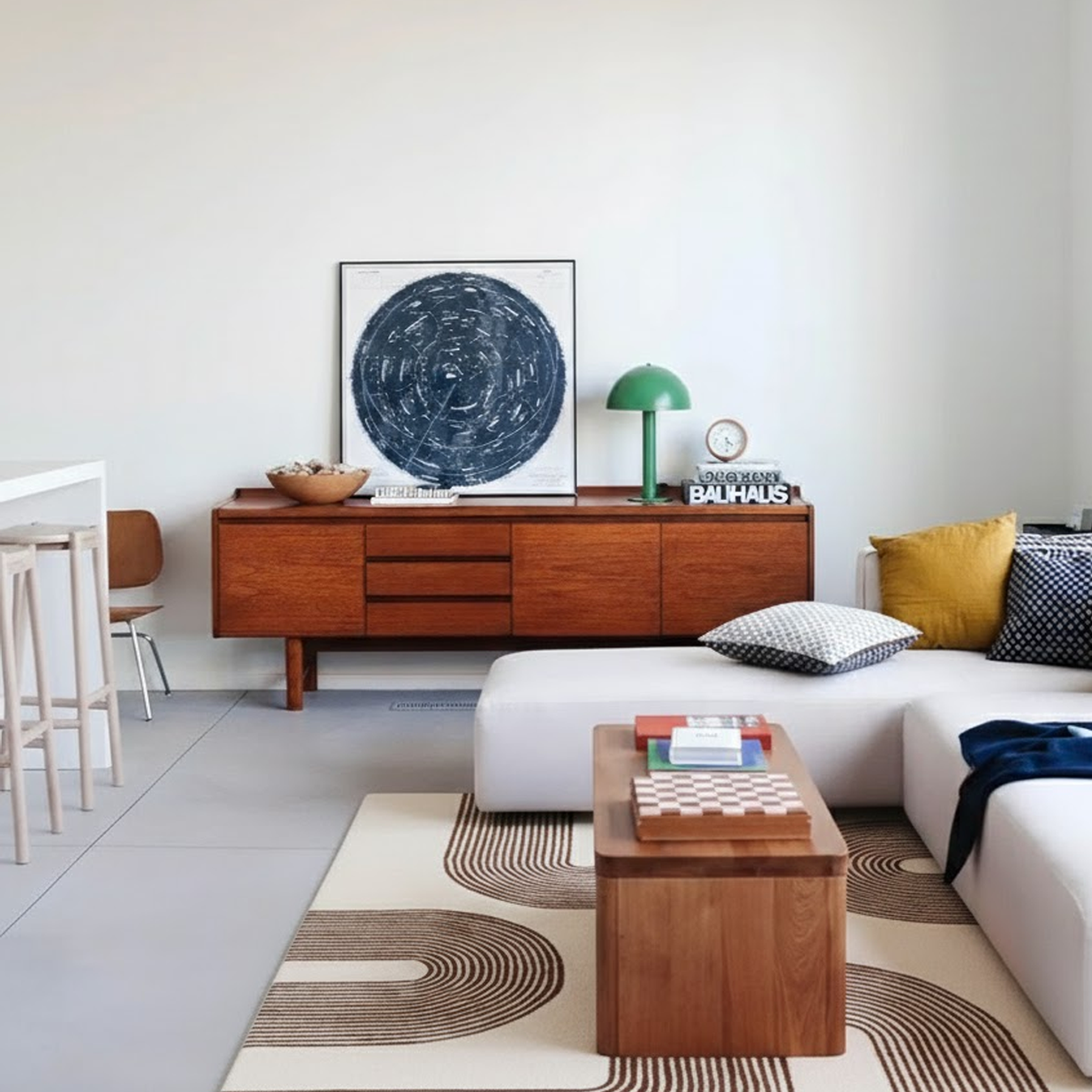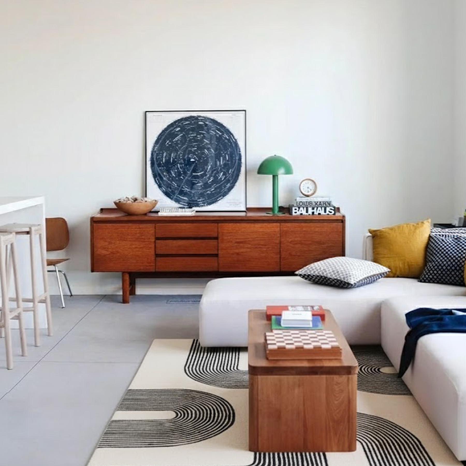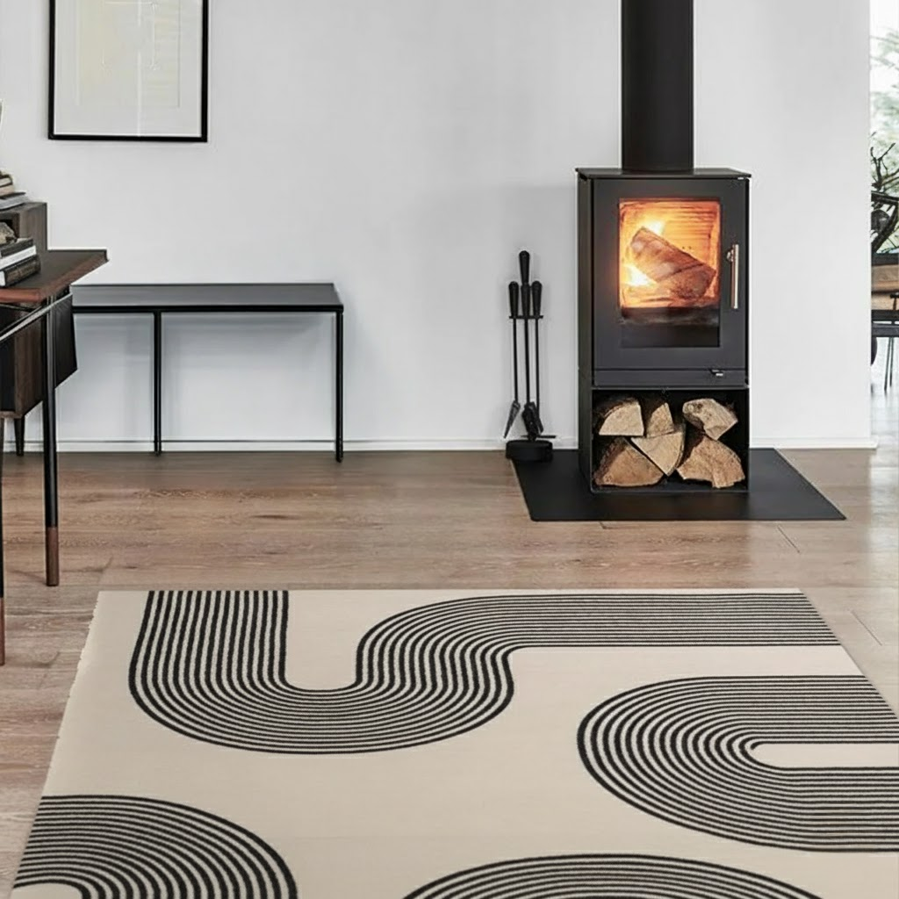 Elioはモダンスタイルのお部屋にぴったりです。ラグの色味に合わせて家具を選ぶことで、ラグのデザインが一層際立ち、空間に洗練された印象を与えます。