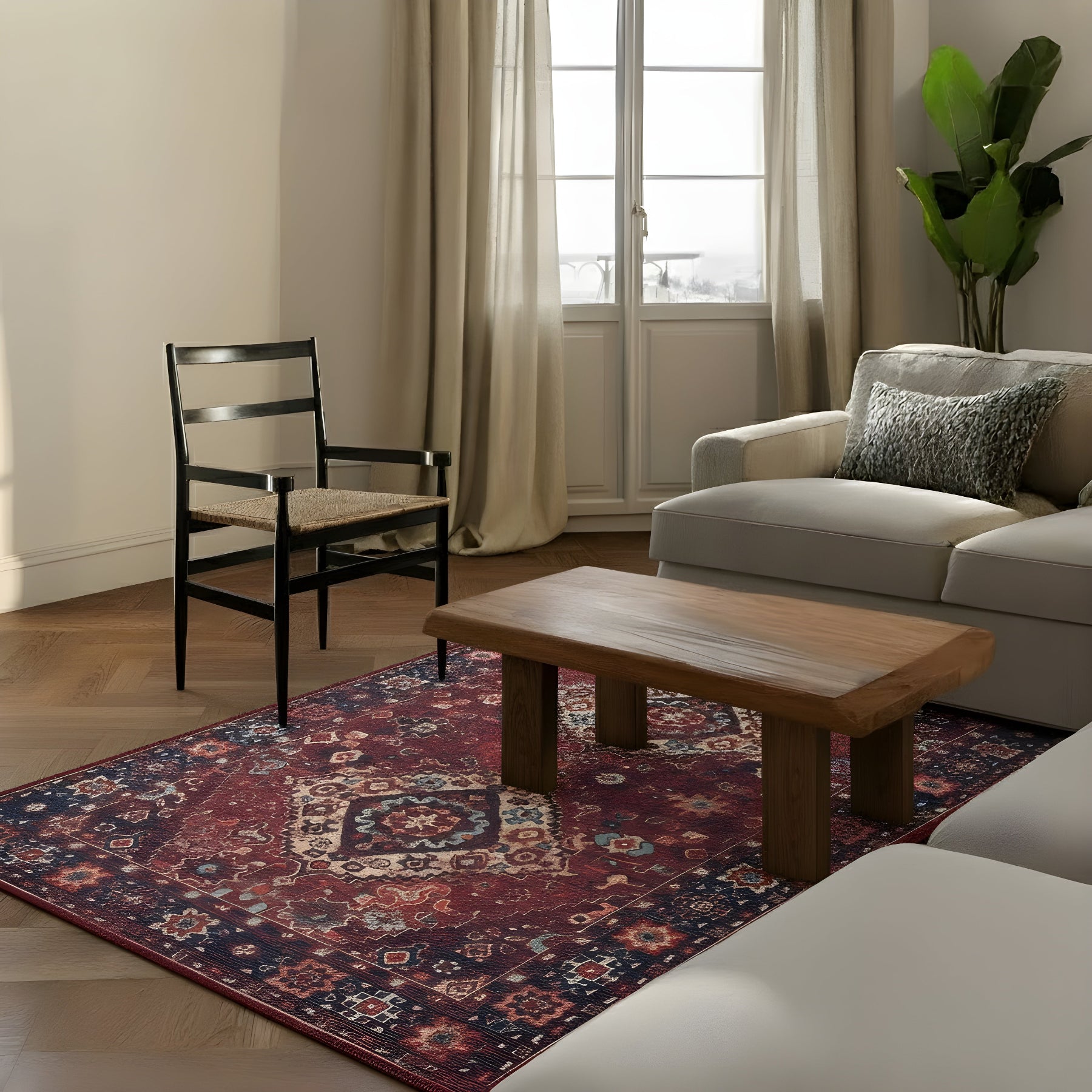 華やかなバーガンディー × ネイビーブルーに、凛としたダブルメダリオンが映えるヴィンテージスタイルラグ Agatha。