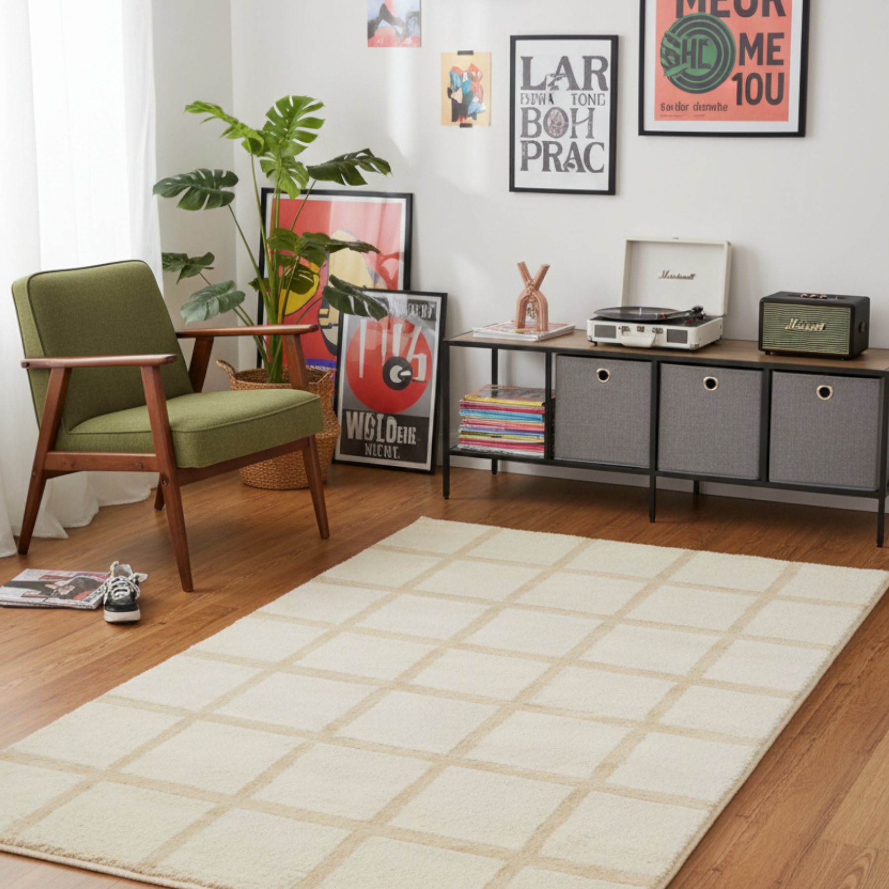 デザインは、チェックパターンに沿って凹凸が施されたツートーン仕様。クラシックな印象と構造的な立体感が融合し、空間に知的なニュアンスを与えます。
