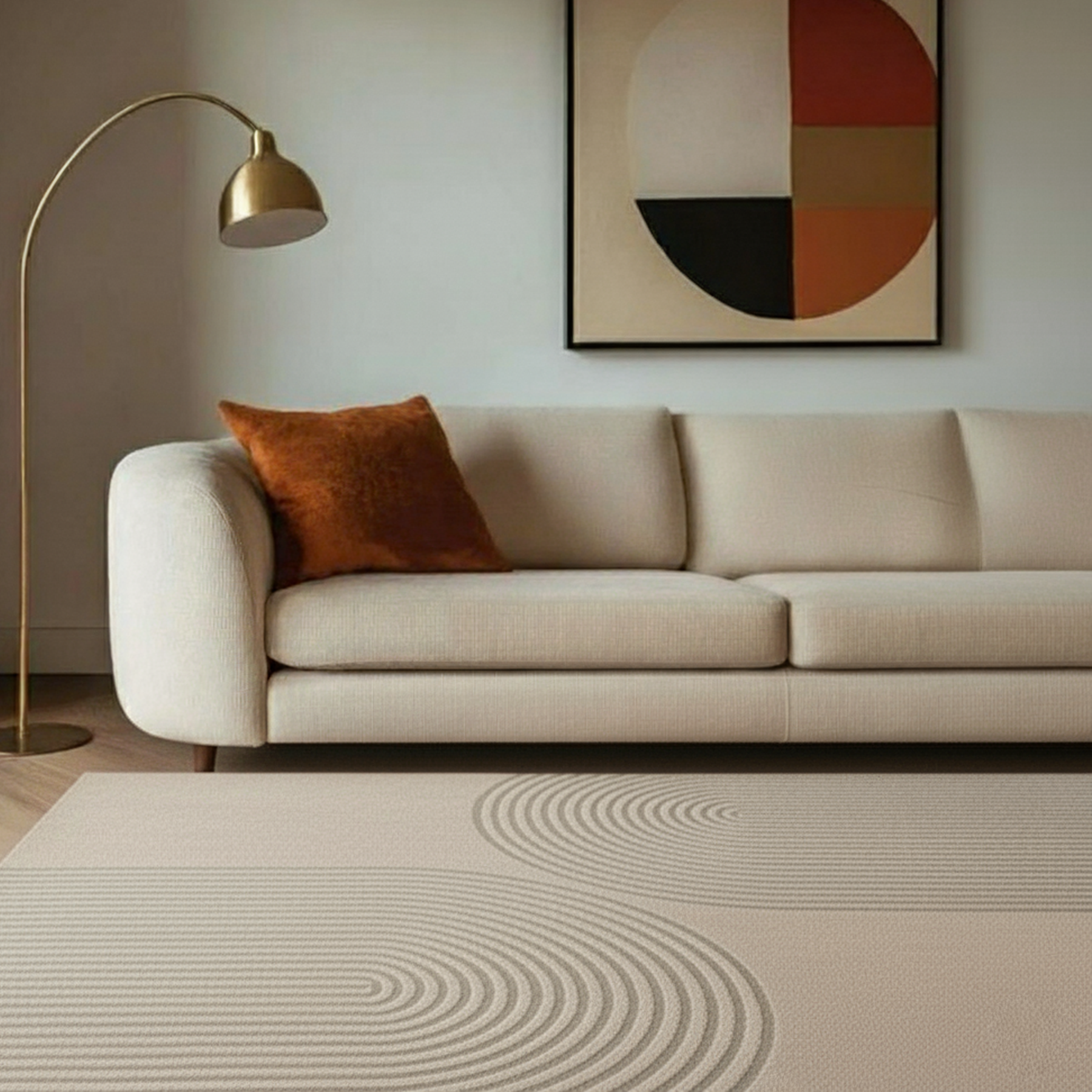 落ち着いたトーンとさりげない立体感は、北欧インテリアやモダンな家具との相性も良好です。シンプルながらも個性を感じさせるデザインで、暮らしに上品なアクセントを添えてくれる一枚です。
