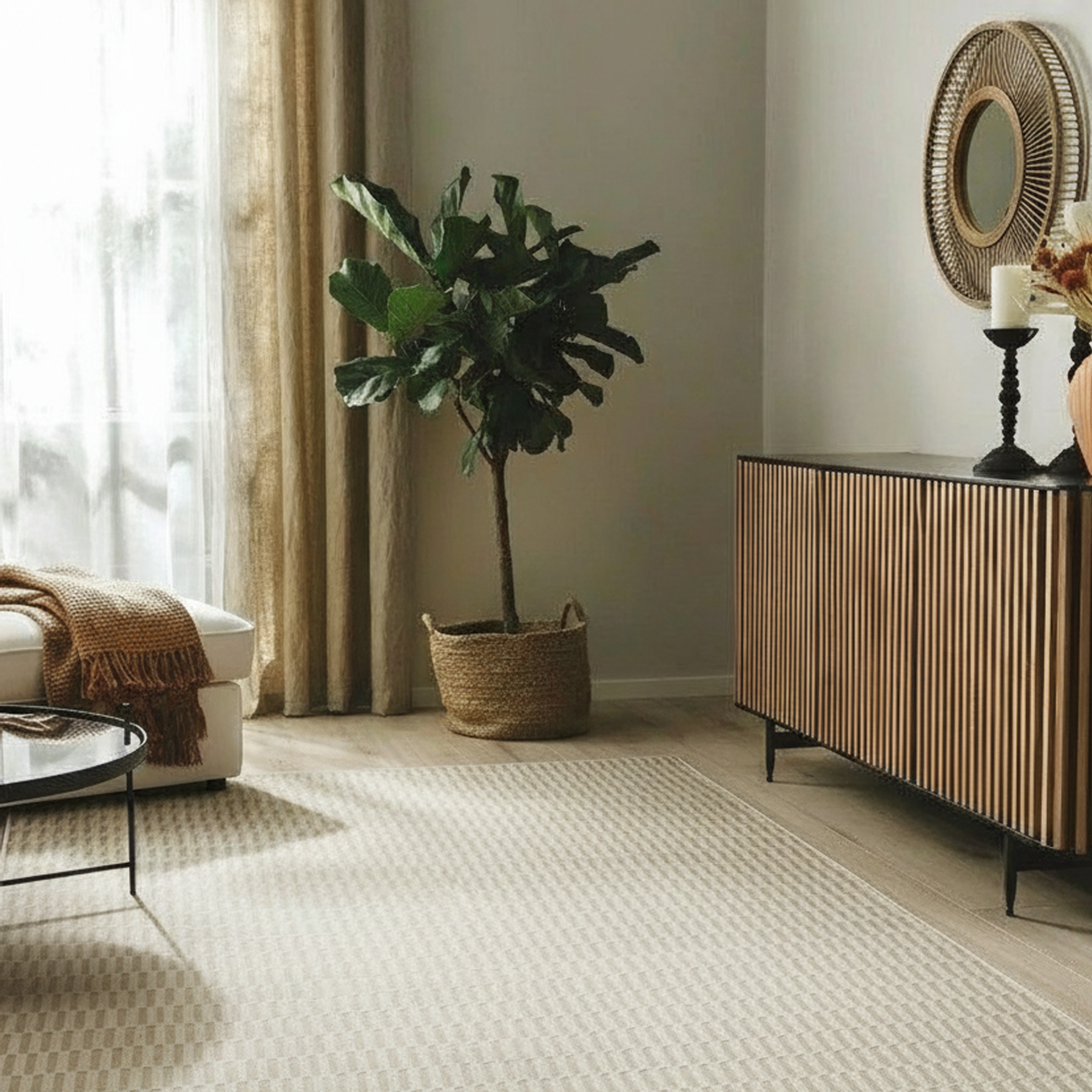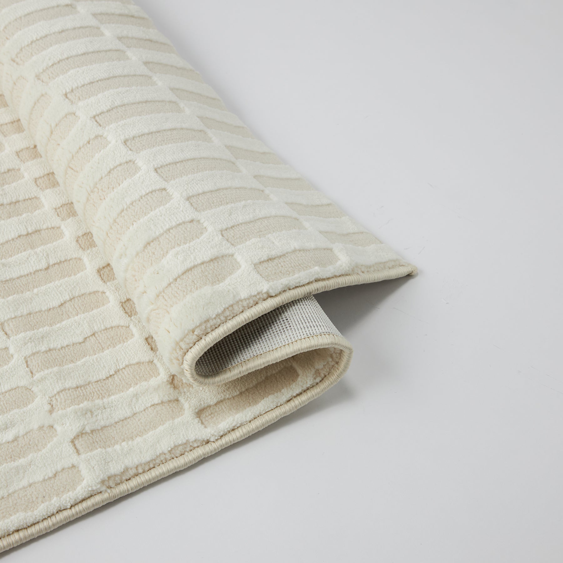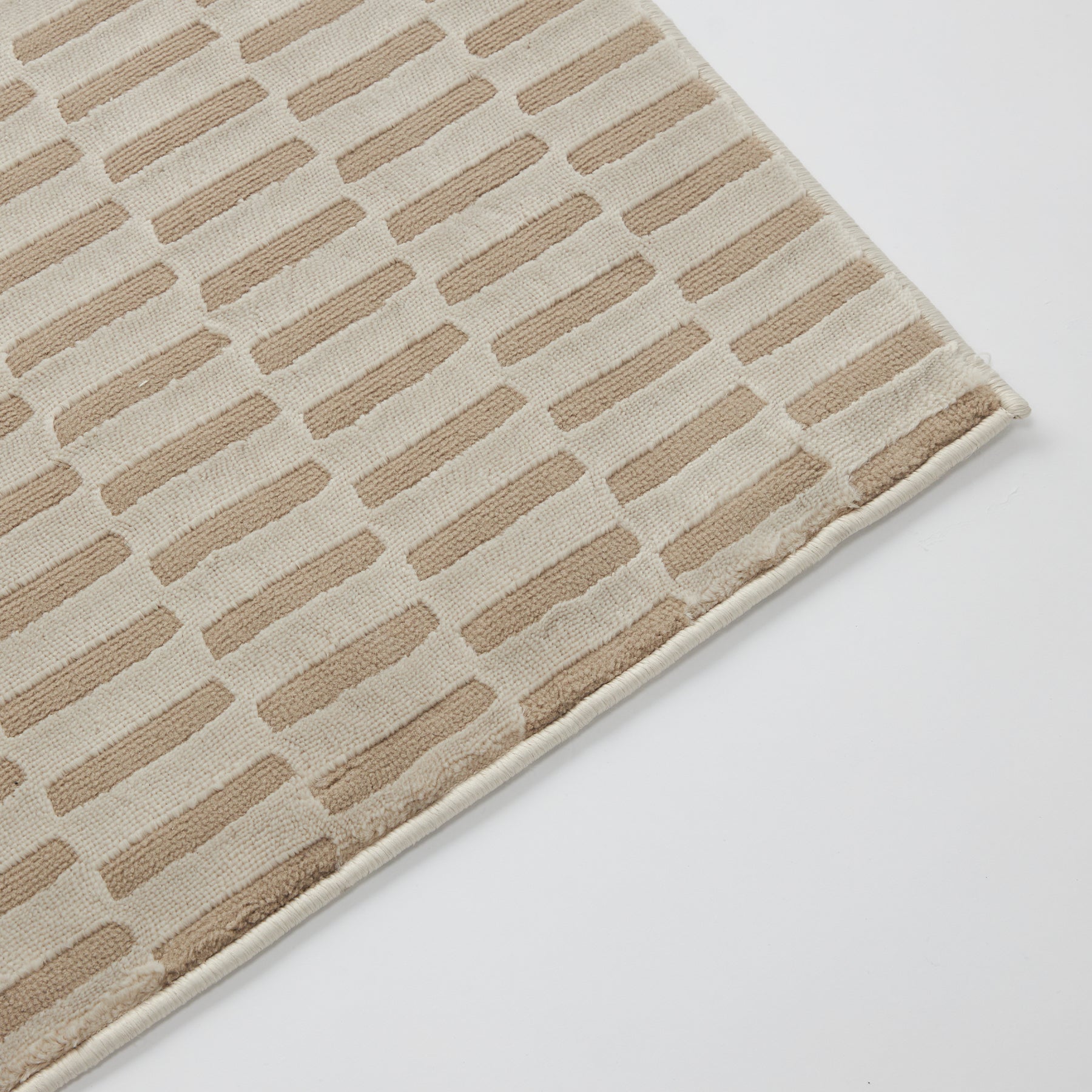 細やかなオーバル模様が連なり、柔らかなリズムを描く Tove マルチサイズ ラグ。規則的でありながらやさしい表情が、シンプルな空間に奥行きを与え、落ち着いた雰囲気を演出します。素材はポリエステル100%で、パイル織りによるなめらかな肌触りが特徴です。100%ポリエステル製で丈夫で汚れに強く、洗濯機丸洗いOK。床暖房にも対応しています。日常に安心して取り入れられる機能性と、さらりとしたやわらかな質感が魅力です。ナチュラルなトーンと繊細なパターンは、北欧テイストやモダンインテリアと相性抜群。暮らしにさりげない彩りを加え、上品で落ち着いた空間をつくり出してくれるラグです。