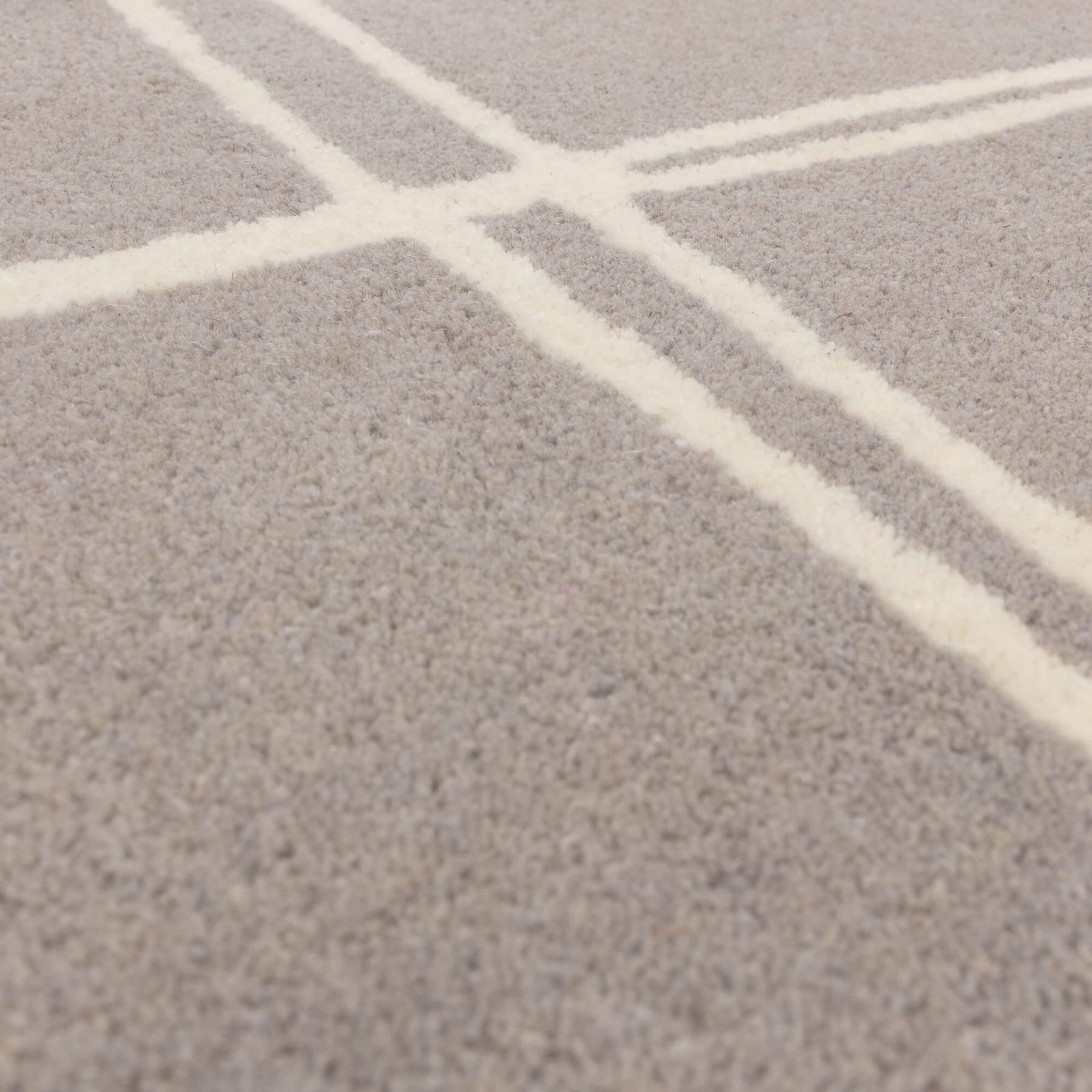 160x230cmサイズの、グレー×クリーム色のラフに描かれた格子パターンが可愛らしい、シンプルながらもセンスがきらりと光る、天然素材ウール100%製RUGHAUSのハンドタフトラグ Ane