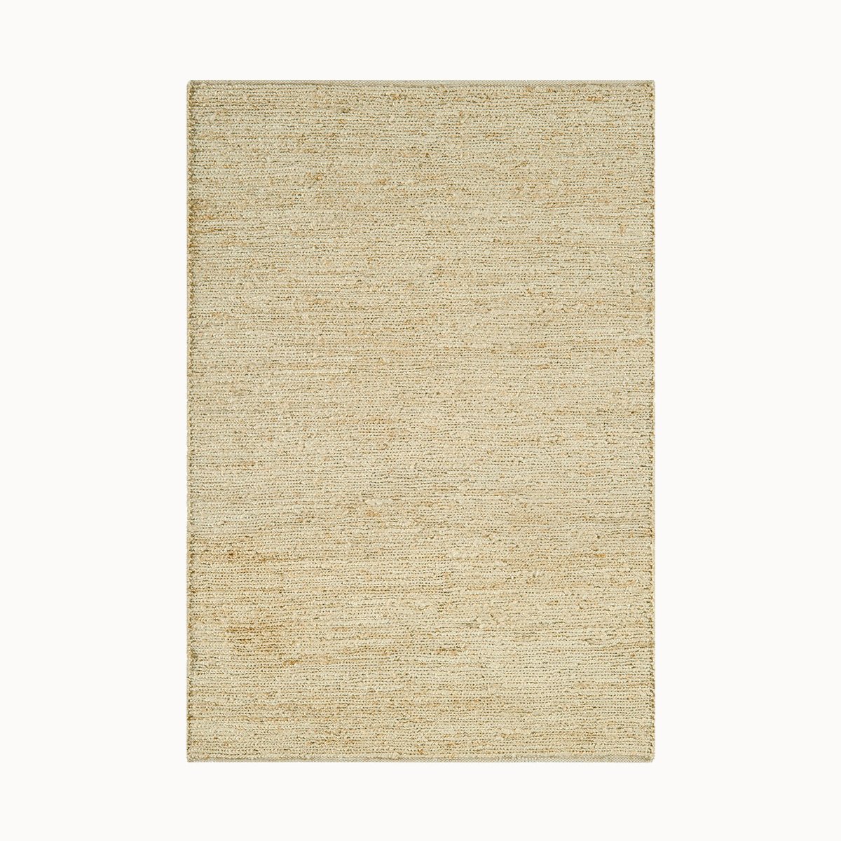 160x230cmサイズの、アイボリー・ベージュ色のジュートの素朴な風合いとナチュラル感が素敵な、サステナブルな天然素材ジュート(麻)100%製RUGHAUSの手織りハンドメイドラグ Alf