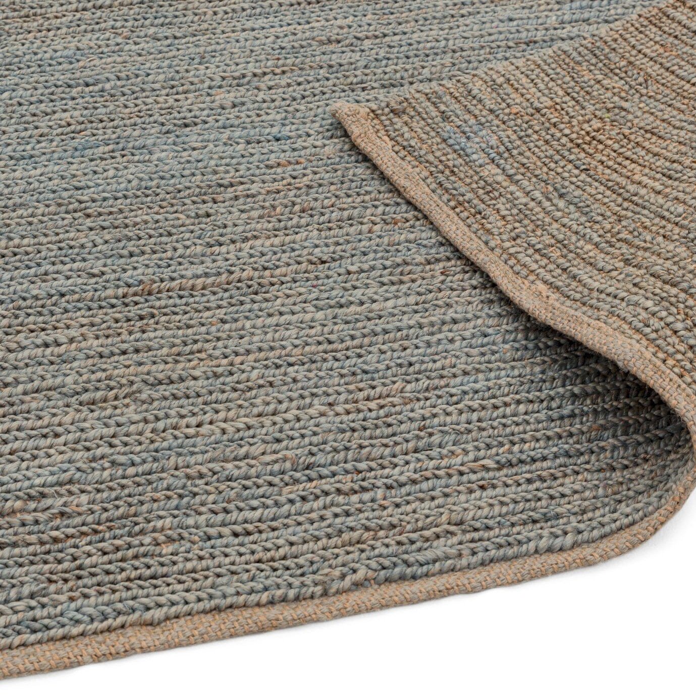 160x230cmサイズの、グレイッシュブルー色のジュートの素朴な風合いとナチュラル感が素敵な、サステナブルな天然素材ジュート(麻)100%製RUGHAUSの手織りハンドメイドラグ Alf