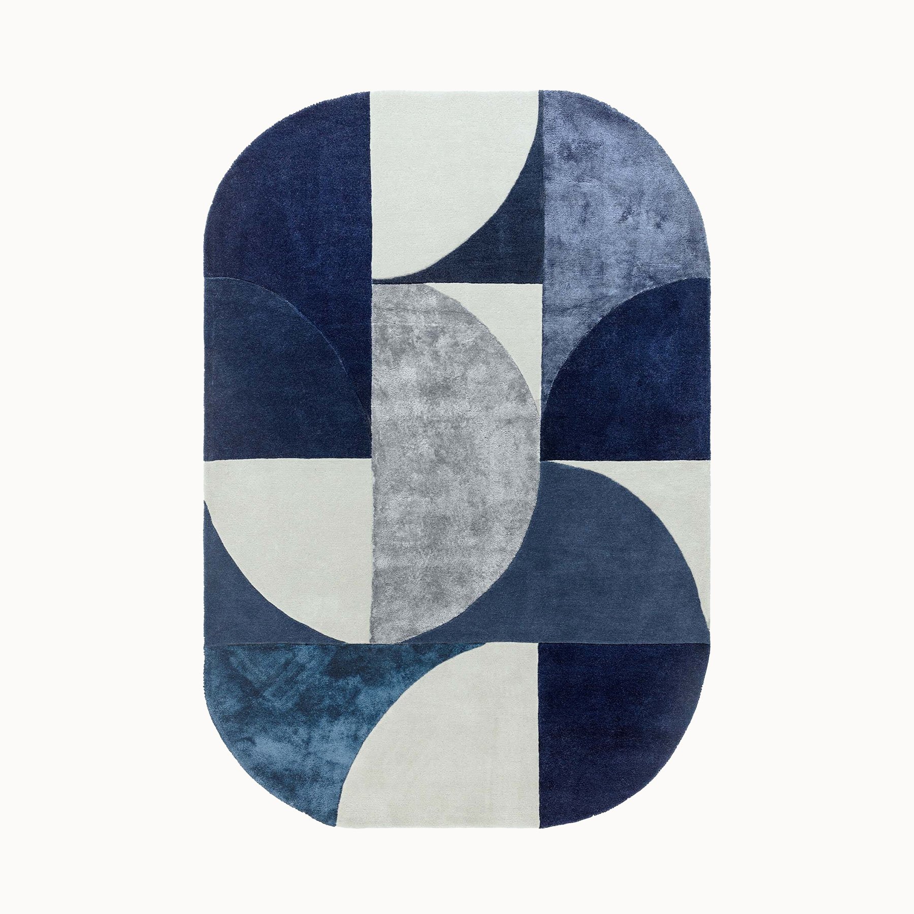 モダンな配色 × 幾何学的なデザインが目を惹く、オーバル(楕円)型のハンドタフトラグ。敷くだけで空間がオシャレに。