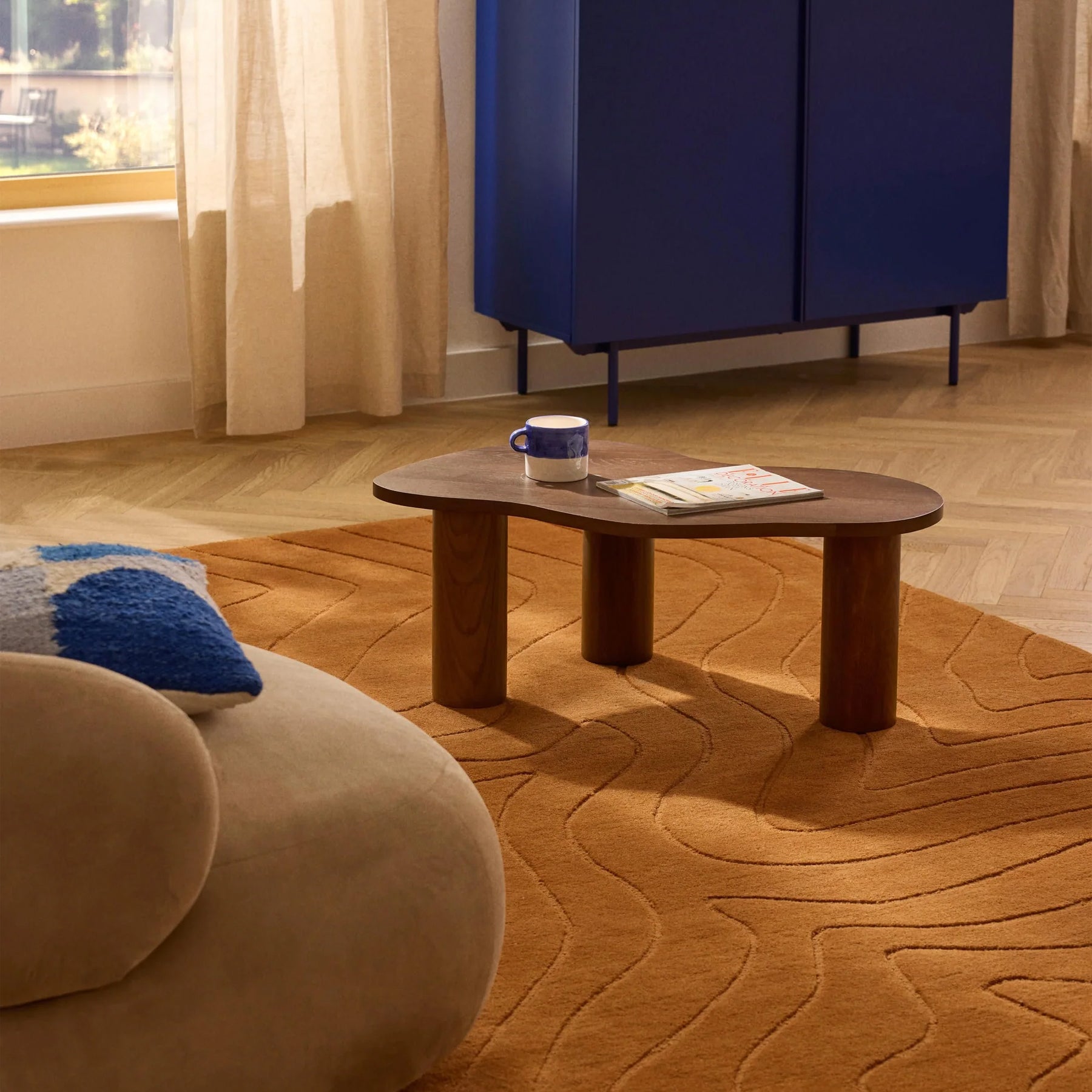 自然のモチーフを抽象的に描いたデザインは、モダンにもナチュラルにも馴染み、リビングやベッドサイドに穏やかな時間をもたらします。