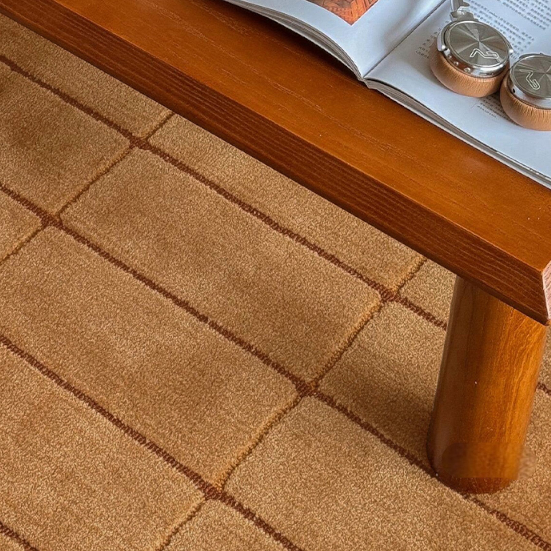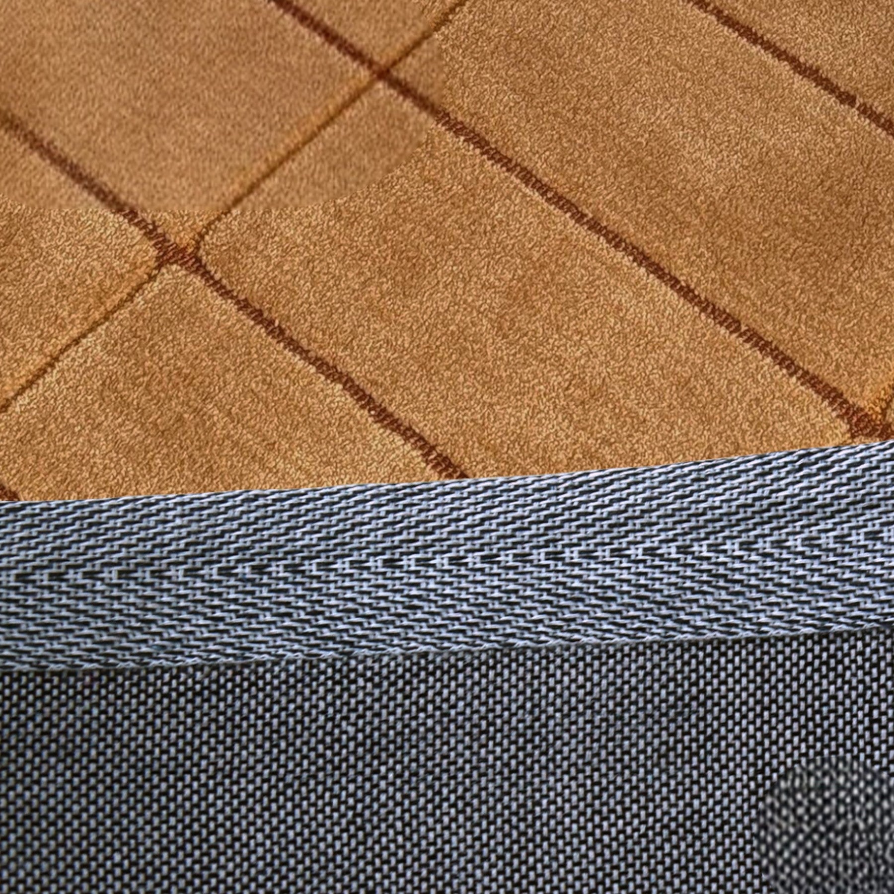 まるで建築の構造を思わせるような直線のパターンが、穏やかなキャメルカラーの中にさりげないリズムを刻みます。シンプルでありながらも陰影が美しく、光の当たり方によって表情を変えるデザインです。