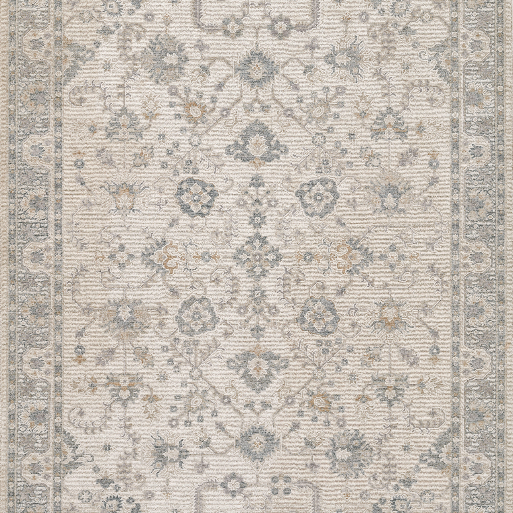 繊細な草花模様が淡いグレージュトーンで描かれ、上品な印象を与えます。