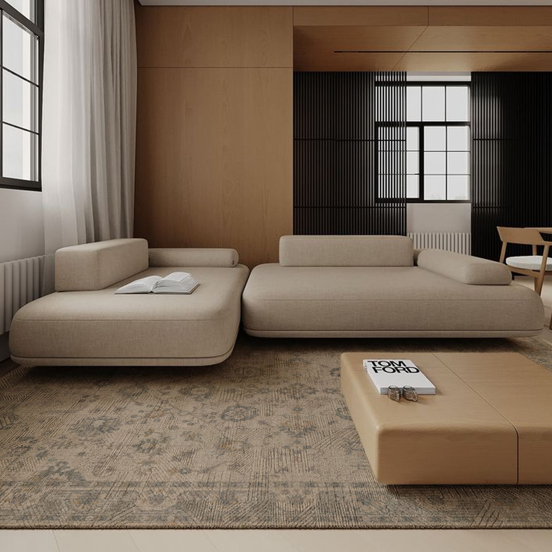 まるで時間を重ねたヴィンテージラグのように、空間に深みとぬくもりを添える一枚です。