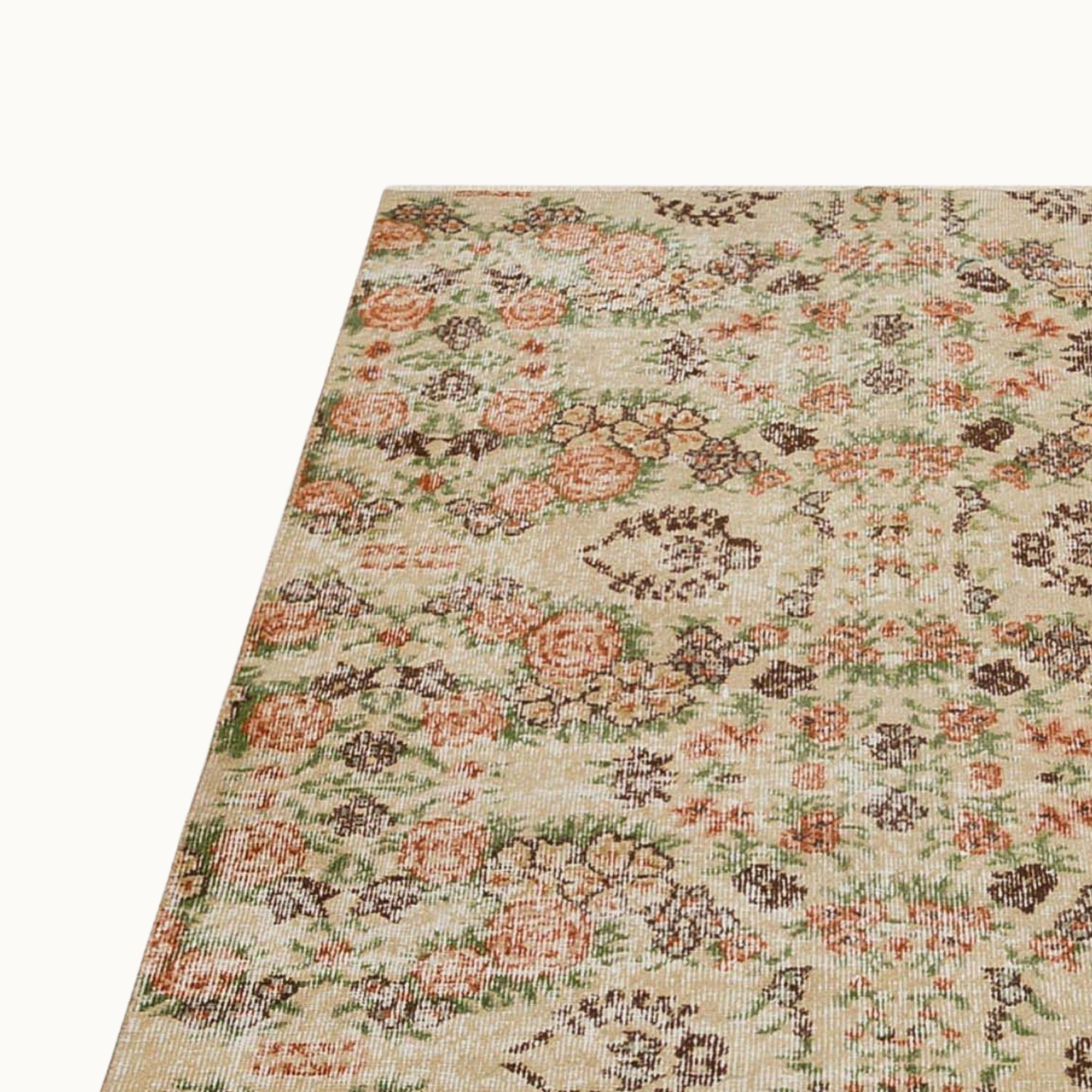 ペルシャ絨毯のスタイルをまとったヴィンテージラグは、高品質なウールとコットンの天然素材を使用したヴィンテージラグは、オリジナルデザインをそのままに、丁寧にクリーニングとトリミングを施しています。質感と風合いを楽しみながら、長くご愛用いただける一枚です。