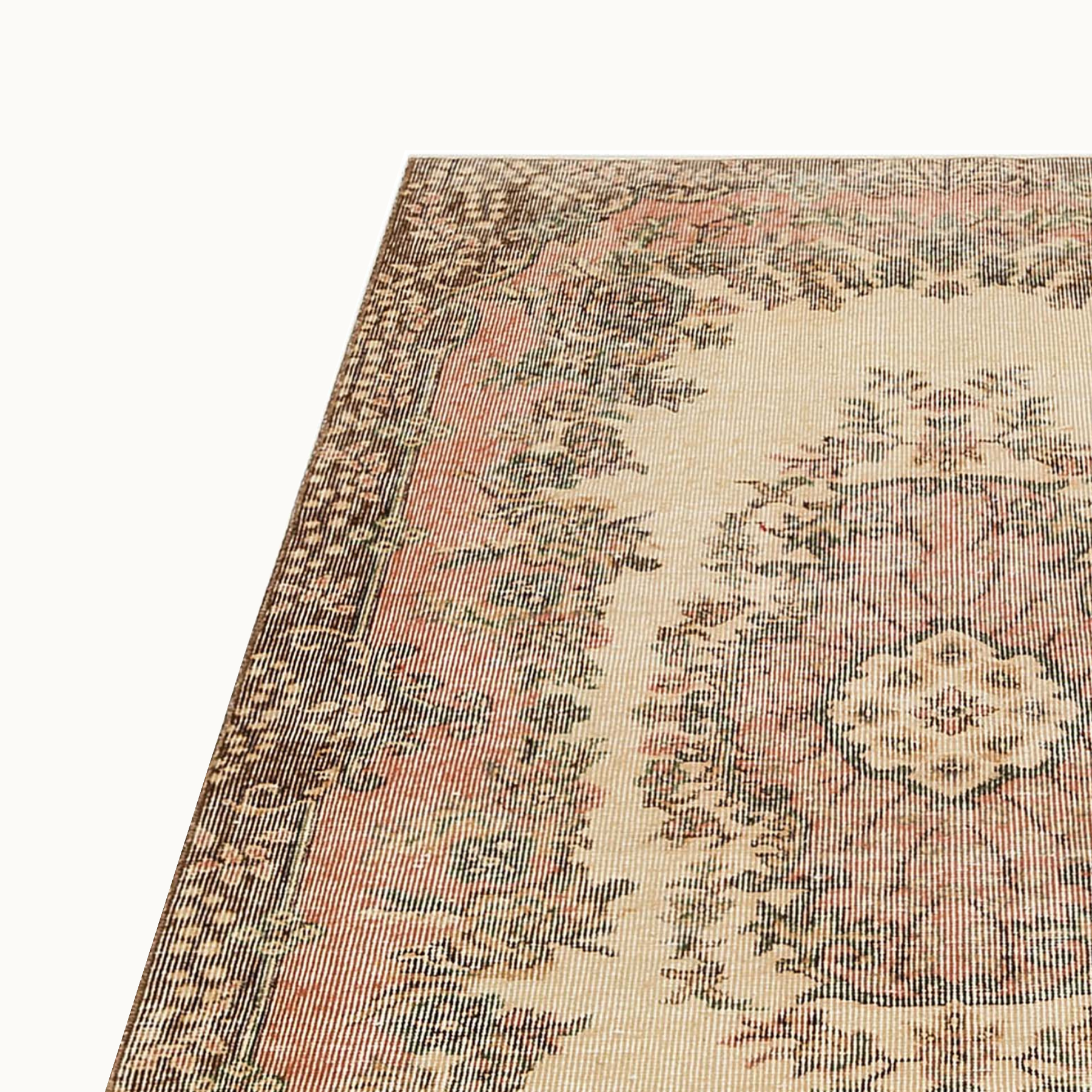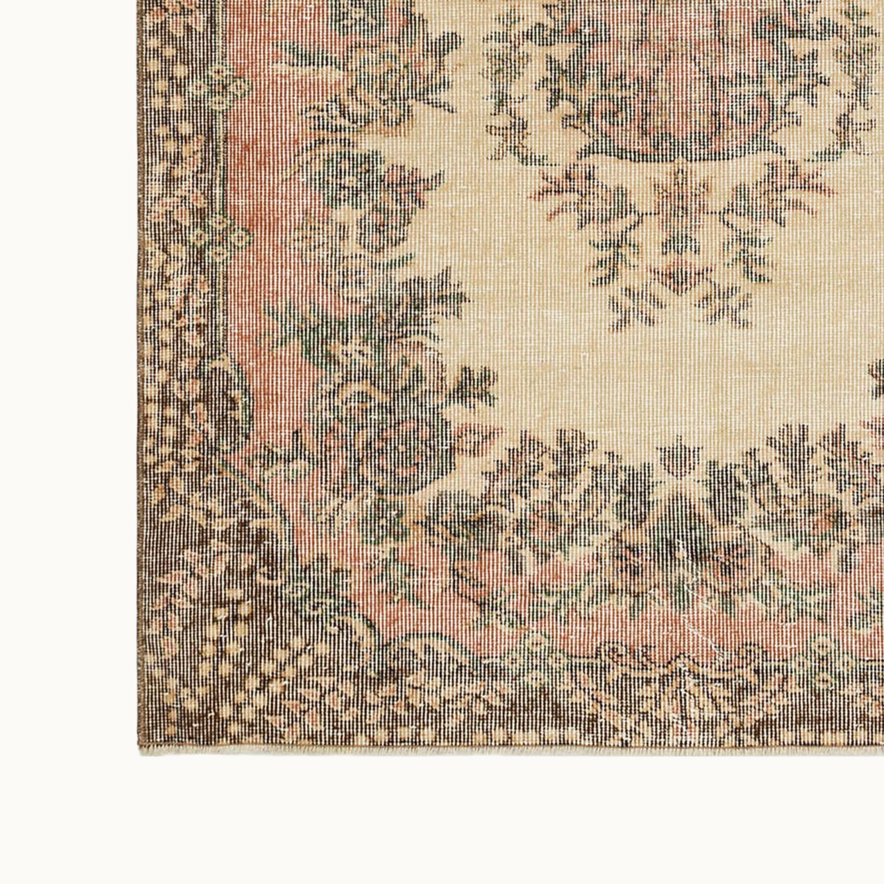 ペルシャ絨毯のスタイルをまとったヴィンテージラグは、高品質なウールとコットンの天然素材を使用したヴィンテージラグは、オリジナルデザインをそのままに、丁寧にクリーニングとトリミングを施しています。質感と風合いを楽しみながら、長くご愛用いただける一枚です。