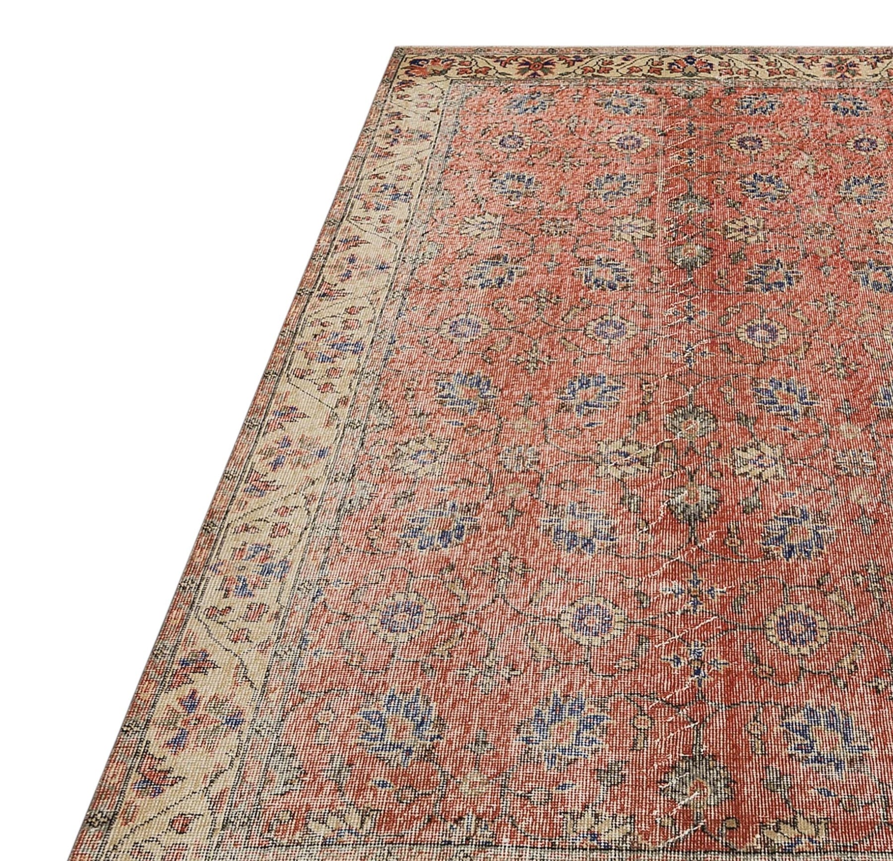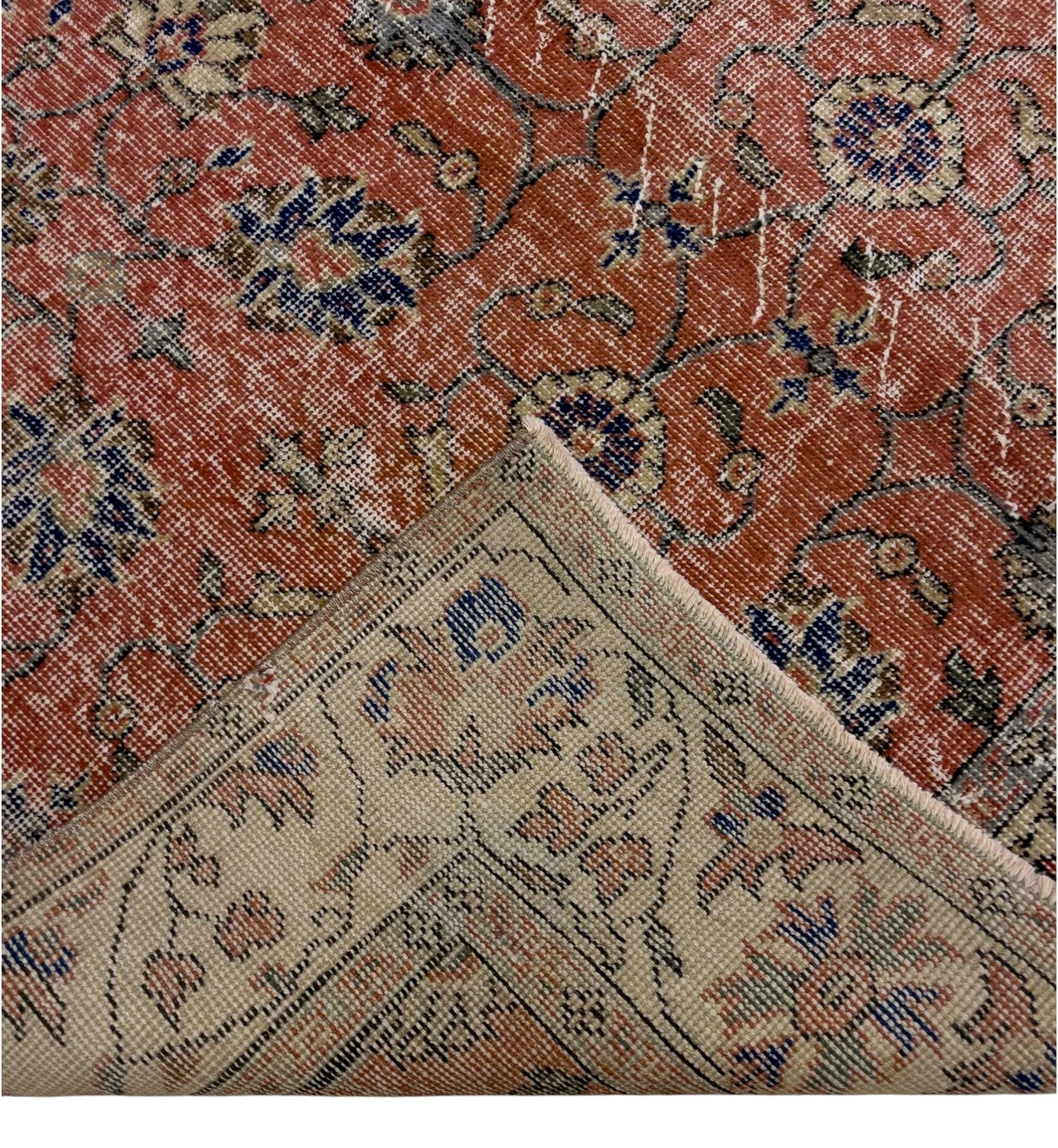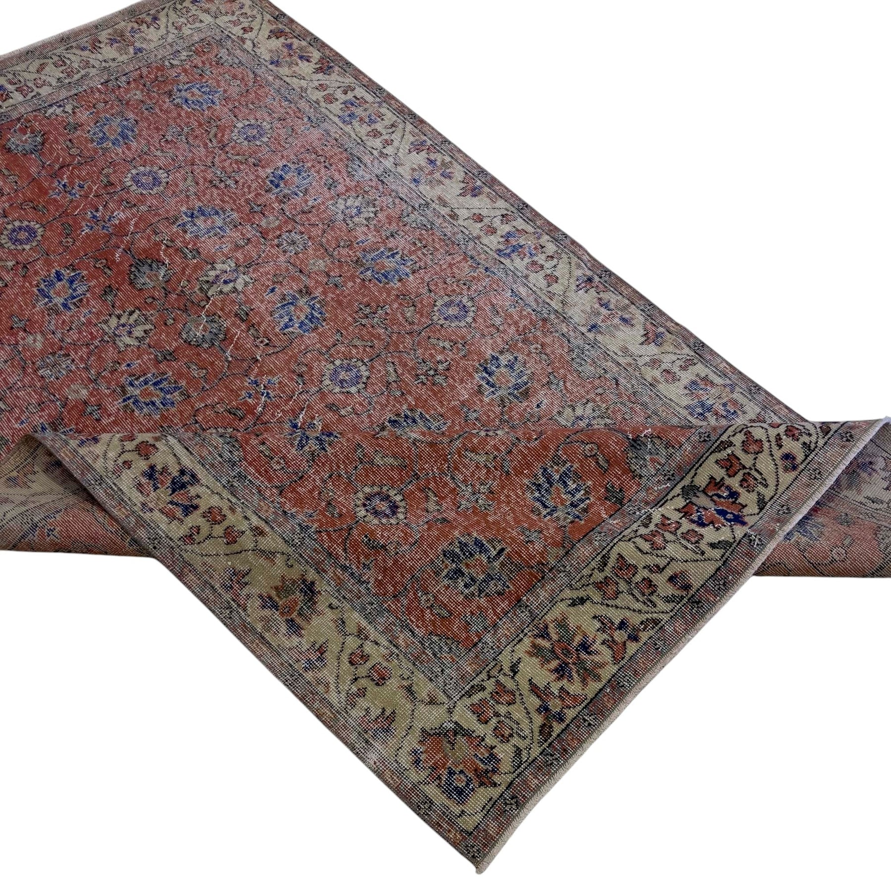 ペルシャ絨毯のスタイルをまとったヴィンテージラグは、高品質なウールとコットンの天然素材を使用したヴィンテージラグは、オリジナルデザインをそのままに、丁寧にクリーニングとトリミングを施しています。質感と風合いを楽しみながら、長くご愛用いただける一枚です。