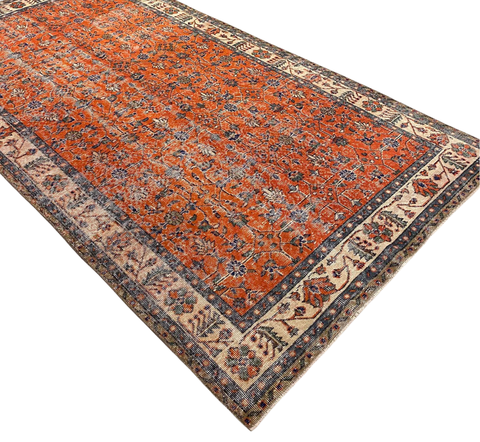 ペルシャ絨毯のスタイルをまとったヴィンテージラグは、高品質なウールとコットンの天然素材を使用したヴィンテージラグは、オリジナルデザインをそのままに、丁寧にクリーニングとトリミングを施しています。質感と風合いを楽しみながら、長くご愛用いただける一枚です。
